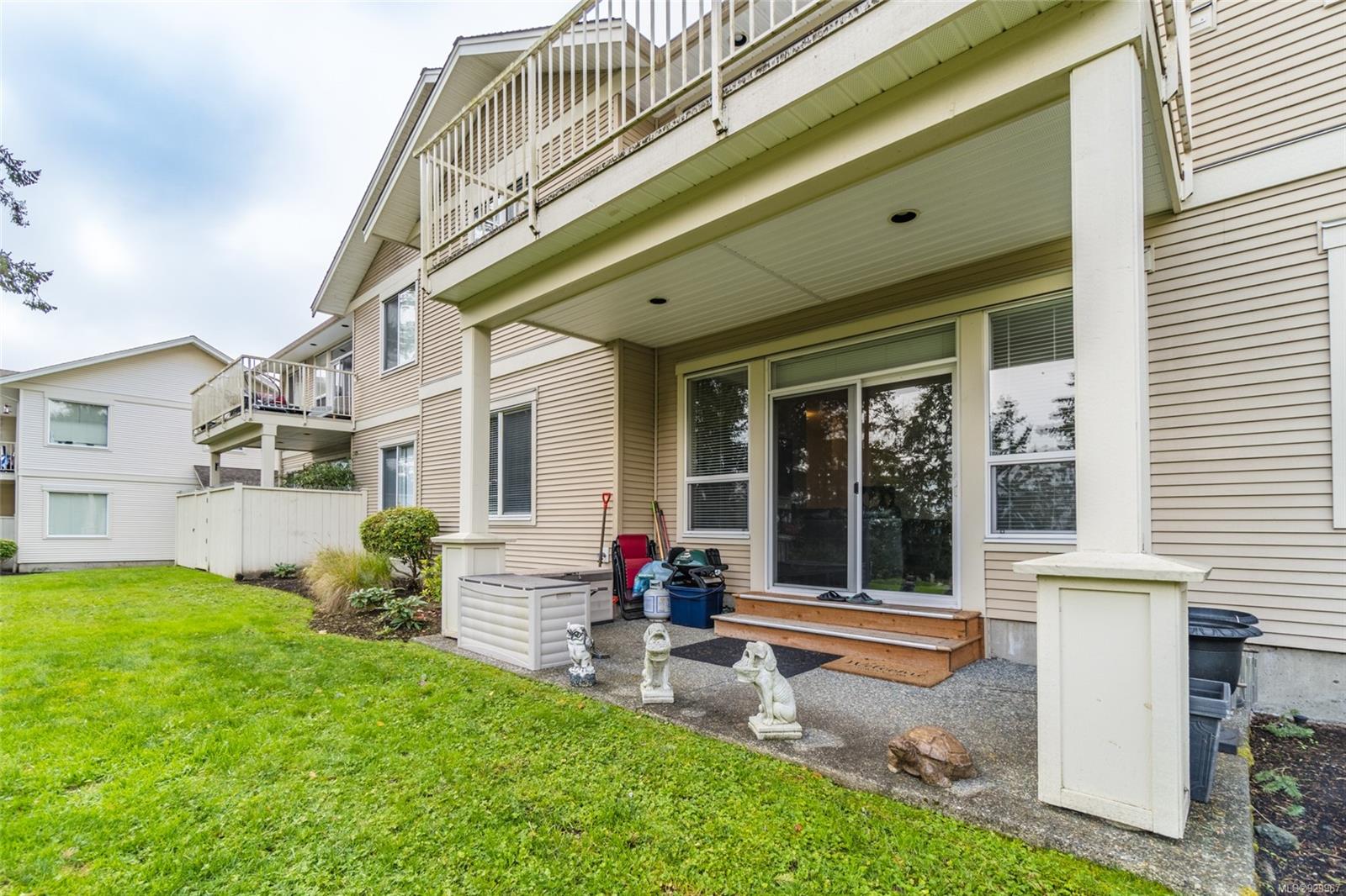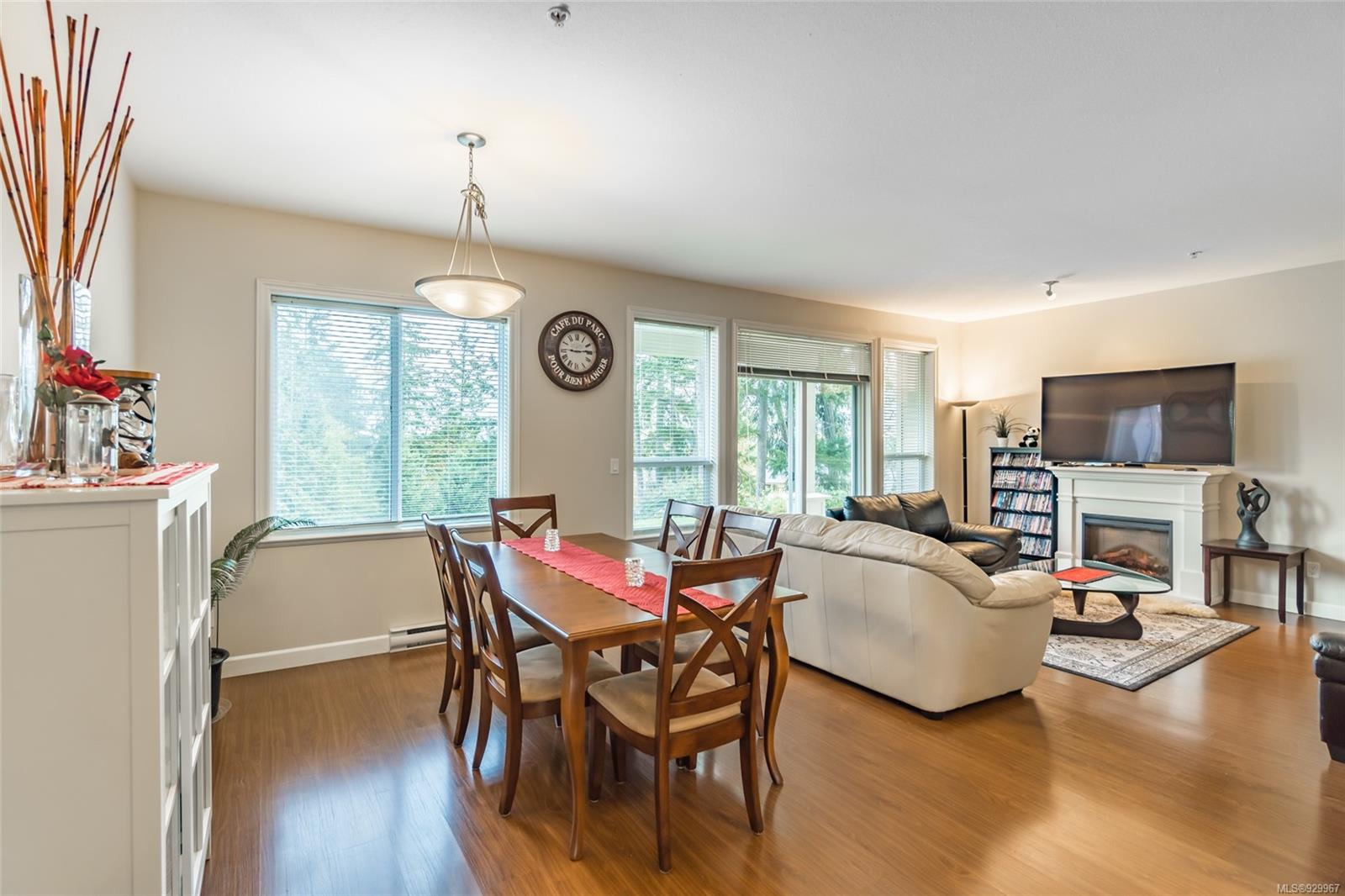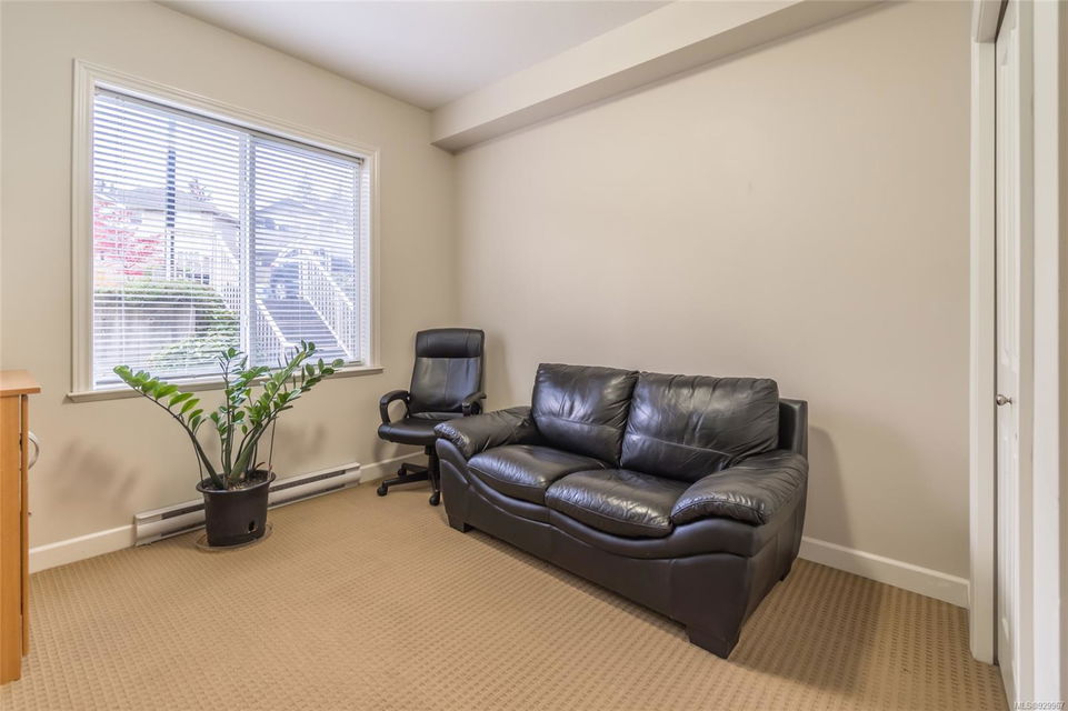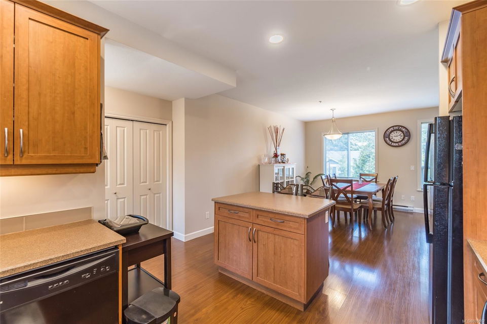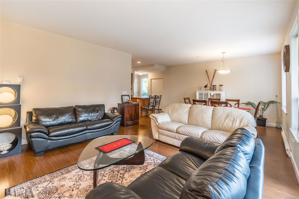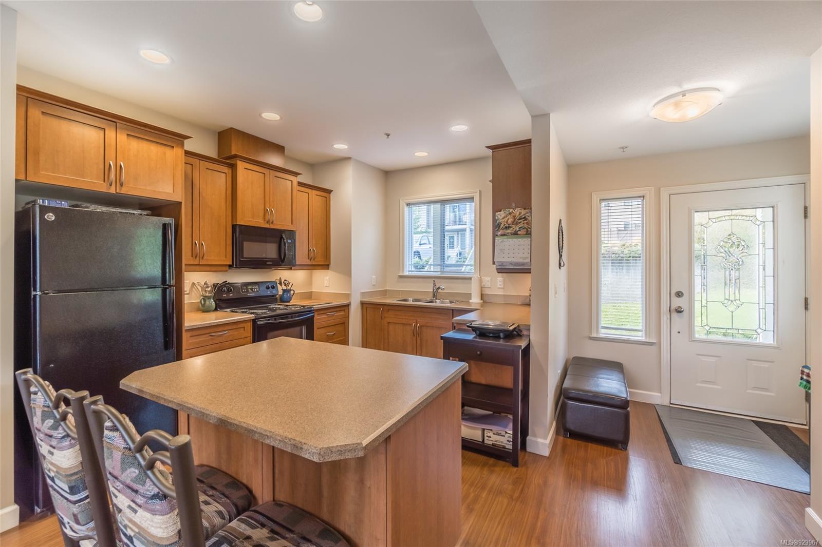 The ease of one-level living, an open floorplan saturated with light, and a well-cared for end-unit condo within a centrally-located and green landscape – yes! The bright, broad entry of this 3-bedroom, 2-bath condo leads into the kitchen (quality cabinets, island), dining and generous living space (fireplace for cosiness). All bedrooms in a “wing” with laundry nearby. Primary bedroom’s ensuite features a large shower and walk-in closet. Attractive flooring, 2 covered patios, and 2 parking spots. NO RESTRICTIONS re: age or rentals makes this a desirable home base or smart investment (university nearby!). This quiet retreat-just a short walk to Colliery Dam Park and near Morrell Nature Sanctuary – is tasteful to a T.