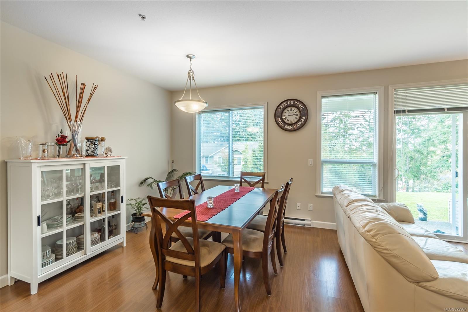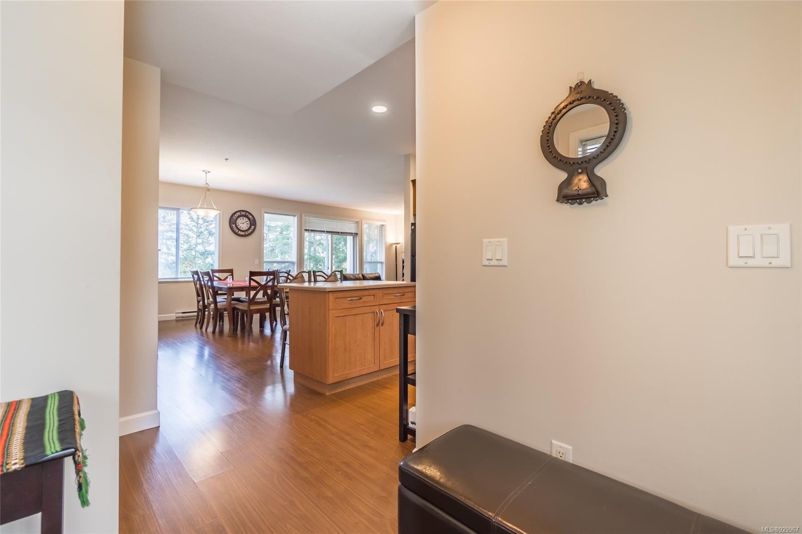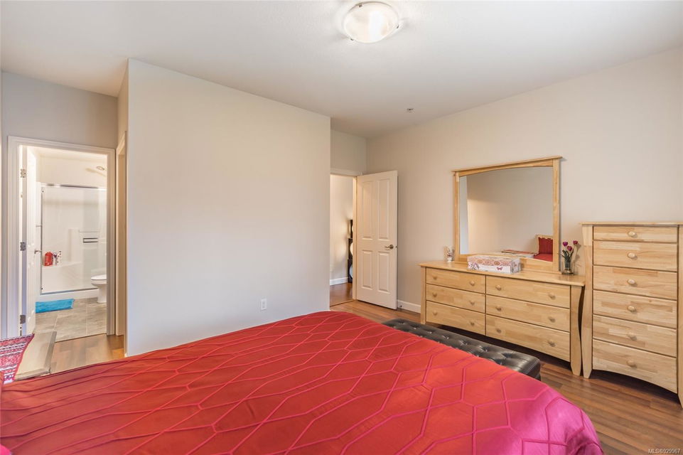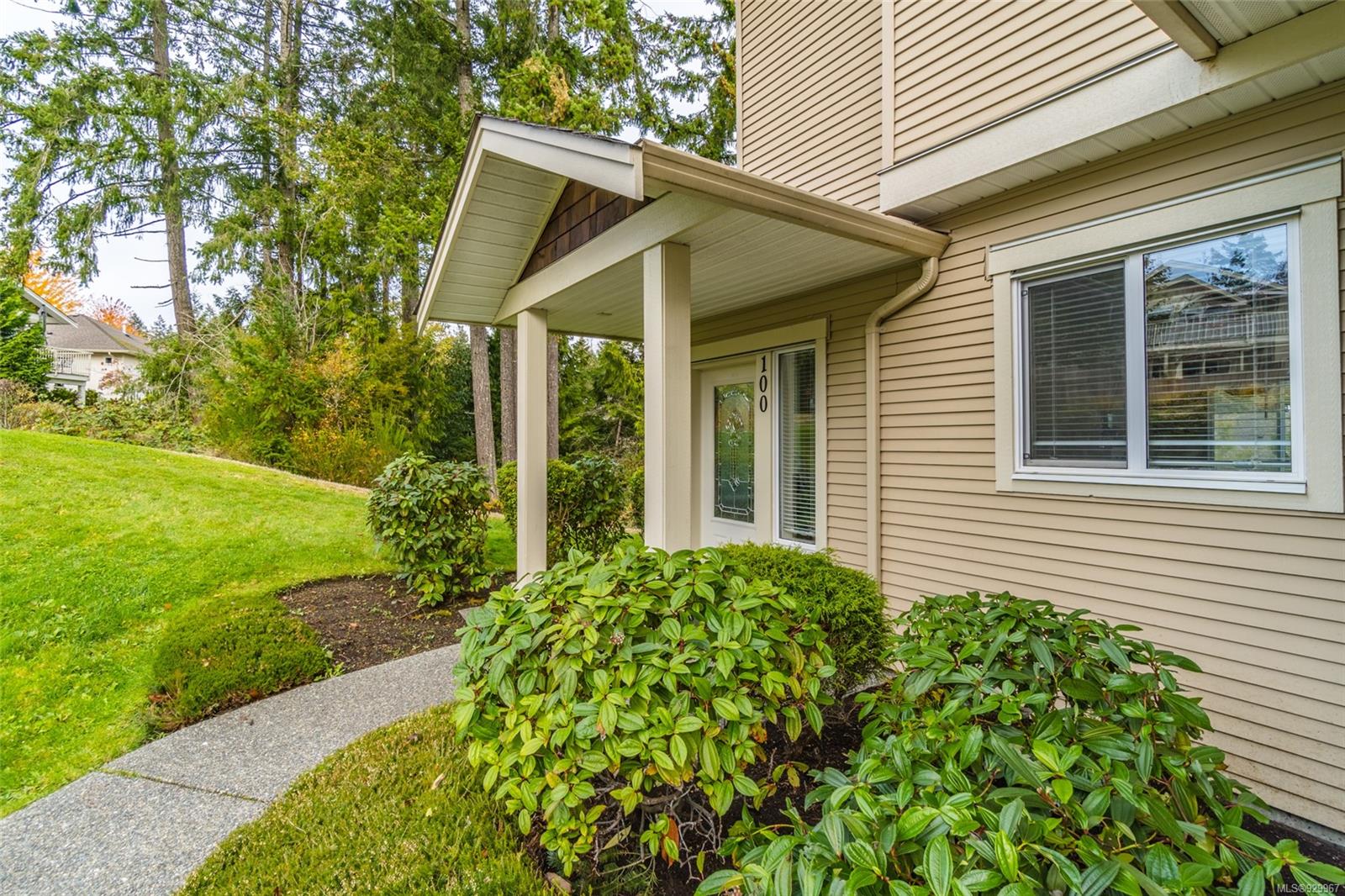 The ease of one-level living, an open floorplan saturated with light, and a well-cared for end-unit condo within a centrally-located and green landscape – yes! The bright, broad entry of this 3-bedroom, 2-bath condo leads into the kitchen (quality cabinets, island), dining and generous living space (fireplace for cosiness). All bedrooms in a “wing” with laundry nearby. Primary bedroom’s ensuite features a large shower and walk-in closet. Attractive flooring, 2 covered patios, and 2 parking spots. NO RESTRICTIONS re: age or rentals makes this a desirable home base or smart investment (university nearby!). This quiet retreat-just a short walk to Colliery Dam Park and near Morrell Nature Sanctuary – is tasteful to a T.