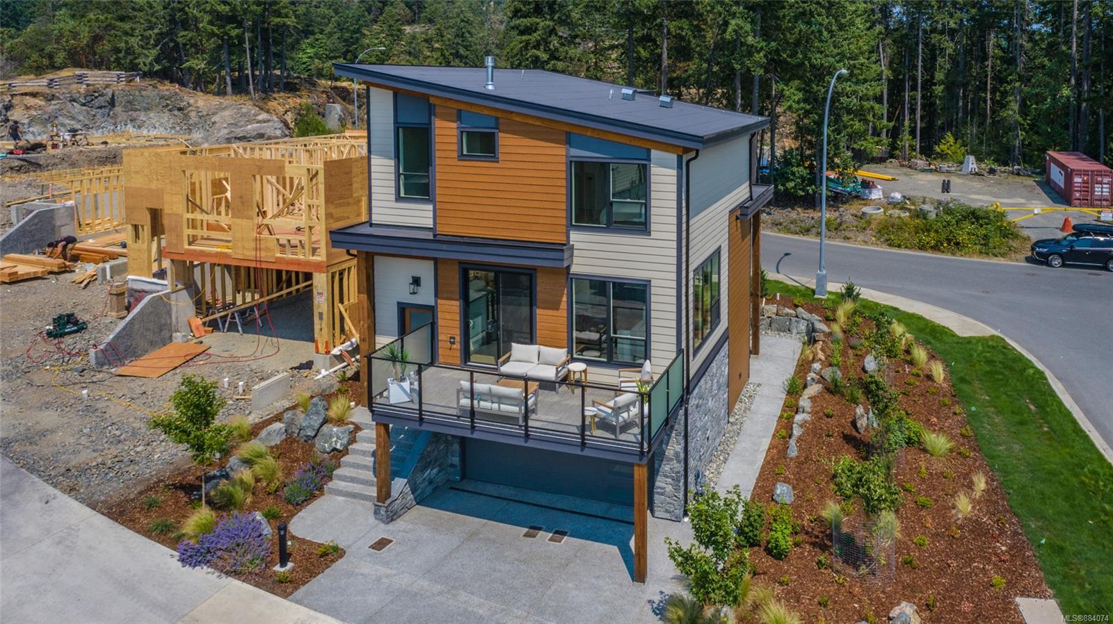 Our 1st show home features 3-bdrm (+den) and 4-bath. Experience modern living at its finest, including a stylish open concept main floor, luxurious high end finishings, natural landscaping and eagle eye view of the ocean and mountains. 2202 sq ft of living space incl upgraded appliances, quartz countertops, grand island, & 5 piece ensuite in the master bedroom with vaulted ceilings, natural gas heating/air conditioning, fireplace, 2 car garage, decks, a covered patio with barbecue hook-ups. Additionally, the flex room has rental potential with a separate entrance, bathrm & outdoor patio. Modern and intimate location is nestled in a quiet and picture perfect location amongst walking paths, trails and close to a 600 acre park and close to all amenities including shopping, schools, golf and transportation. 3 of the 9 homes are ready for viewing; each with distinct floor plans and finishings or you may wish to select your perfect lot and customize your own vision with the developer.