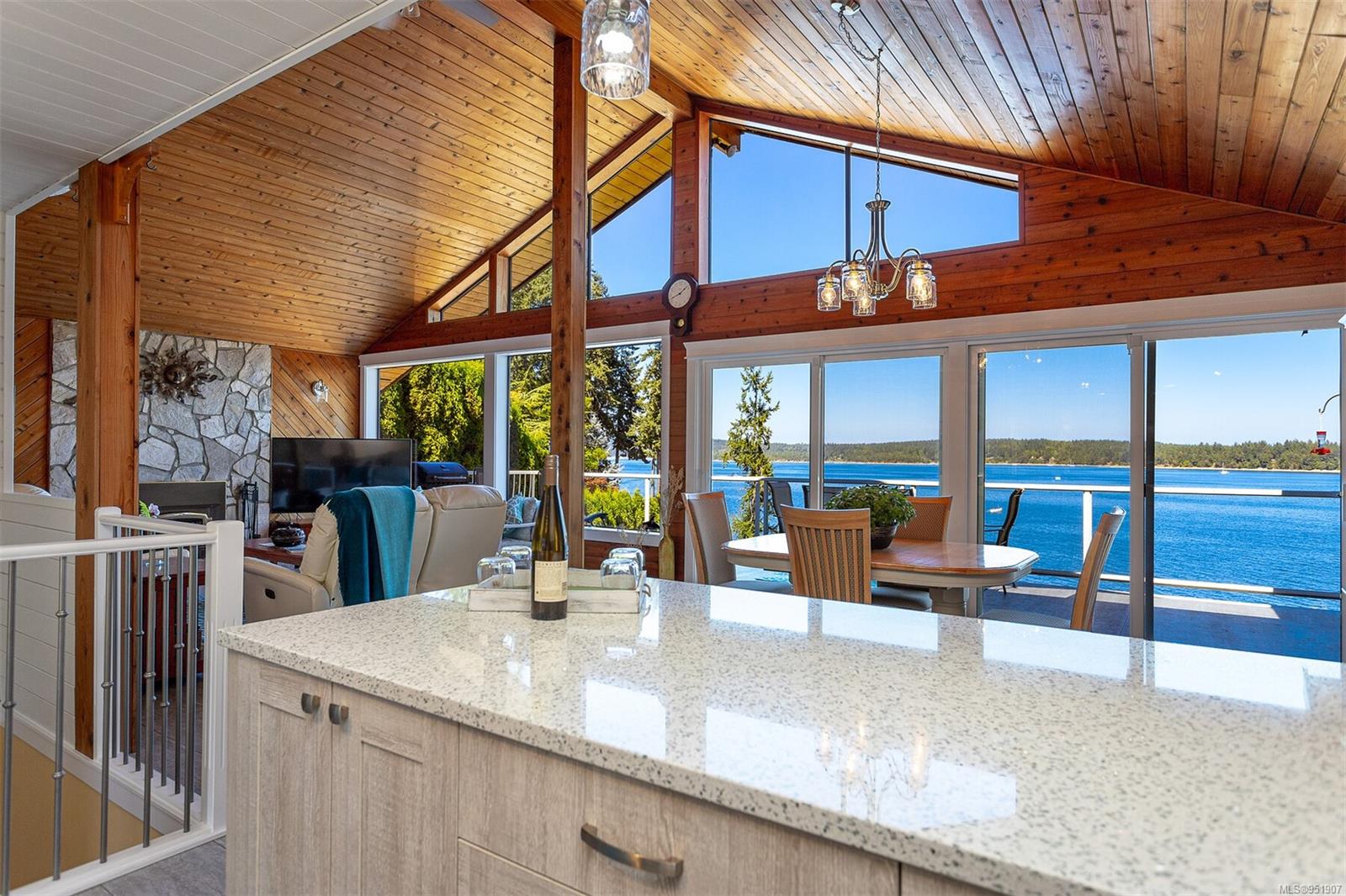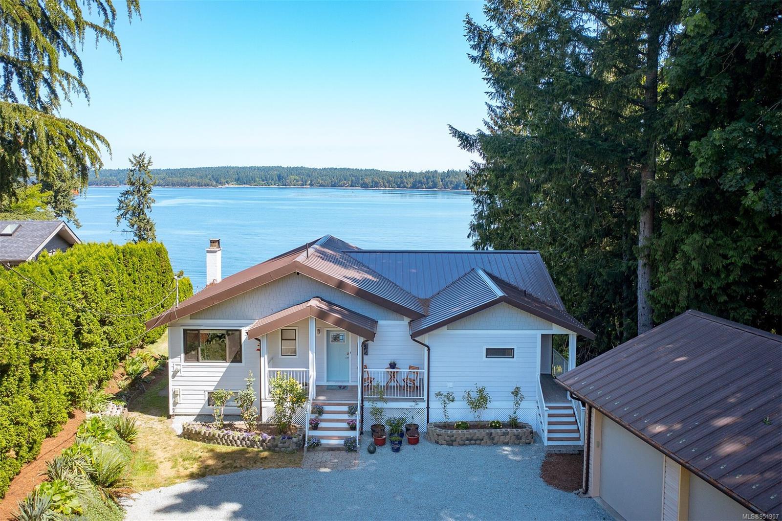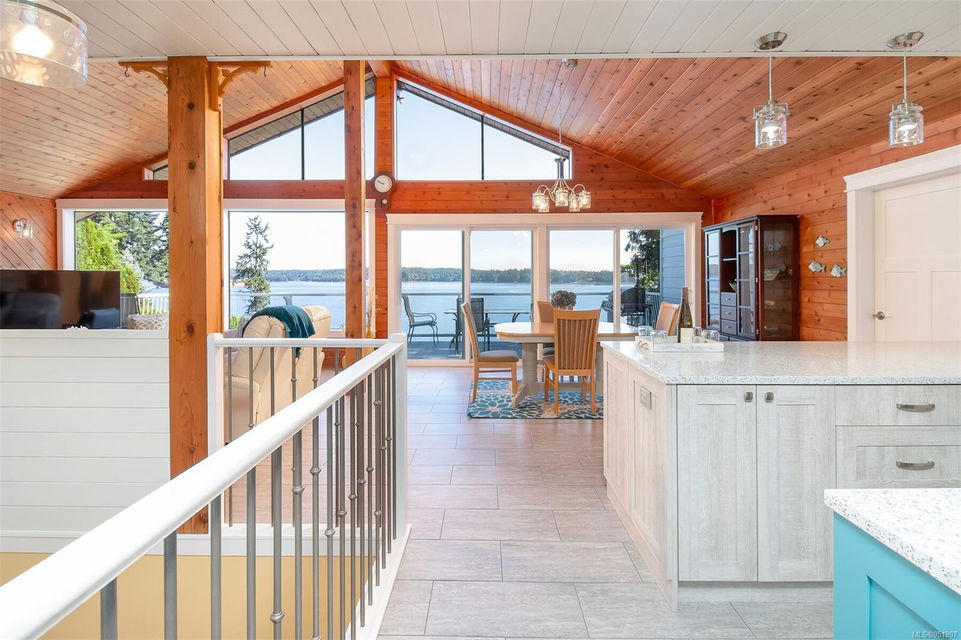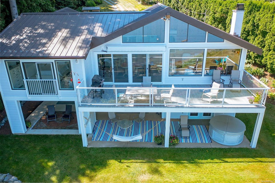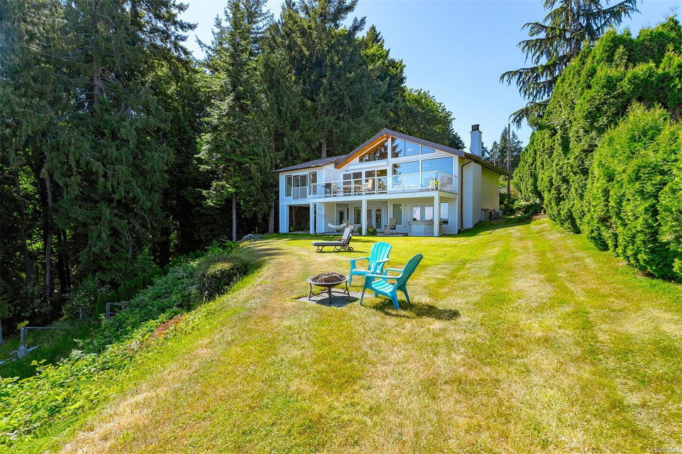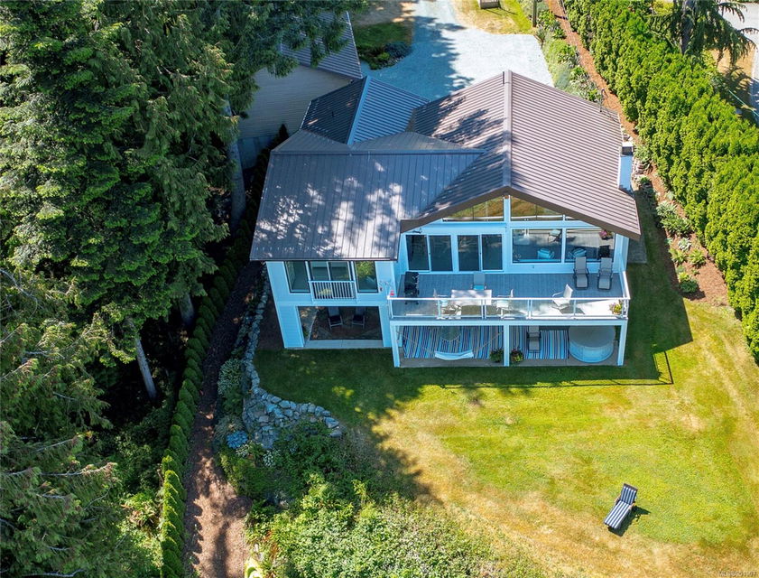 The heart of this coastal oasis is the gourmet kitchen and open concept entertaining spaces. Revel in the Chef’s kitchen, featuring induction range, all fridge/freezer, wine cooler and an adjoining Butler’s pantry in the expansive laundry room. Dining room double patio doors extend the picturesque views onto the expansive waterside deck. Vancouver Island stone outlines the wood-burning fireplace insert to keep you cozy in winter. A new, main floor Master Bedroom Suite with vaulted tray ceiling creates a wonderful retreat. Additional features include a second downstairs Master Suite, a hot/cold water outlet for outdoor shower convenience, an oversized garage, woodworkers workshop, artist studio, greenhouse, and The Cottage which provides versatile spaces you can tailor to your needs. Seashell House is more than a home; it’s a coastal lifestyle! Here, tranquility and convenience coalesce, offering you a unique and enriching property to call your own.