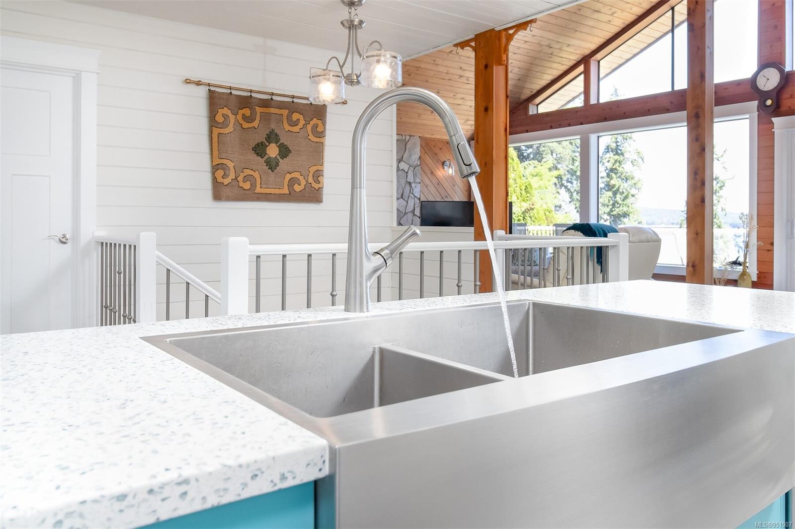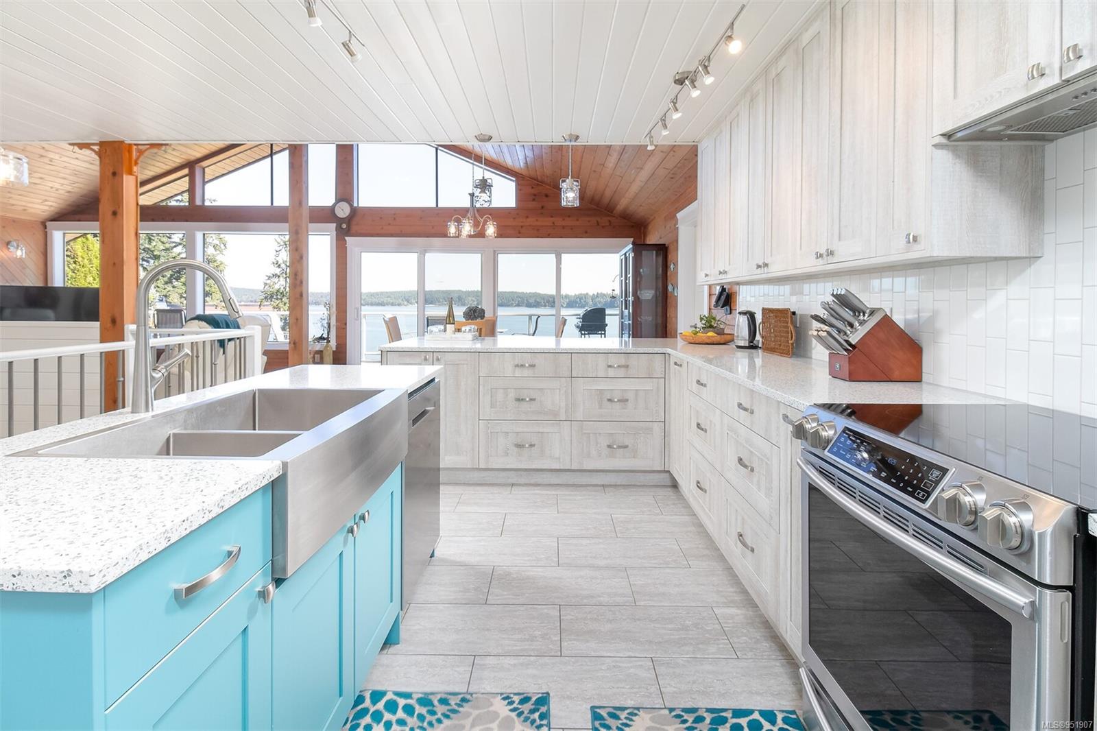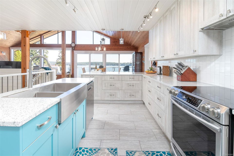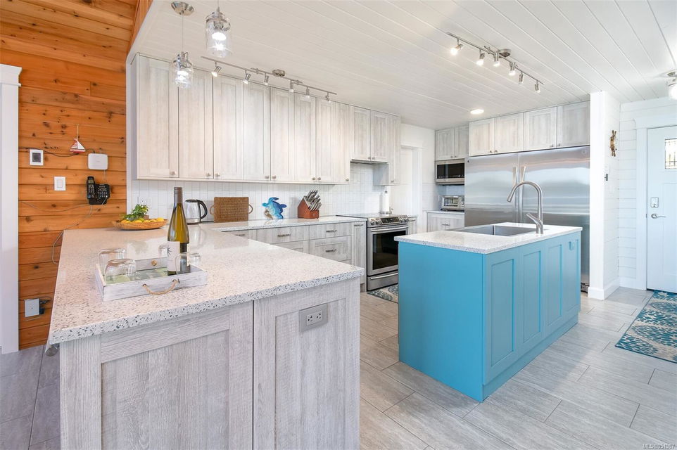 The heart of this coastal oasis is the gourmet kitchen and open concept entertaining spaces. Revel in the Chef’s kitchen, featuring induction range, all fridge/freezer, wine cooler and an adjoining Butler’s pantry in the expansive laundry room. Dining room double patio doors extend the picturesque views onto the expansive waterside deck. Vancouver Island stone outlines the wood-burning fireplace insert to keep you cozy in winter. A new, main floor Master Bedroom Suite with vaulted tray ceiling creates a wonderful retreat. Additional features include a second downstairs Master Suite, a hot/cold water outlet for outdoor shower convenience, an oversized garage, woodworkers workshop, artist studio, greenhouse, and The Cottage which provides versatile spaces you can tailor to your needs. Seashell House is more than a home; it’s a coastal lifestyle! Here, tranquility and convenience coalesce, offering you a unique and enriching property to call your own.