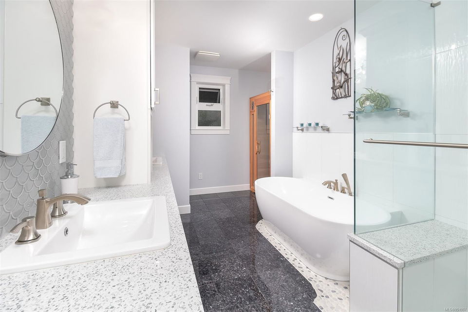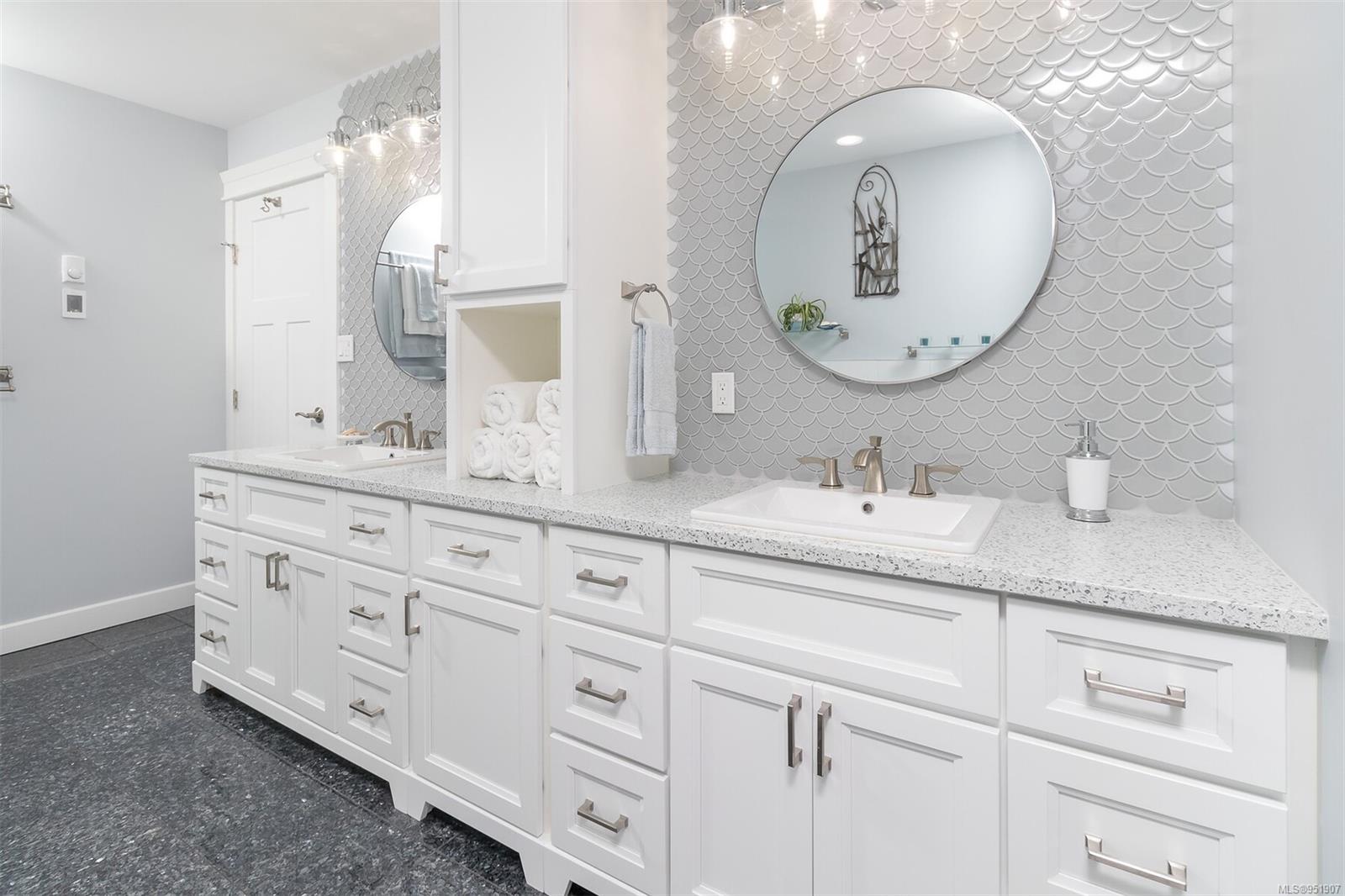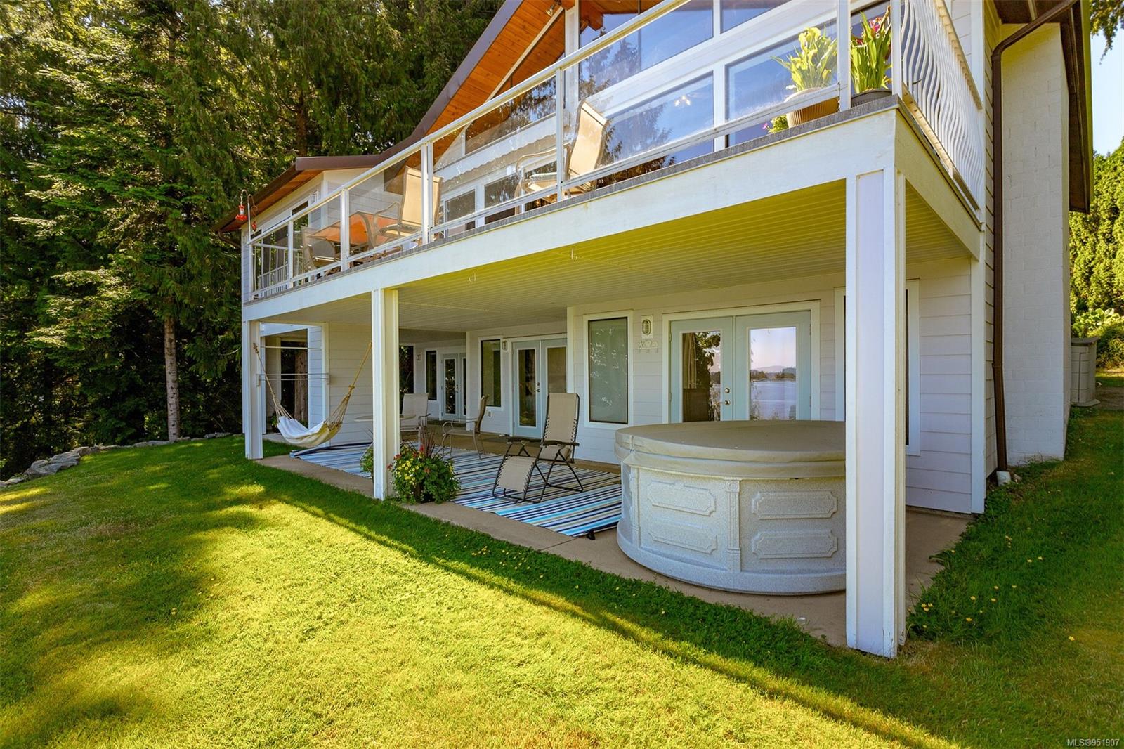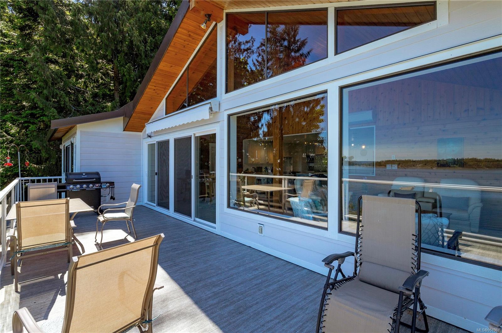 The heart of this coastal oasis is the gourmet kitchen and open concept entertaining spaces. Revel in the Chef’s kitchen, featuring induction range, all fridge/freezer, wine cooler and an adjoining Butler’s pantry in the expansive laundry room. Dining room double patio doors extend the picturesque views onto the expansive waterside deck. Vancouver Island stone outlines the wood-burning fireplace insert to keep you cozy in winter. A new, main floor Master Bedroom Suite with vaulted tray ceiling creates a wonderful retreat. Additional features include a second downstairs Master Suite, a hot/cold water outlet for outdoor shower convenience, an oversized garage, woodworkers workshop, artist studio, greenhouse, and The Cottage which provides versatile spaces you can tailor to your needs. Seashell House is more than a home; it’s a coastal lifestyle! Here, tranquility and convenience coalesce, offering you a unique and enriching property to call your own.