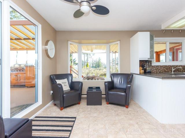 It’s impossible not to be impressed with the great care that’s been taken with this quarter – acre ocean view property in desirable Saltair. Large, ocean – facing windows frame the colourful views and fill the home with light. The main floor features three bedrooms (master with lovely ensuite plus a 3 piece bathroom for guests). A bright sunroom for hours of R and R (and your plants will love it too!) Enjoy entertaining guests in this highly – functional, stylish kitchen, a wood burning fireplace also compliments the open concept living/dining area. Lower level is partially finished, with a grand bonus room and loads of storage space – including a special spot for your wine. Step outside and find your incredible outdoor kitchen, including a 5 – burner BBQ with a built-in smoker – your home will be everyone’s new favourite place! You’re surrounded by spectacular landscaping in front and in the very private back, with loads of colourful vegetation, two patios, and a deer – proof raised vegetable garden bed. There’s also a studio/workshop in back wired for 220 amps. Power outages are no problem just start up the hard – wired generator, and stay comfortable. All this, and the ocean just a short walk away. Gorgeous inside and out … this property is a must – see and can be available for immediate possession.