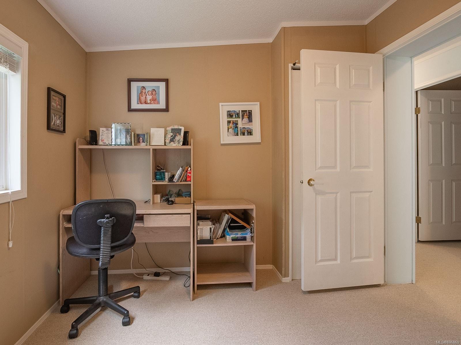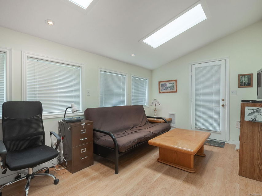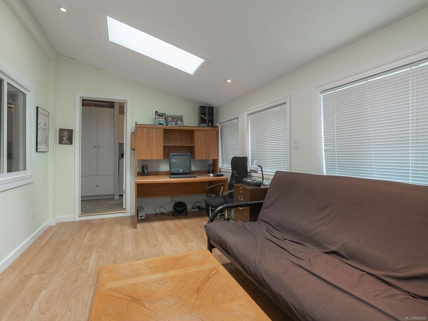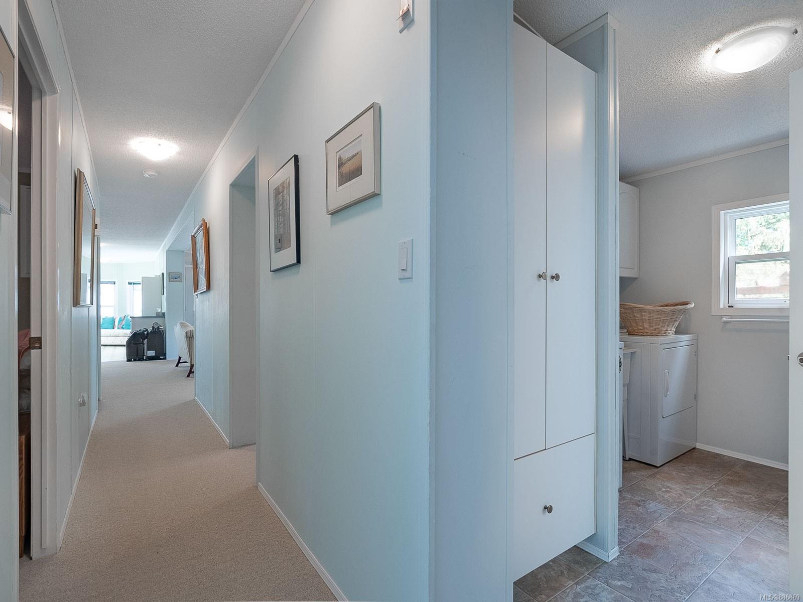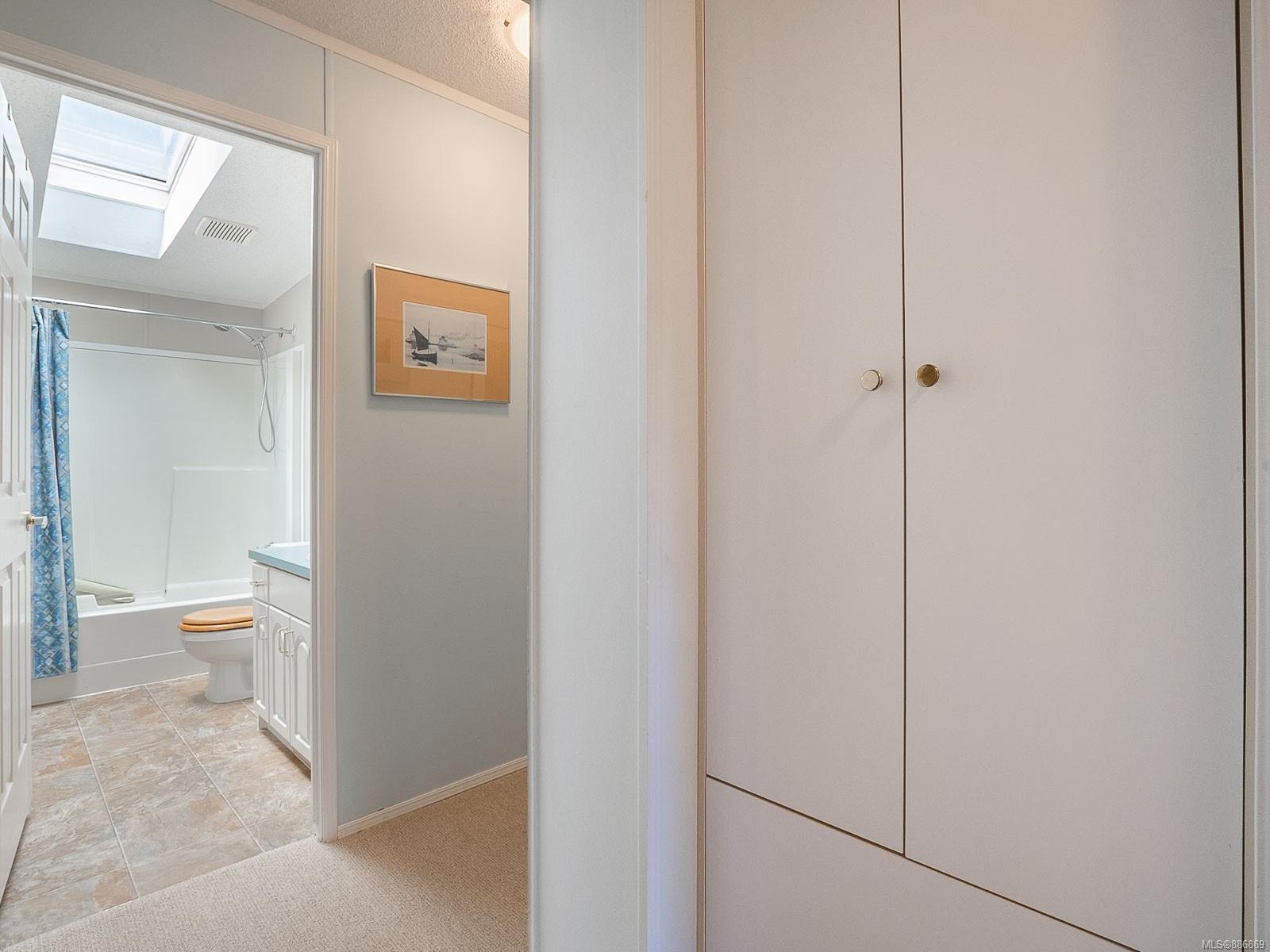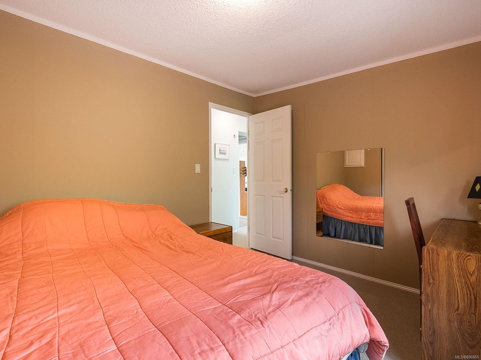 It begins with great street appeal & leads into a bright, fresh 1487 sq. ft. double wide home in a quiet 55+ neighborhood in Ladysmith. This well- maintained gem is ready to welcome new owners. The impressive kitchen features ample work & cupboard space, skylight & island. The front room is extra comfortable with a gas fireplace and the family room features a vaulted ceiling. There are 3 bedrooms & 2 baths, with the primary bedroom ideally located at the back of the home with a 3 piece ensuite. Skylights add loads of natural light. Fresh upgrades include new carpets throughout & new air conditioning. Enjoy a covered deck, easy parking in the covered carport and shed for extra storage. With a lovely garden & forested hills in the backdrop, this home’s private setting on a corner lot in a cul-de-sac will appeal to many. With shopping nearby and access to bus service, learn how easy it is to slide into Ladysmith living!