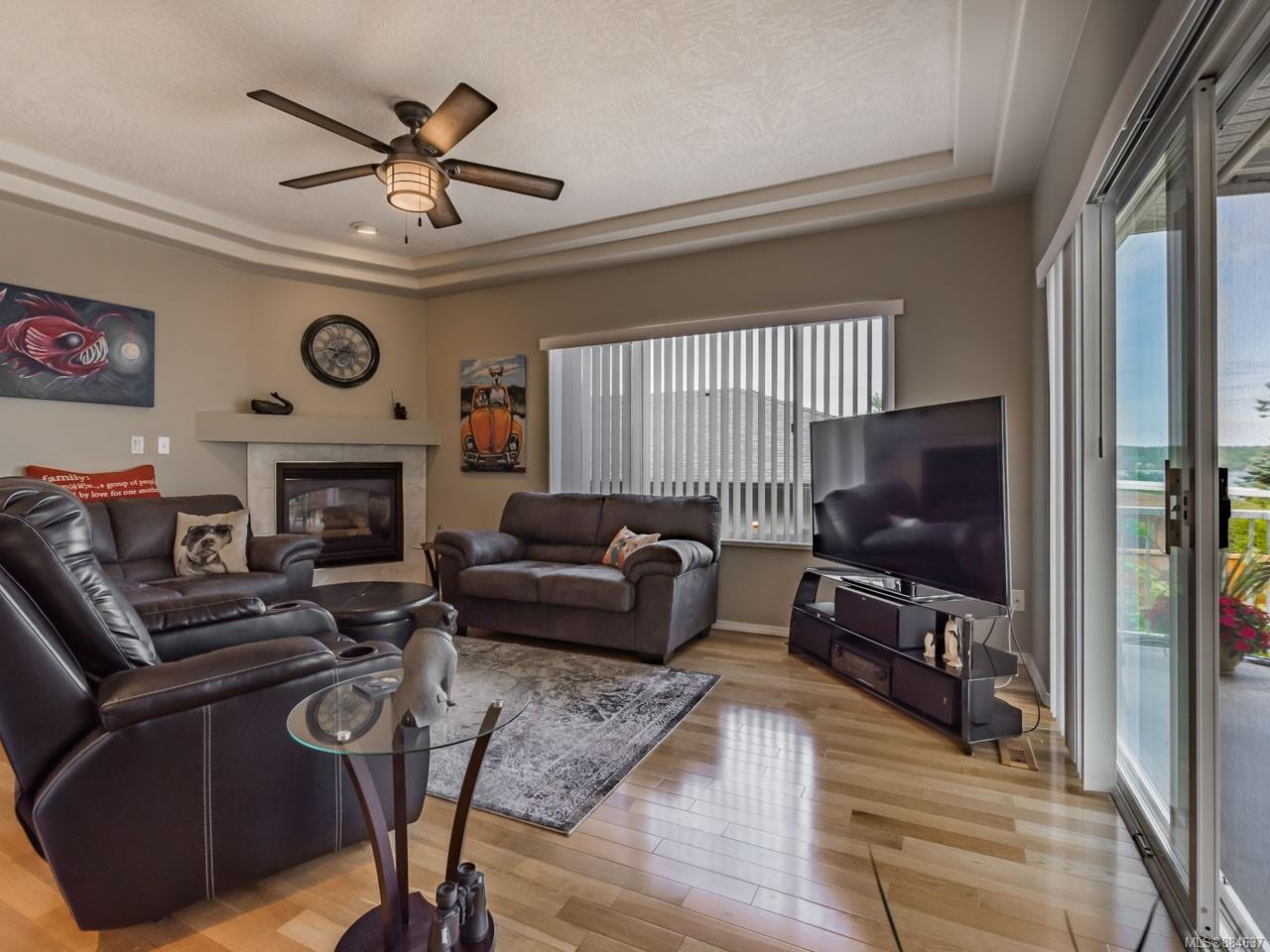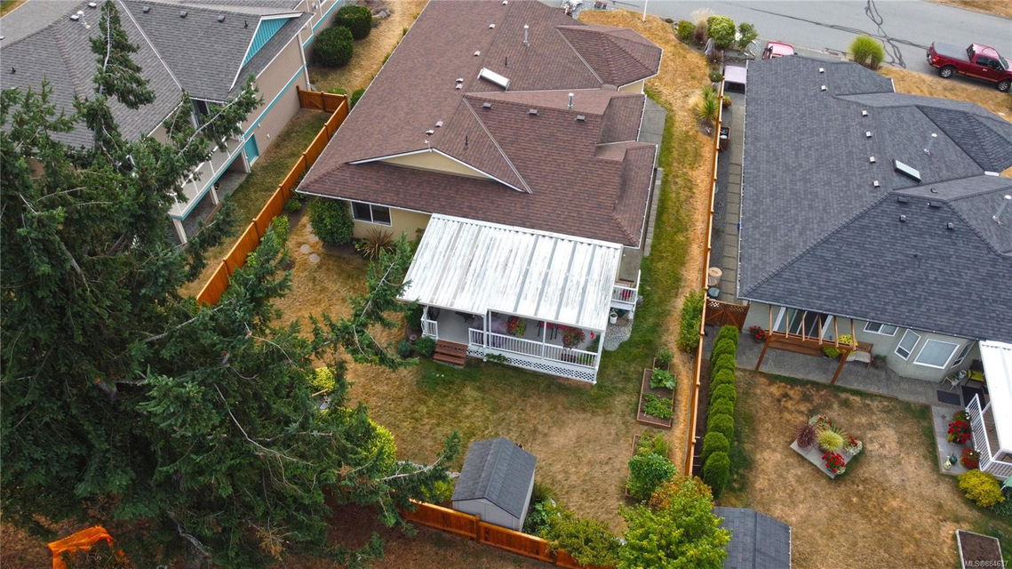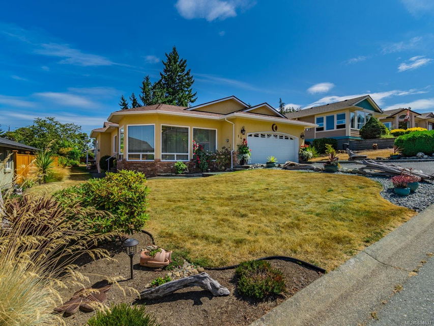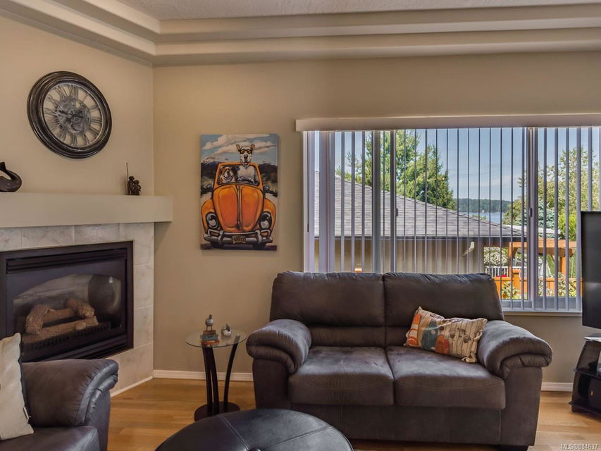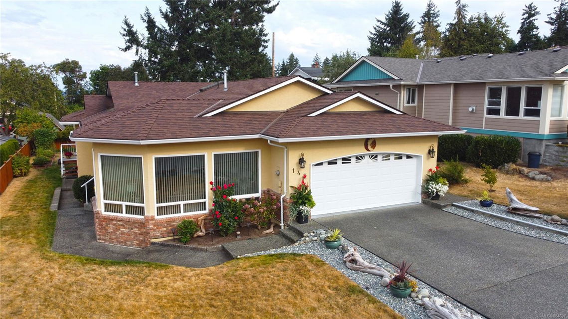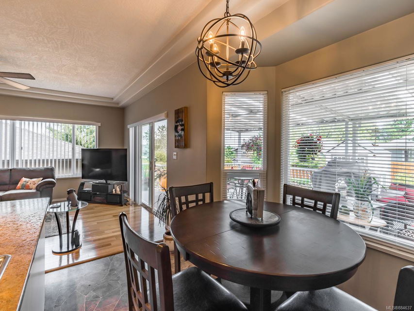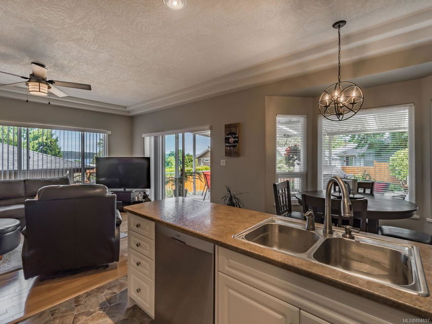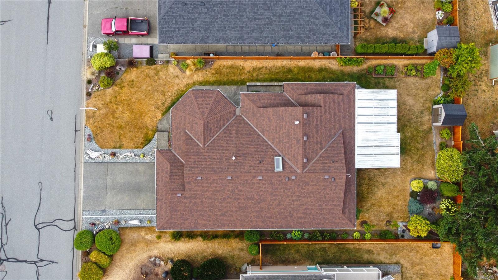 kitchen/breakfast nook/family room area. The principal bedroom features a walk-in closet and ensuite, and the main bath has a relaxing soaker tub. Updated fixtures, natural gas fireplace and furnace, shed, and raised garden beds are all part of