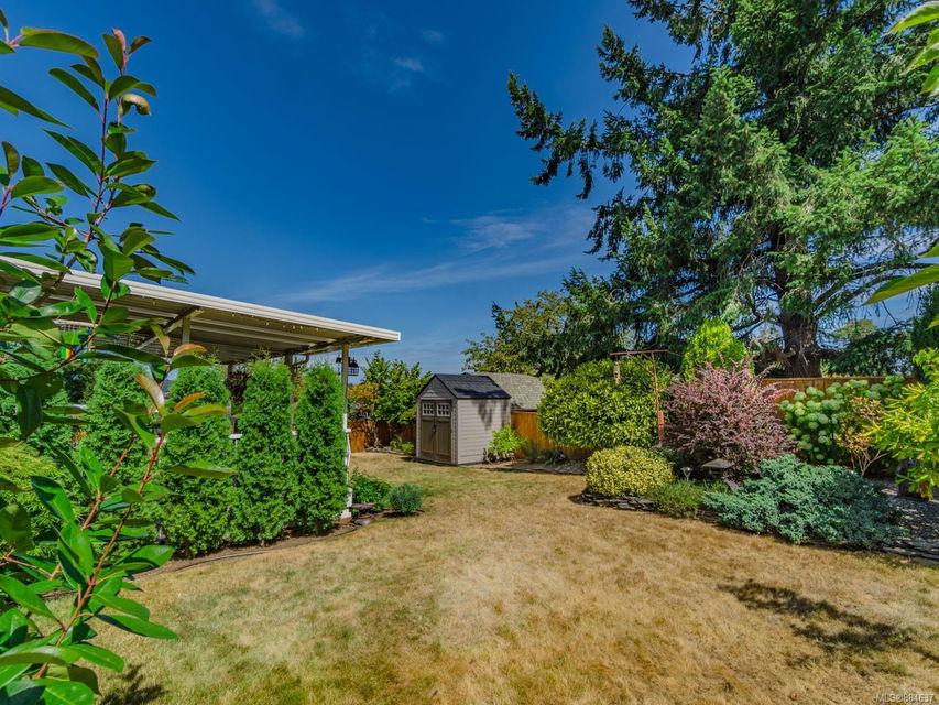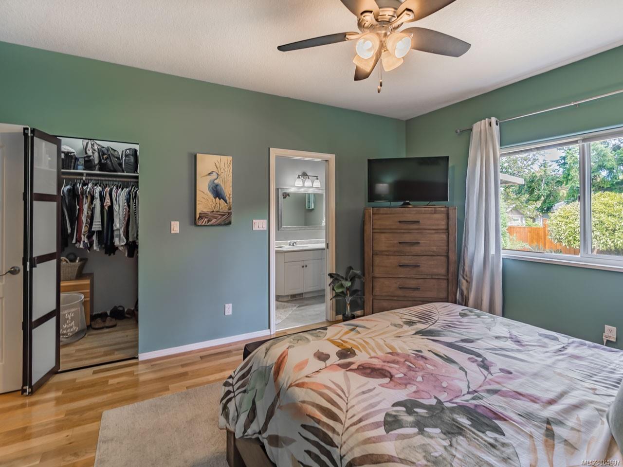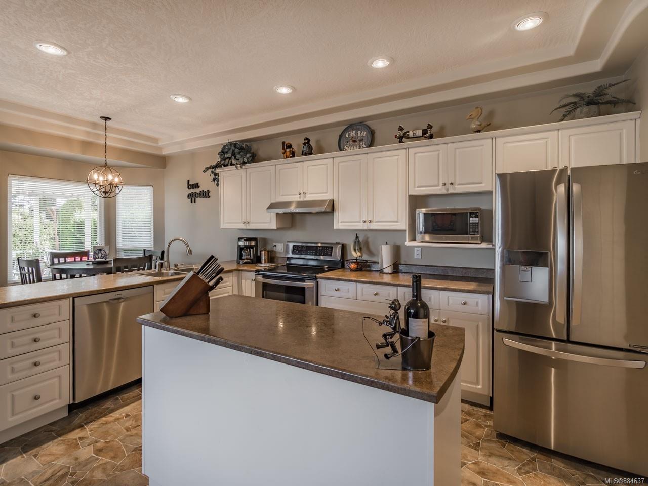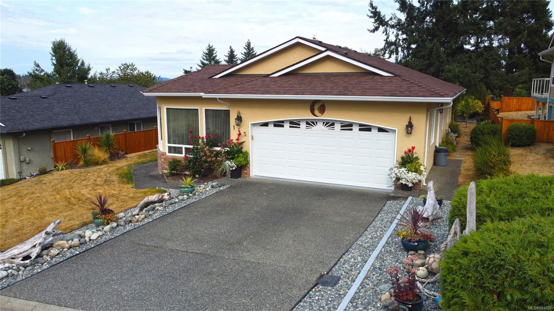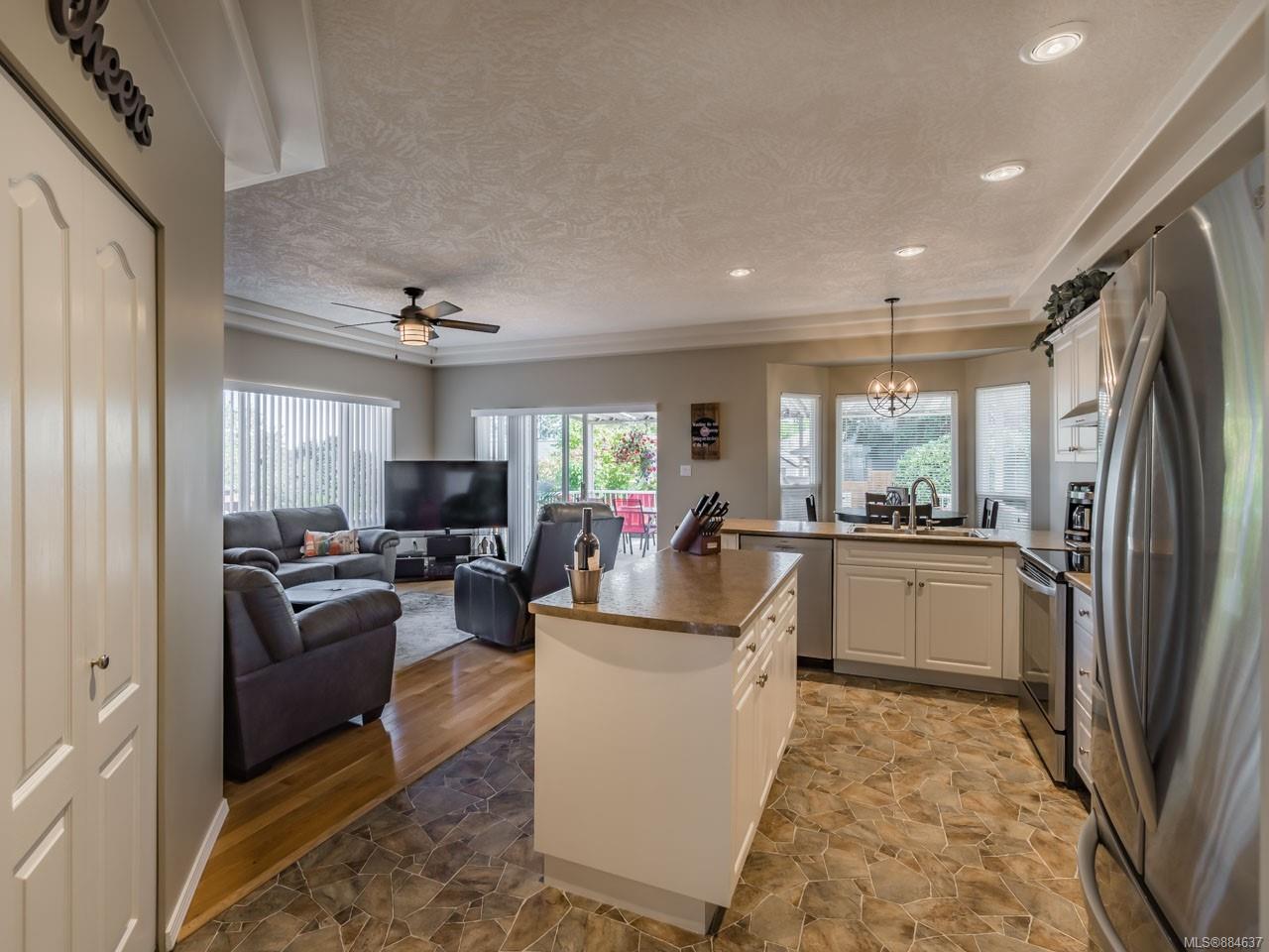 kitchen/breakfast nook/family room area. The principal bedroom features a walk-in closet and ensuite, and the main bath has a relaxing soaker tub. Updated fixtures, natural gas fireplace and furnace, shed, and raised garden beds are all part of