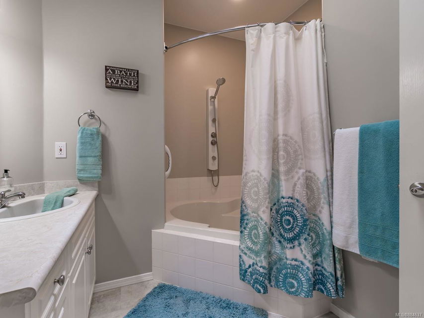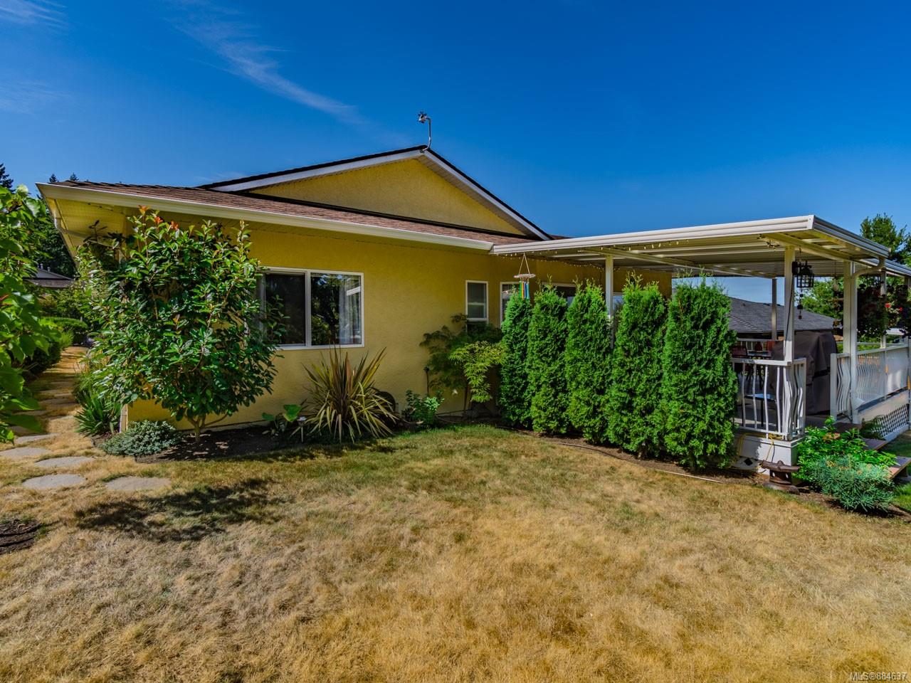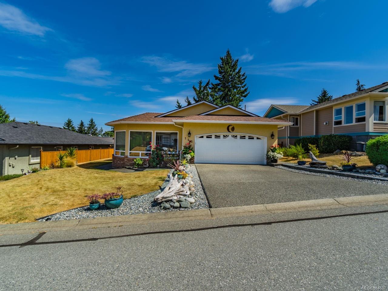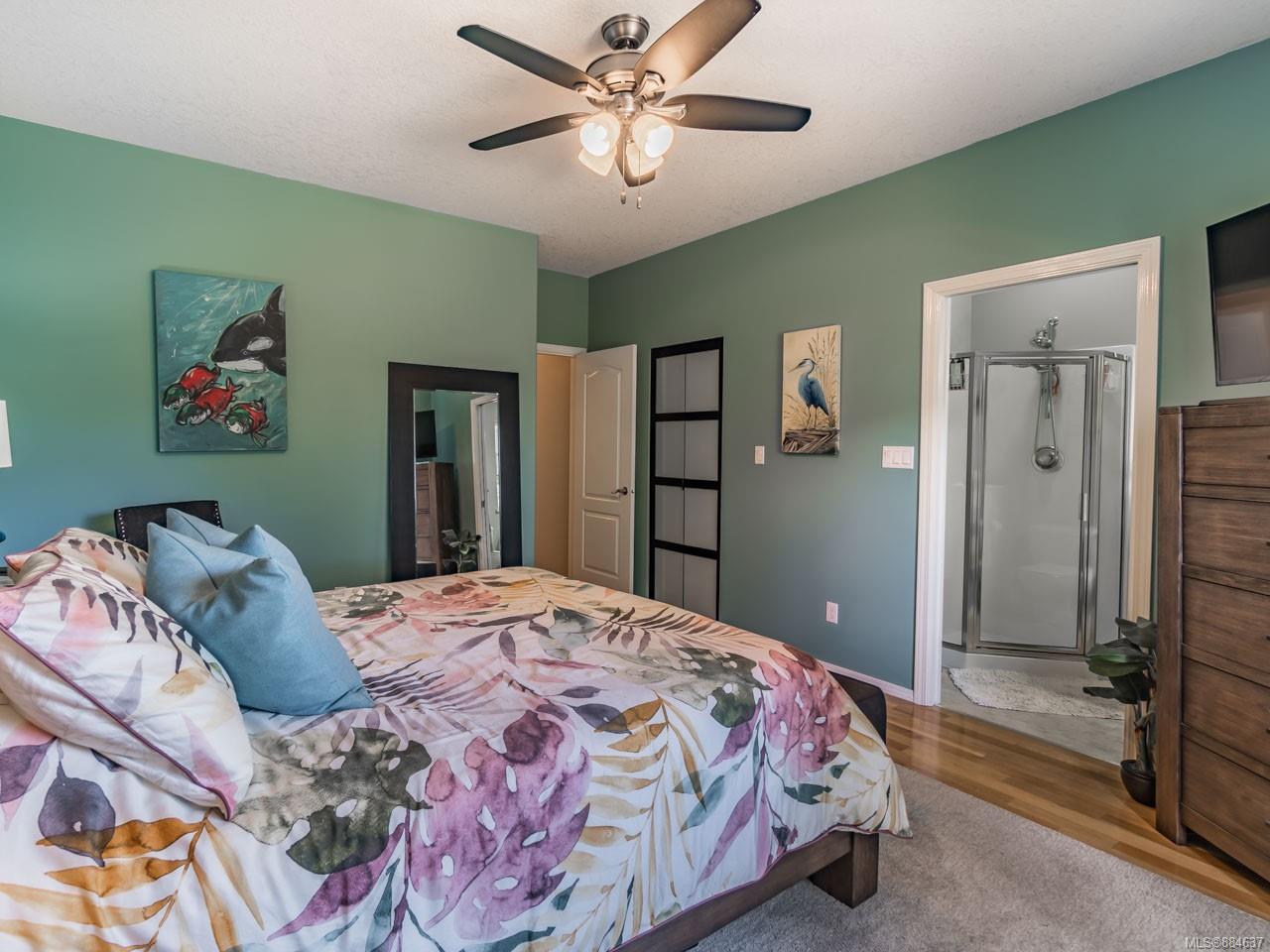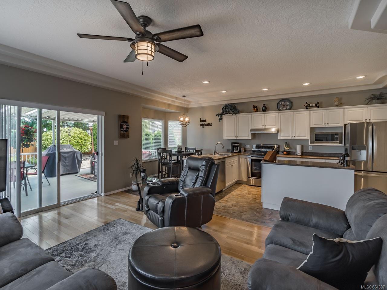 kitchen/breakfast nook/family room area. The principal bedroom features a walk-in closet and ensuite, and the main bath has a relaxing soaker tub. Updated fixtures, natural gas fireplace and furnace, shed, and raised garden beds are all part of