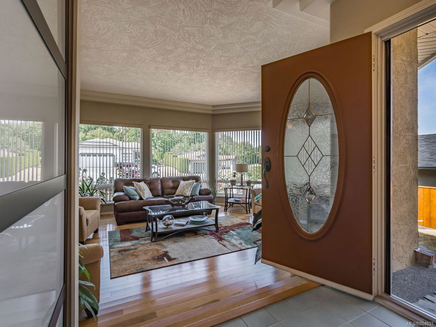 this home as you enter and note the cove ceilings, hardwood floors, and the bright front room’s wall of