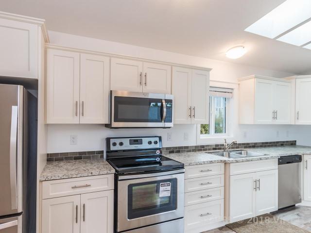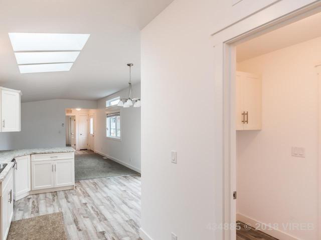 Time to drop anchor in beautiful Ladysmith, or downsize from your current situation? This surprisingly bright and fresh mobile home offers 912 sq. ft. of easy -care living, with 2 bedrooms, 2 baths, a terrific deck, large kitchen with stainless steel appliances, and nature out your back door! The open plan is enhanced by kitchen sunlights, a patio door to the pleasant deck, white walls, and tasteful flooring. The spacious master features a 4 piece bath and walk-in closet – no sacrifices! From taps to toilets, upgrades are evident. Electric forced air heat will keep you cozy. RV parking is available within this quiet, low – speed zone park close to trails and Forrest Field. Make your move in 2018!