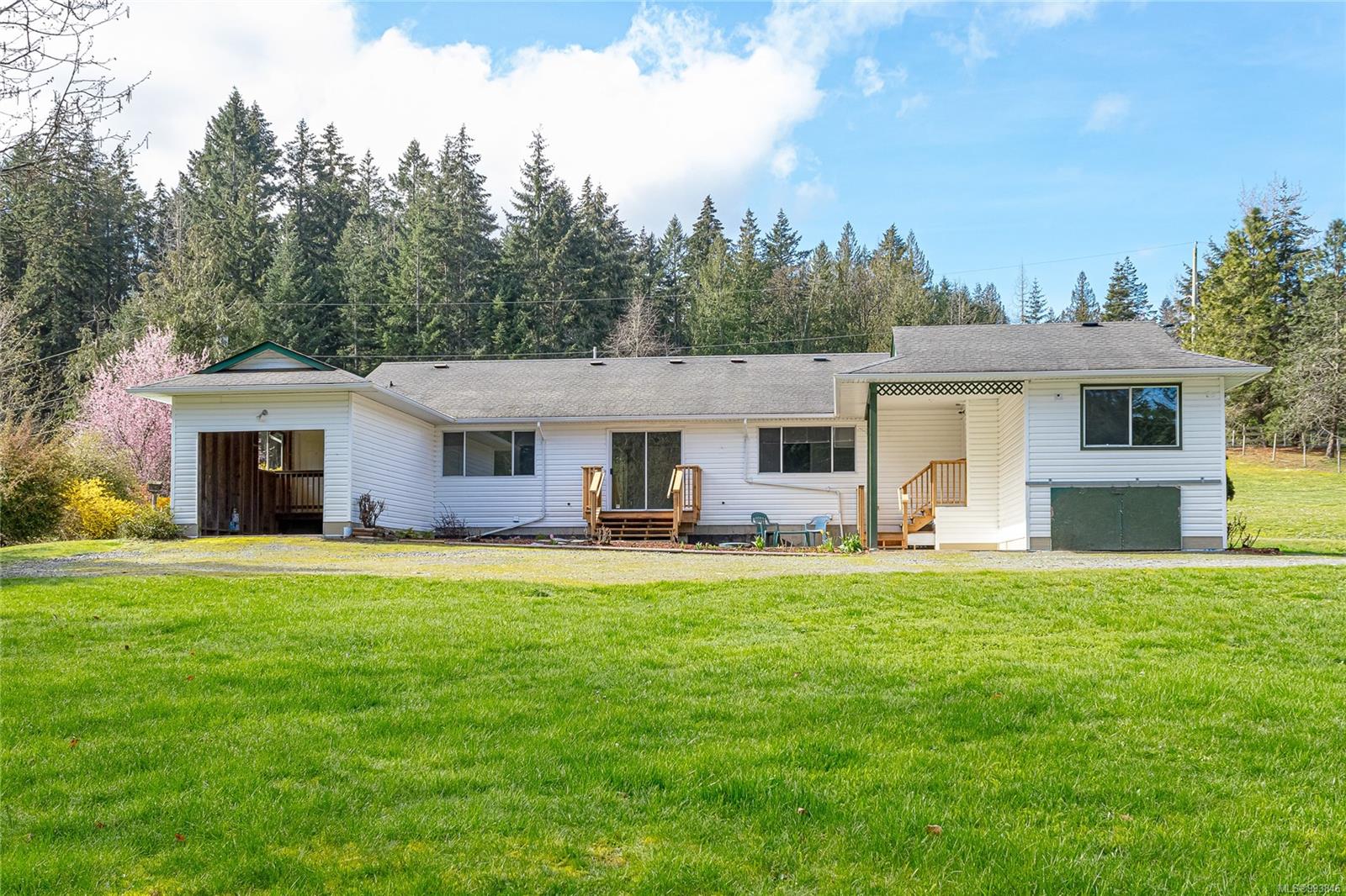Introducing a remarkable 2384 sq. ft. rancher, a well maintained residence boasting 4 bedrooms & 3 bathrooms. The main house features 3 bedrooms & 2 bathrooms, highlighted by an exquisite ensuite that includes a luxurious soaker tub, perfect for relaxation. You’ll appreciate ample storage & easy access to the exterior crawl space, enhancing convenience. Additionally, the property includes a versatile 1-bedroom suite, fully equipped with its own laundry, heat pump & a garage—making it an ideal solution for multi-generational living or an excellent opportunity for rental income. Venture outside to discover a sprawling fully fenced 1.98-acre yard, where a delightful array of well-established apple, pear, plum, walnut, hazelnut & peach trees flourish, providing a picturesque outdoor retreat. This property perfectly blends comfort, functionality, and natural beauty, making it a unique opportunity not to be missed. Seize the chance to make this wonderful home your own today!