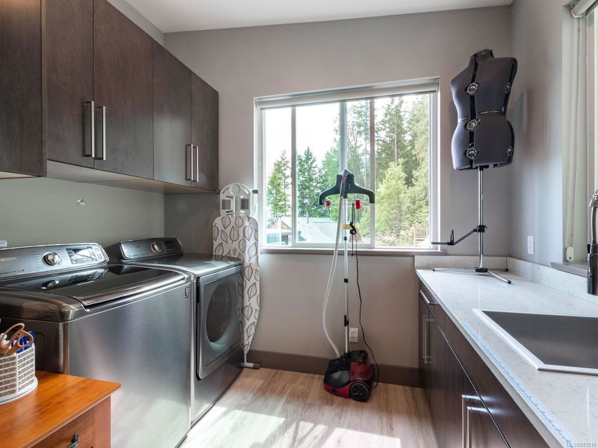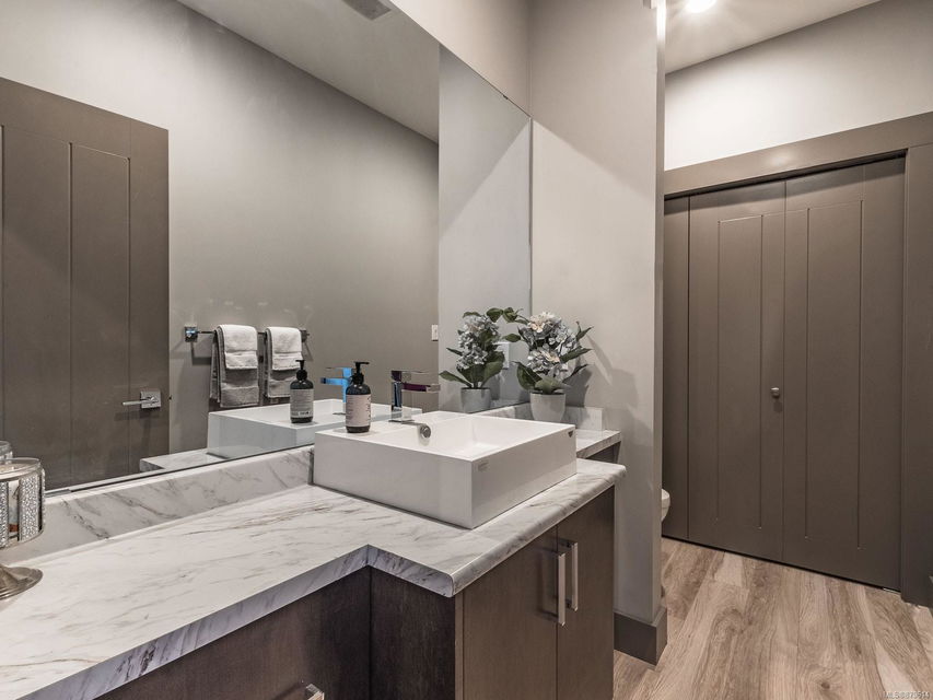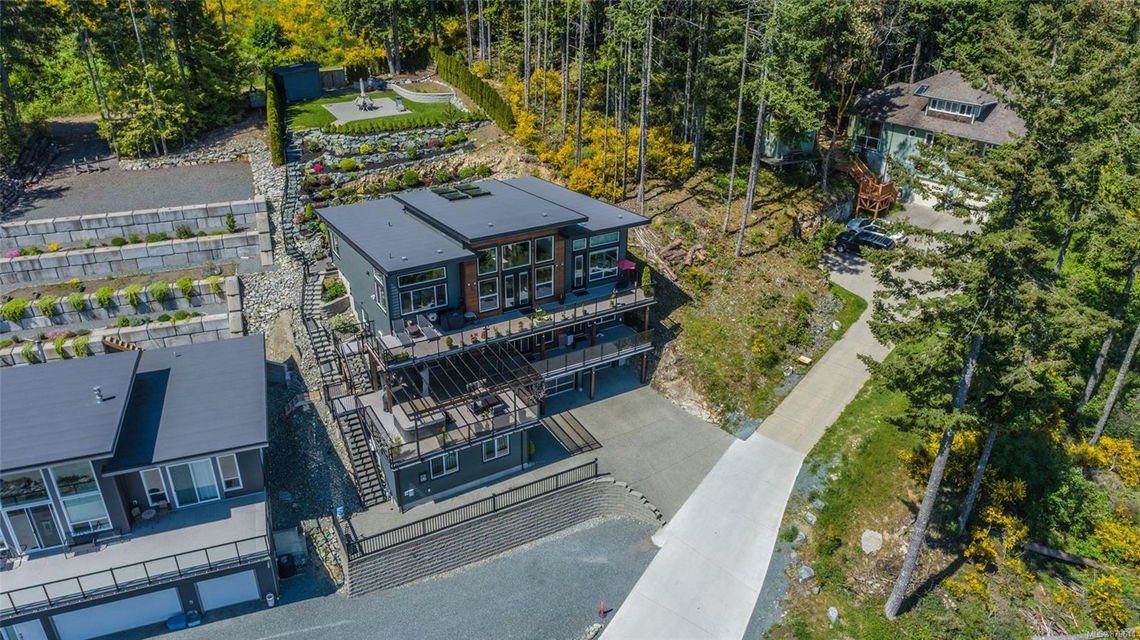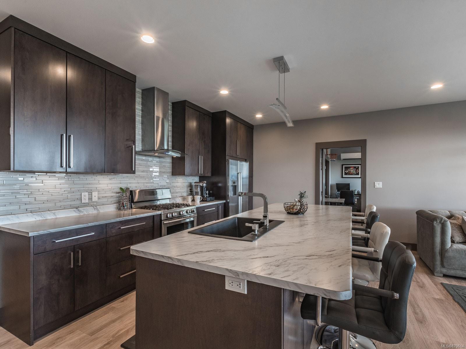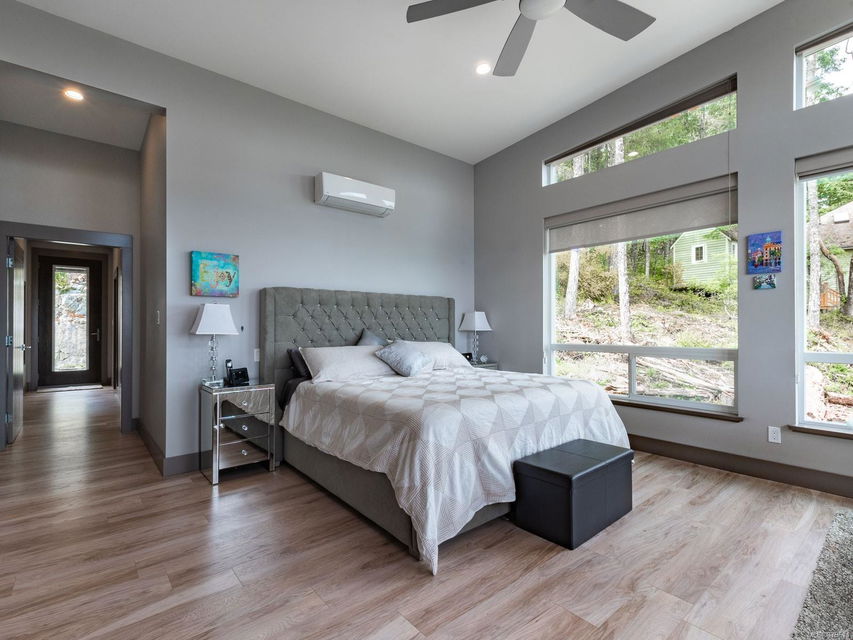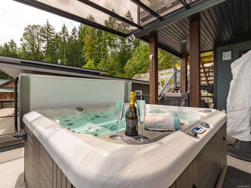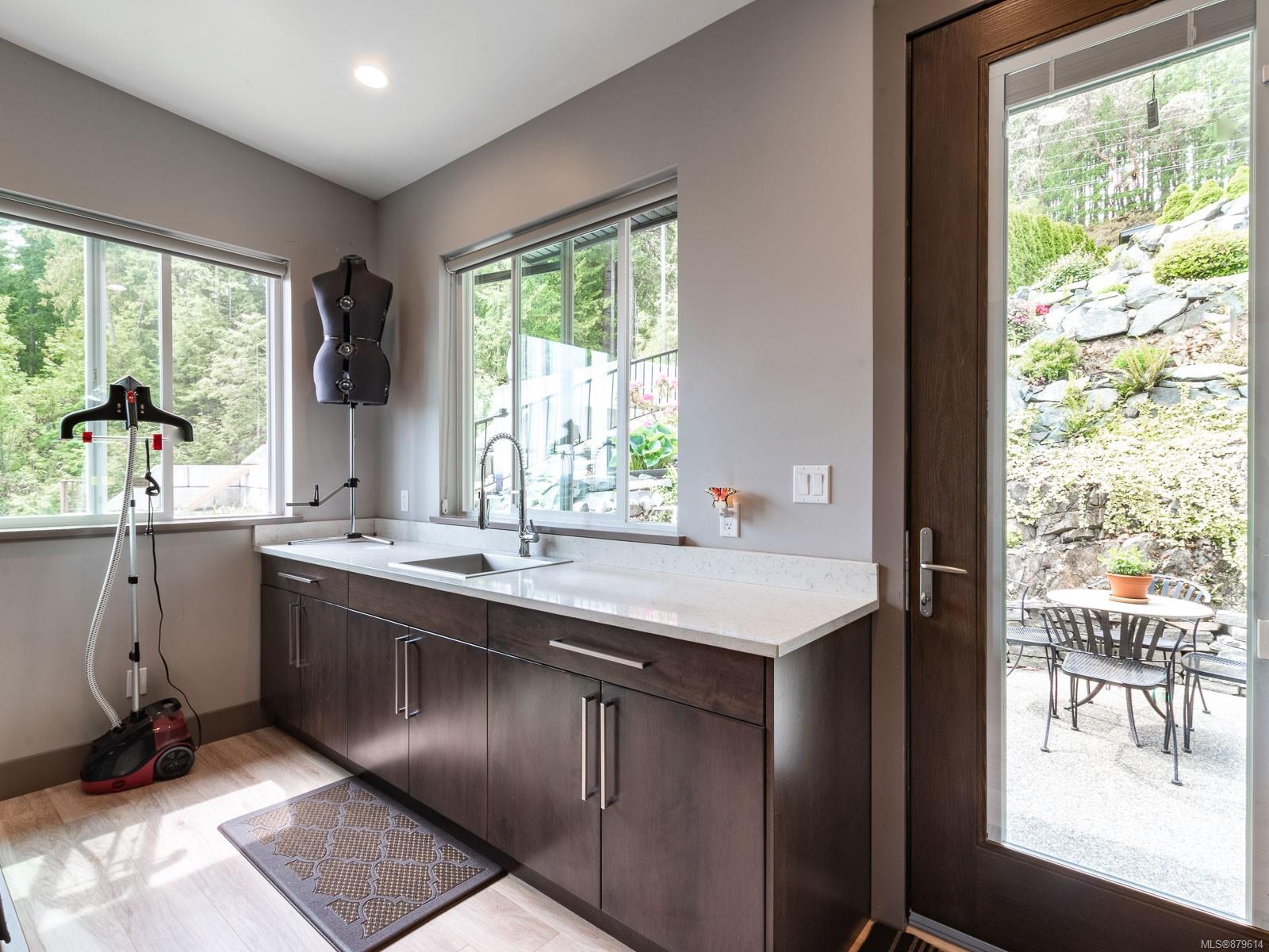 dreamy master closet and ensuite in upper level primary; efficient, premium laminate to accommodate the natural gas in-floor heat throughout with, streamlined electric fireplaces; tall custom doors; sound – system; and ample storage. Sweeping decks, pretty garden area, and in-ground sprinklers are all part of this well- designed package — plus, you’re close to hiking trails and moments from shopping! There’s nothing not to adore here.
