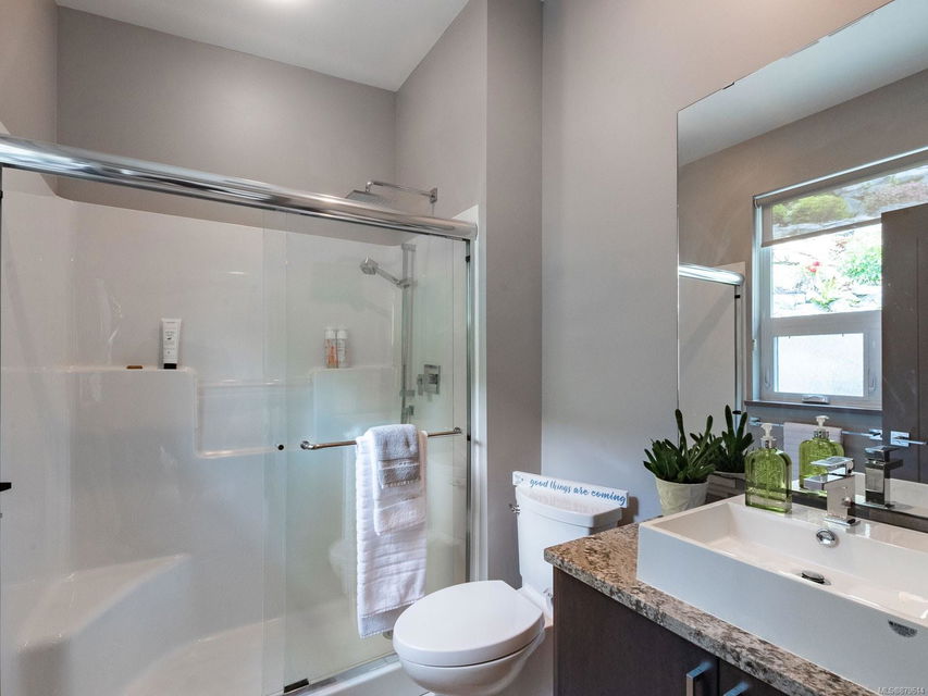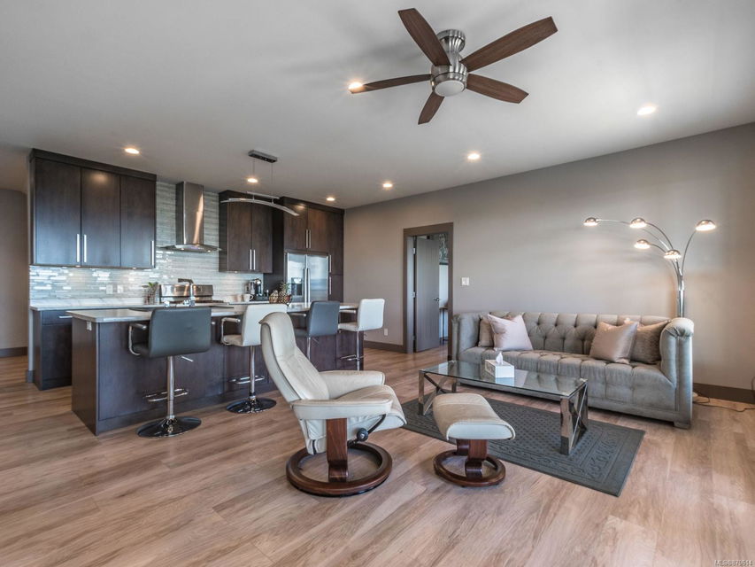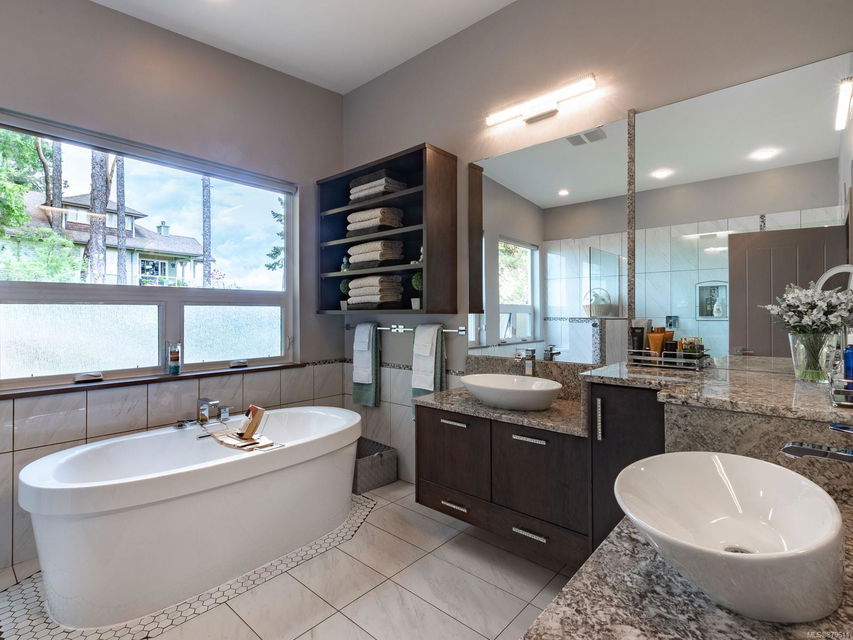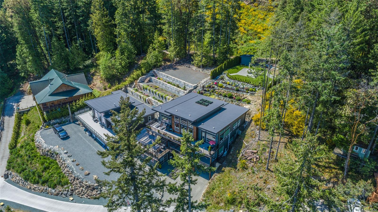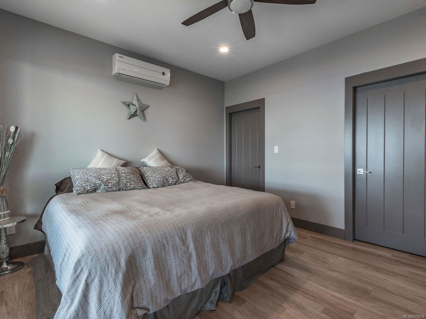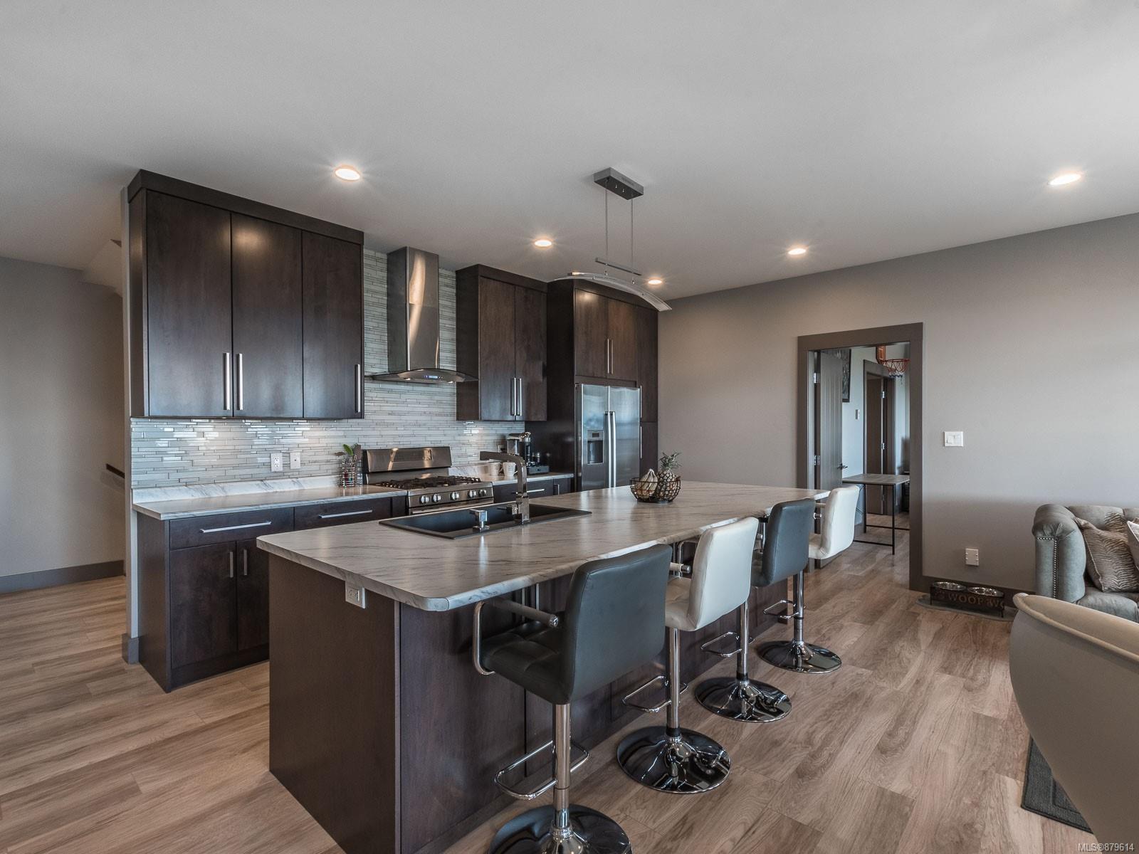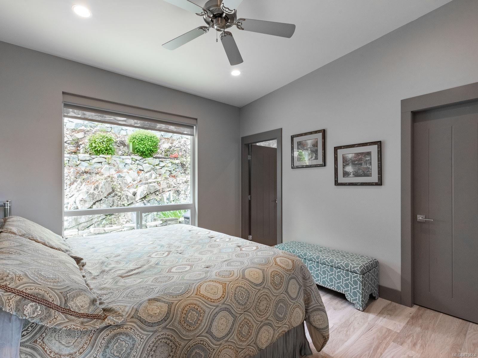 dreamy master closet and ensuite in upper level primary; efficient, premium laminate to accommodate the natural gas in-floor heat throughout with, streamlined electric fireplaces; tall custom doors; sound – system; and ample storage. Sweeping decks, pretty garden area, and in-ground sprinklers are all part of this well- designed package — plus, you’re close to hiking trails and moments from shopping! There’s nothing not to adore here.