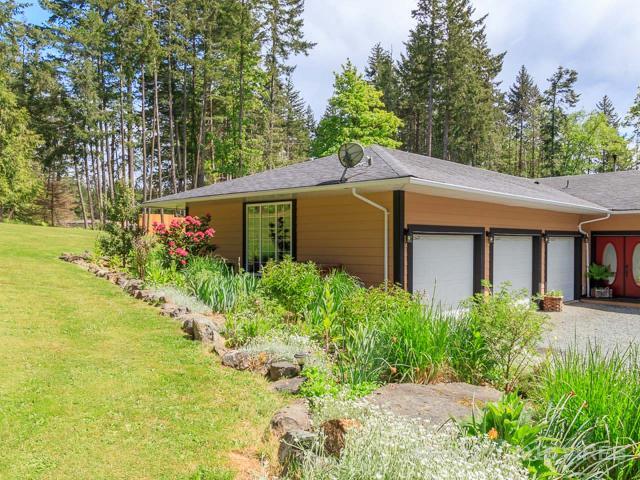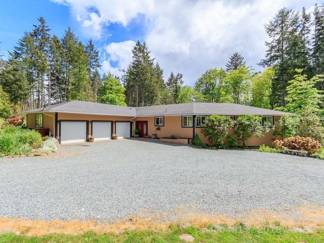 Custom-built rancher on 2.68 sprawling acres in peaceful Yellow Point. This private paradise is a gardener’s dream, surrounded by green space & beautiful views in every direction. Located in a quiet cul-de-sac, this property features a custom single-level home, massive 3 car garage & detached in-law suite with income potential. Highlights include: a master suite with sitting area, jetted tub, walk-in closet, dual vanities & deck access, as well as a beautifully-appointed kitchen, dining & living space filled with natural light. The separate suite is a bright & modern 1 bedroom + den, with full kitchen, bath & deck. The 3-car garage & workshop with pellet stove heat is an excellent space for the hobbyist, and the gardens are thriving and abundant, complete with a greenhouse, pond & shed. With a large deck for relaxing & a fire pit perfect for gatherings, this home offers privacy & a peaceful rural lifestyle, just minutes from the city. Measurements are approximate. Verify if important.