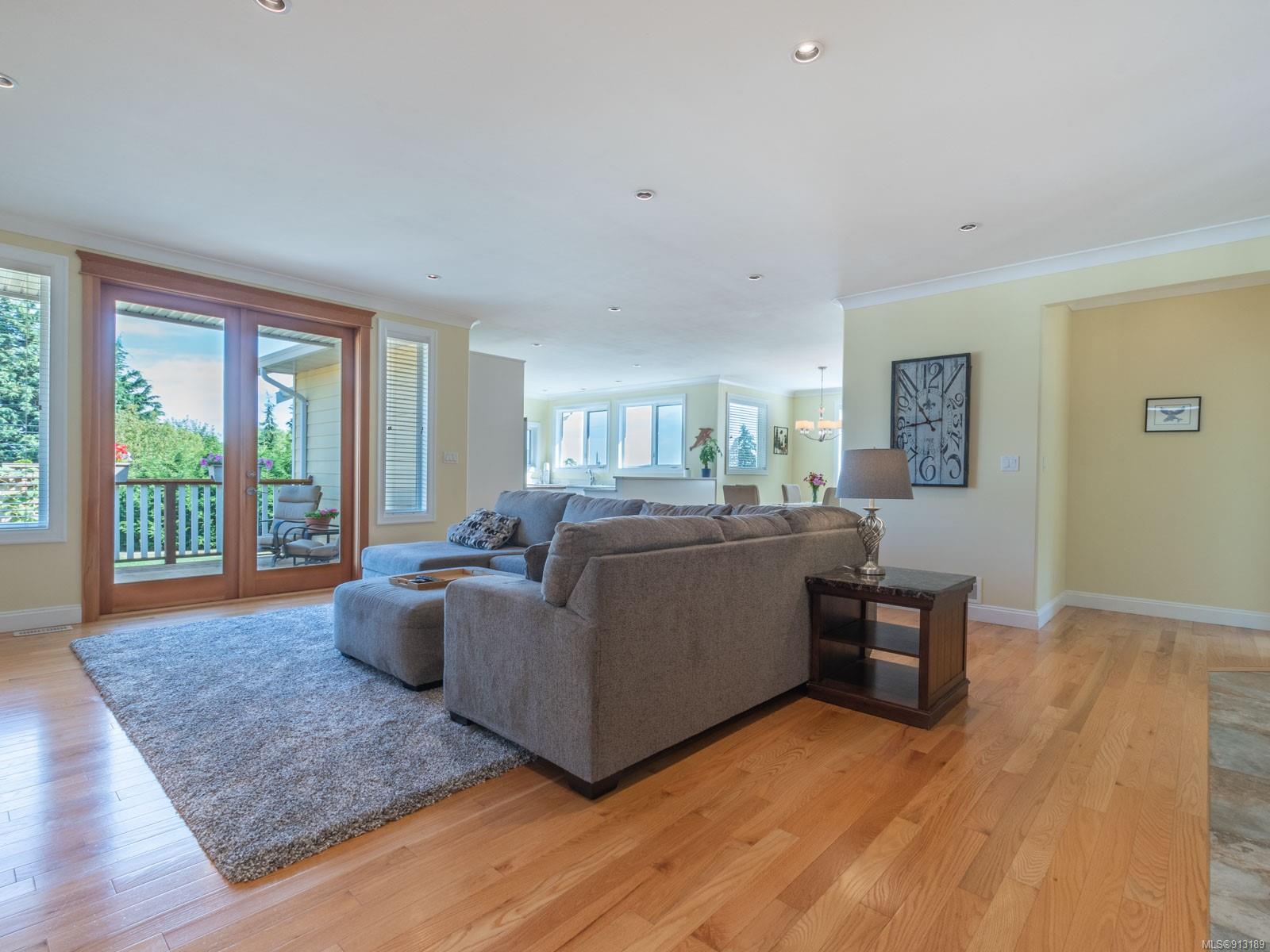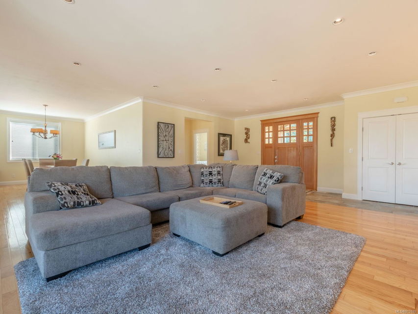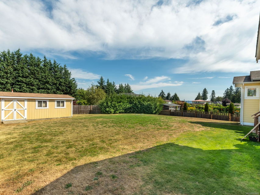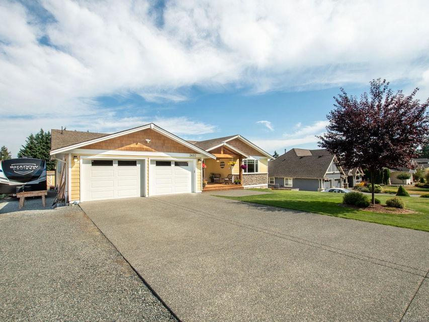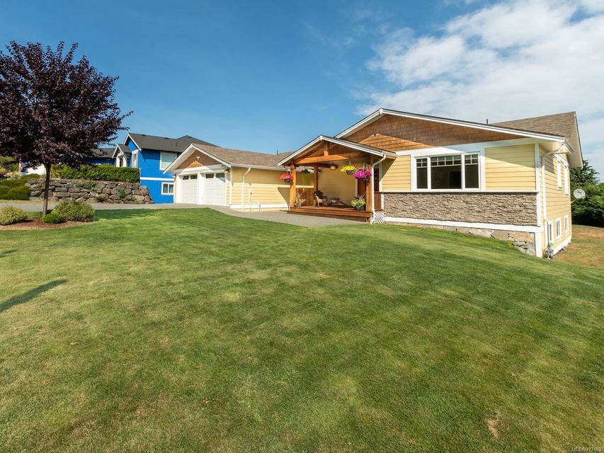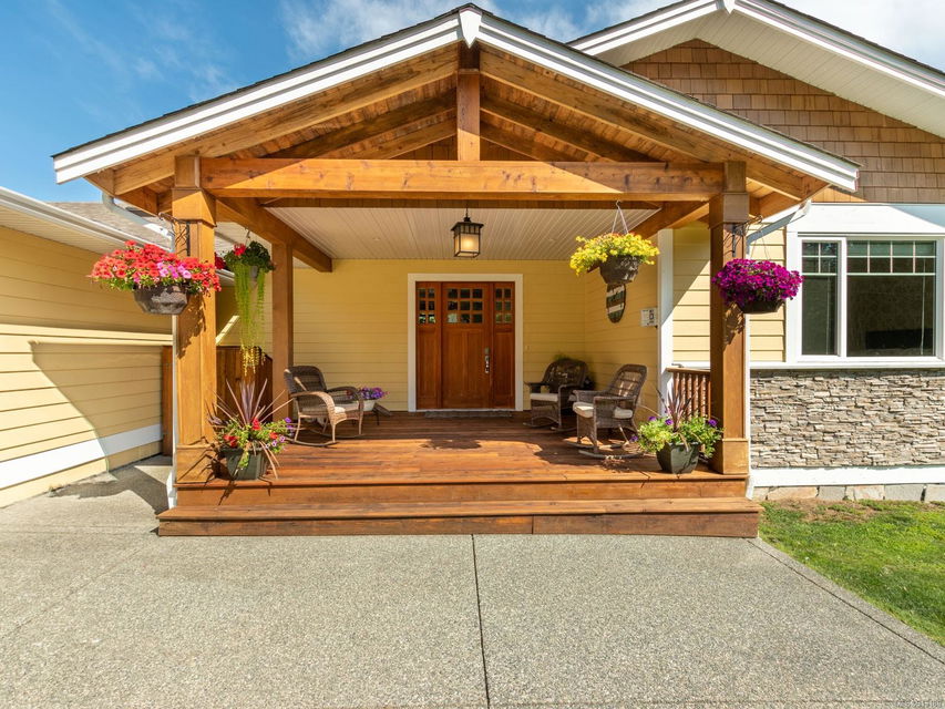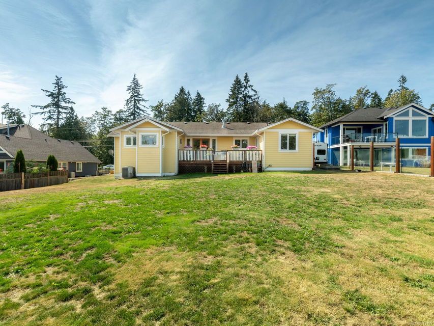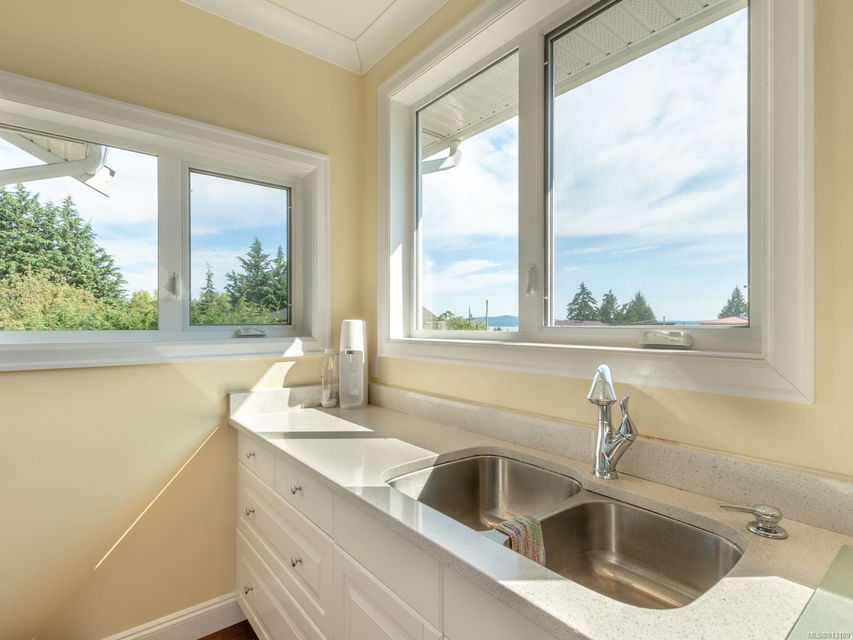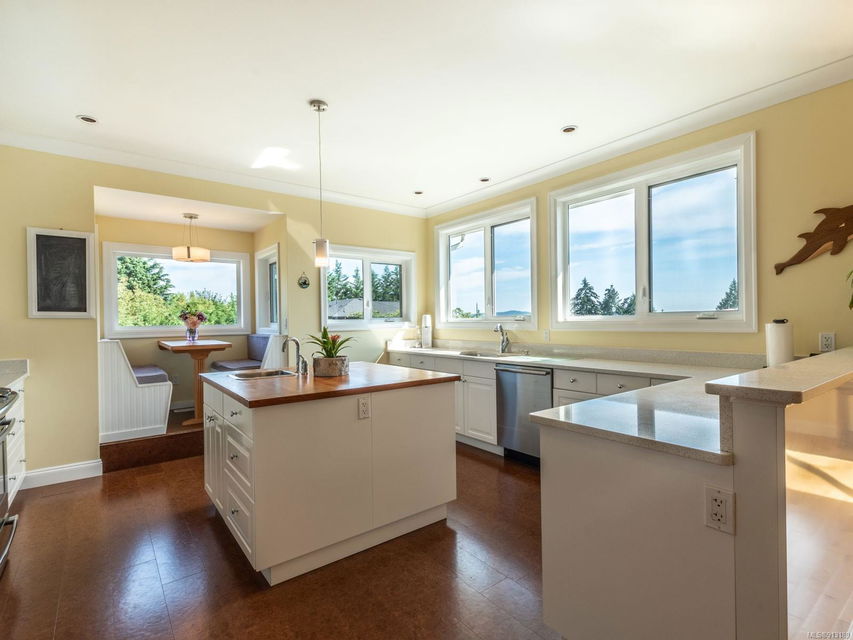 Perfection … ocean view included! Sizeable rooms, quality finishings, and cheerful as the colour yellow, this 4-bdrm, 3-bath home in peaceful Saltair spans 4036 sq. ft. and has “forever home” written all over it. Gorgeous entry, open concept, double-attached garage and 2 decks. Main level features a dream kitchen (w/ island), breakfast nook (built-in dining), primary bedroom (w/ ideal walk-in closet and en suite bath), plus 2 more bedrooms and a huge laundry room (w/ extra storage), as well as grand living and dining rooms. Lovely 9’ French doors lead to the deck, ideal for entertaining – and there’s parking galore! Lower level offers welcoming rec and family rooms – easy potential for media room – and extra bedroom. Light pours through large windows and airy rooms with 9’ ceilings (and crown moulding). Flat lawn area, great shed … and a priceless harbour vista.