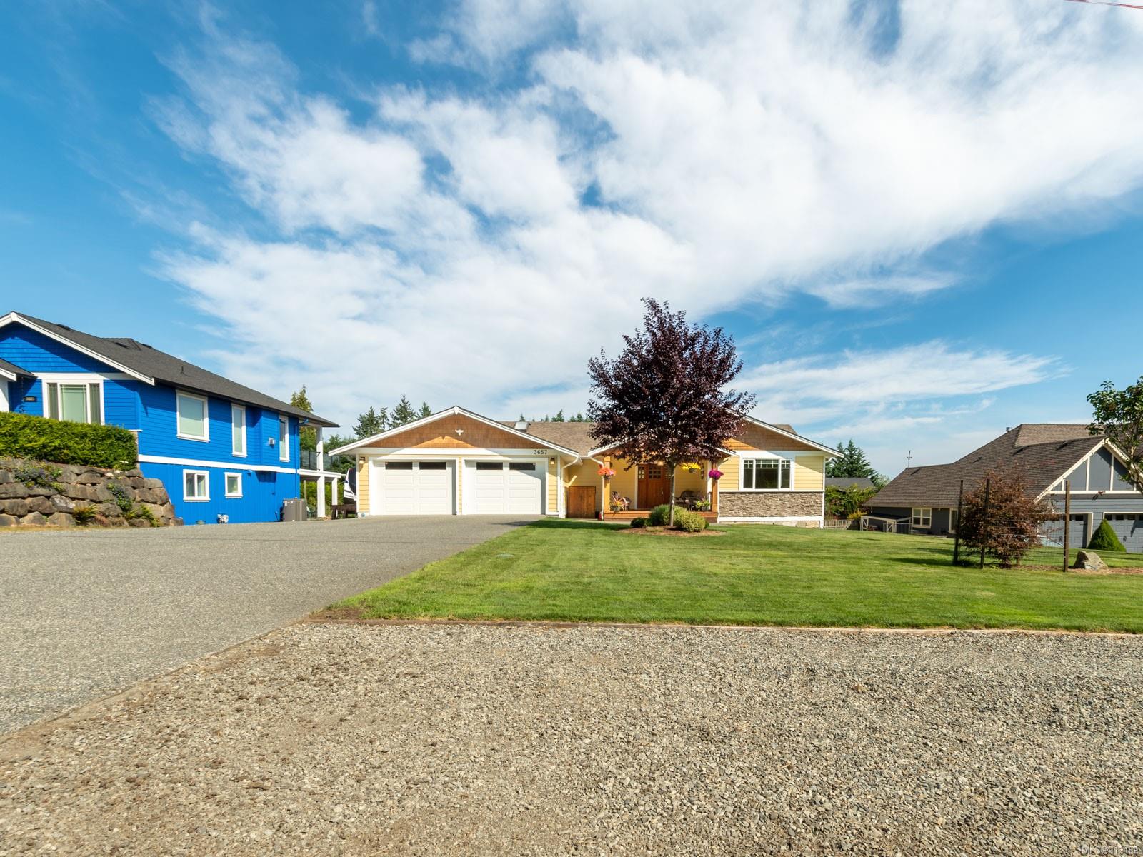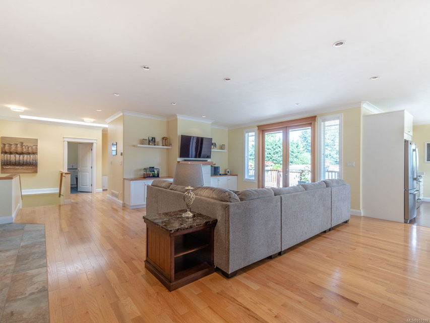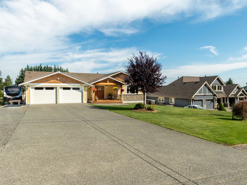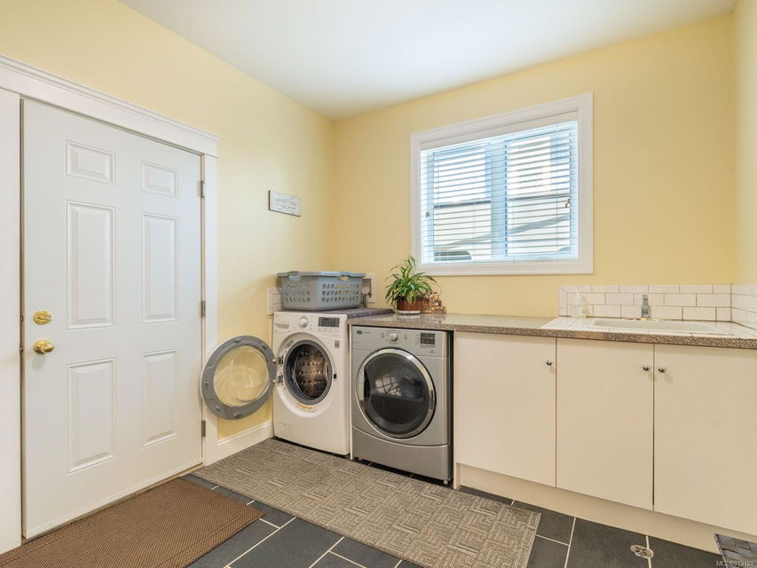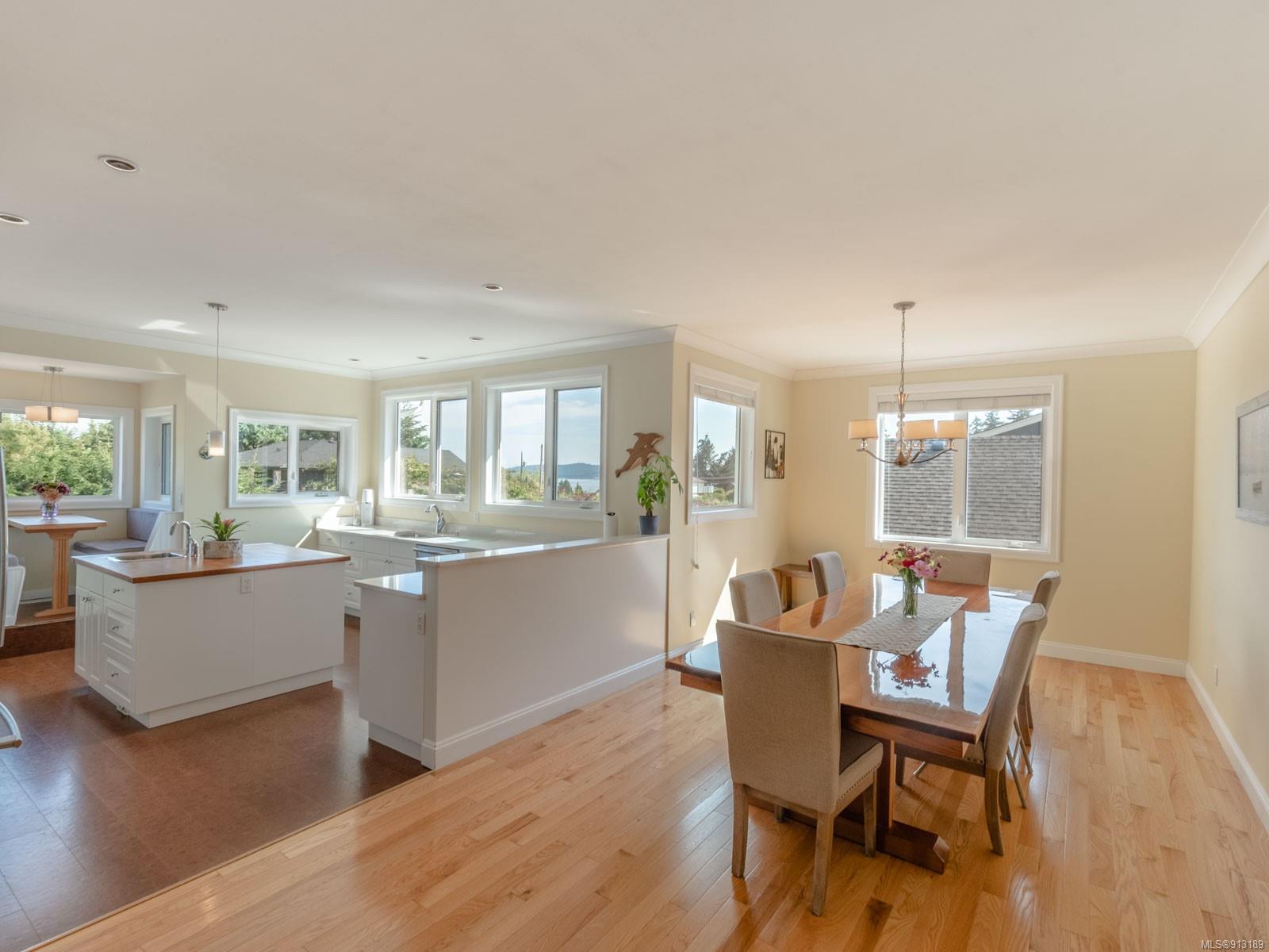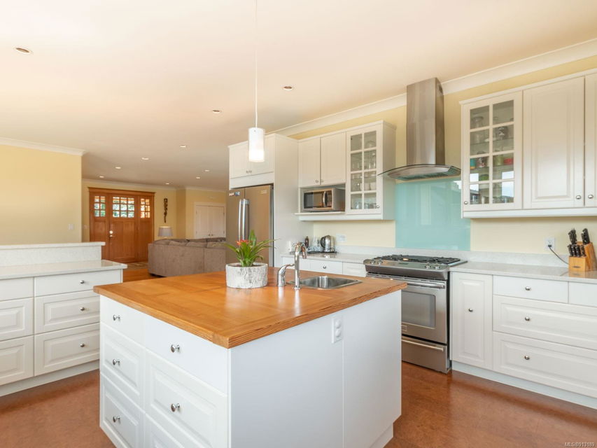 Perfection … ocean view included! Sizeable rooms, quality finishings, and cheerful as the colour yellow, this 4-bdrm, 3-bath home in peaceful Saltair spans 4036 sq. ft. and has “forever home” written all over it. Gorgeous entry, open concept, double-attached garage and 2 decks. Main level features a dream kitchen (w/ island), breakfast nook (built-in dining), primary bedroom (w/ ideal walk-in closet and en suite bath), plus 2 more bedrooms and a huge laundry room (w/ extra storage), as well as grand living and dining rooms. Lovely 9’ French doors lead to the deck, ideal for entertaining – and there’s parking galore! Lower level offers welcoming rec and family rooms – easy potential for media room – and extra bedroom. Light pours through large windows and airy rooms with 9’ ceilings (and crown moulding). Flat lawn area, great shed … and a priceless harbour vista.