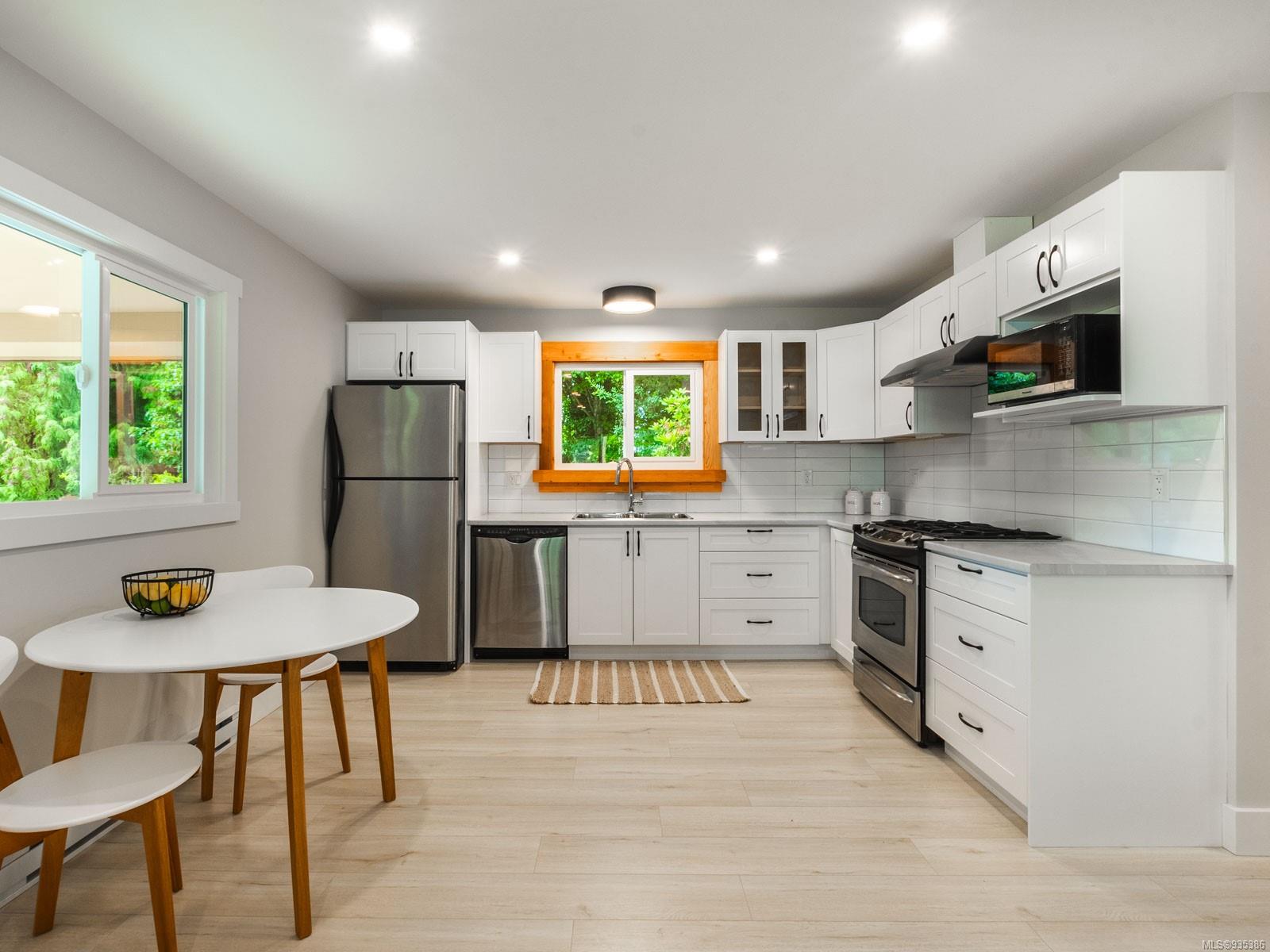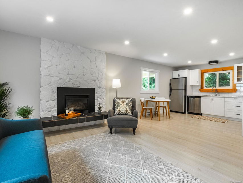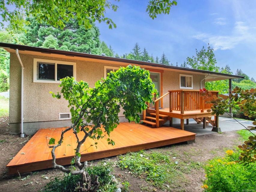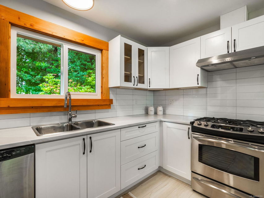 Contemporary, crisp, and clean! From cohesive flooring to upgraded windows, classy kitchen to sparkling bath, almost everything’s fresh and new in this bright 2-bedroom, 1-bath home in an excellent location. Enjoy an open kitchen and living area (with attractive natural gas fireplace) and two good-sized bedrooms, all recently painted in neutrals. The private yard backs the 3-par golf course and is bordered in mature trees. The 2-tiered cedar deck is BBQ-ready, and the yard’s lower area offers an ideal chiminea or firepit spot. Carport parking, plenty of storage, combined boot room and laundry area, and steps away from Holland Creek Trail. Close to Coronation Mall’s shopping and restaurants. Ideal first home, downsizers’ home, investment, or summer retreat for snowbirders. Not too big, not too small … this one is just right.