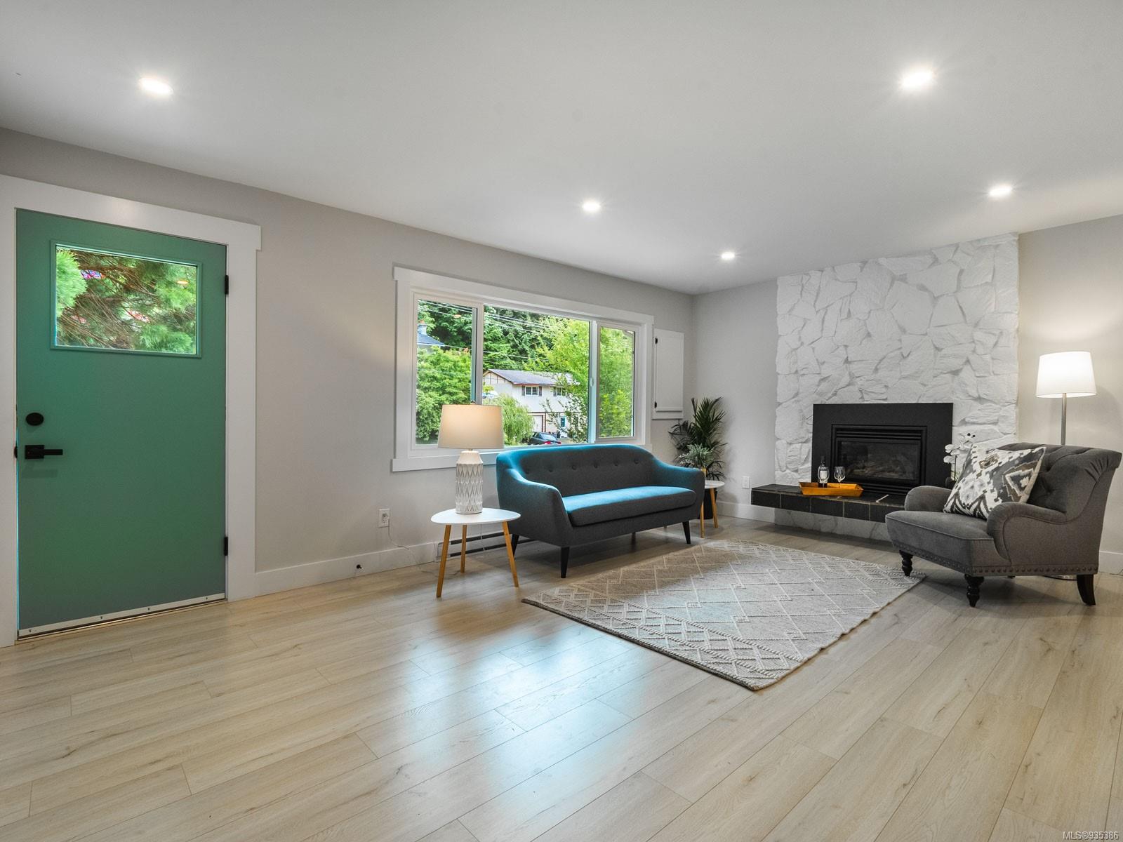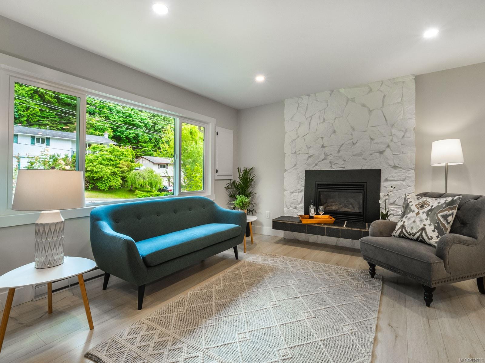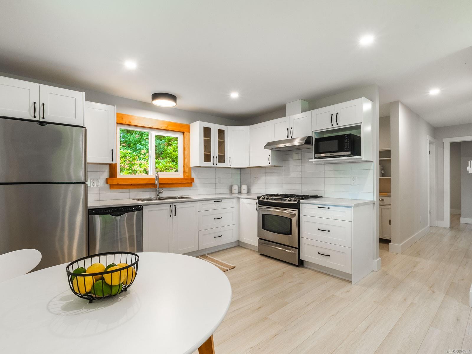Contemporary, crisp, and clean! From cohesive flooring to upgraded windows, classy kitchen to sparkling bath, almost everything’s fresh and new in this bright 2-bedroom, 1-bath home in an excellent location. Enjoy an open kitchen and living area (with attractive natural gas fireplace) and two good-sized bedrooms, all recently painted in neutrals. The private yard backs the 3-par golf course and is bordered in mature trees. The 2-tiered cedar deck is BBQ-ready, and the yard’s lower area offers an ideal chiminea or firepit spot. Carport parking, plenty of storage, combined boot room and laundry area, and steps away from Holland Creek Trail. Close to Coronation Mall’s shopping and restaurants. Ideal first home, downsizers’ home, investment, or summer retreat for snowbirders. Not too big, not too small … this one is just right.
