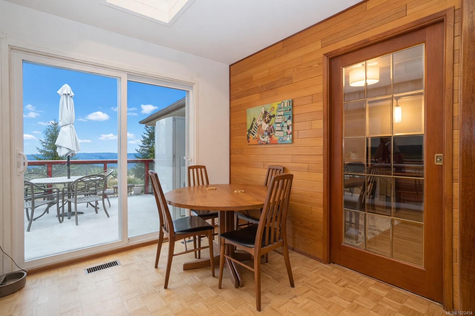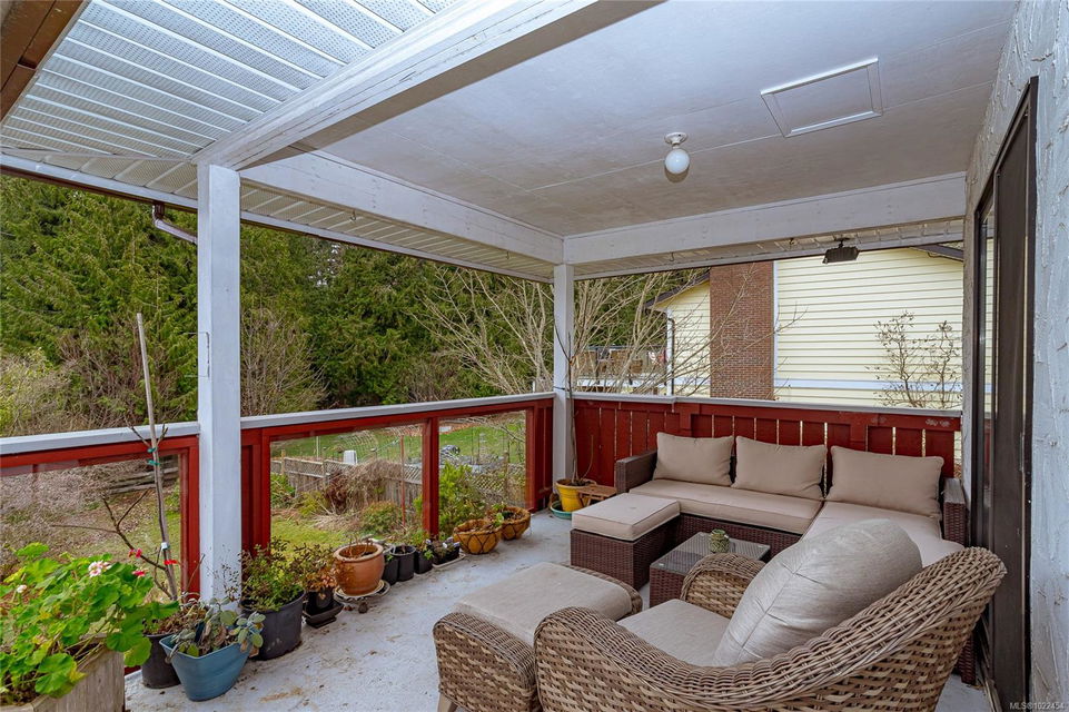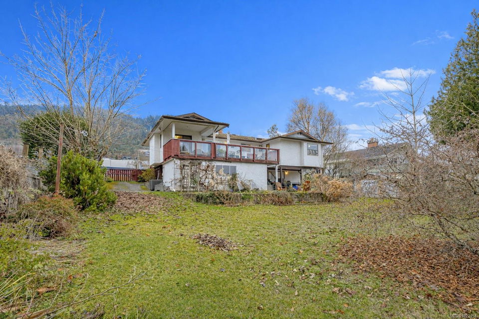 Welcome to this rare offering with sweeping mountain views on one side & ocean views on the other, creating a truly special living experience. This 4-bedroom, 3-bathroom home features an awesome, spacious floor plan ideal for families or retirees, with a lower level offering excellent potential for multi-generational living or a potential future suite. A large, fully deer-fenced yard is a gardener’s paradise, boasting mature landscaping, heritage roses, sun-drenched growing areas, & fruit trees including Gravenstein & Spartan apples, Bartlett pears, plum tree, a fig tree, plus dedicated garden space, & ample room for your RV. Inside, enjoy two newly renovated bathrooms, newly painted rooms, & renovated laundry room. A standout feature is the heated workshop, plumbed with hot & cold water—perfect for hobbyists/DIY enthusiasts. Located near the end of a quiet no-through road in one of Ladysmith’s most desirable neighborhoods, with a playground & dog park across the street, minutes to Coronation Mall, golf, hiking trails, & everyday amenities. Peaceful, private, & perfectly positioned.