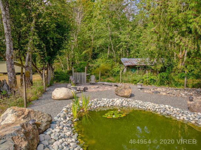 Grouhel Road in Ladysmith’s “Diamond” is a jewel of a place to live! Rare, rural offering with this 2-bdrm, 1 bath, extremely neat mountainview property on a no-thru road. Pride of ownership abounds: you’ll see it in the bamboo flooring, double pane windows, granite countertops, recessed lighting, custom maple trim and stainless steel appliances. The bright lower floor includes a bar and woodstove – a great place for the family or entertaining guests. Behind the stately cedars you’ll find a deck that stretches across the width of this home with southern exposure plus there is a side deck. The back yard is a masterpiece … fully fenced and largely xeriscaped, featuring a large river-rock pond, raised garden beds, fig and apple trees, a brick patio and firepit with custom seating, and a grassy area for dogs, kids and all to enjoy. Ample parking and storage for boats, RV’s, off road vehicles and more within the in-house workshop, detached shop and designated parking spaces.
