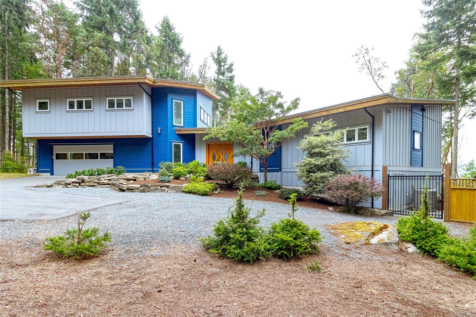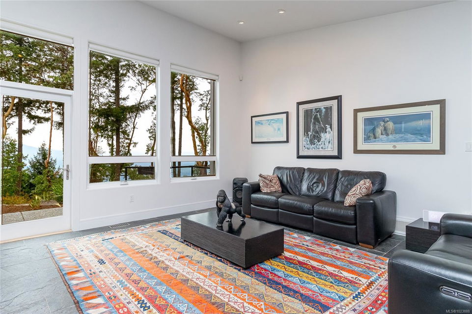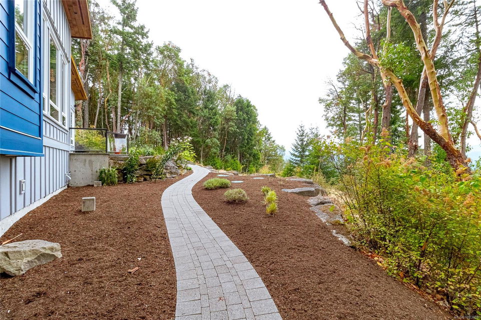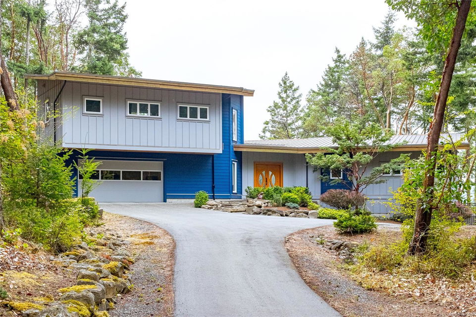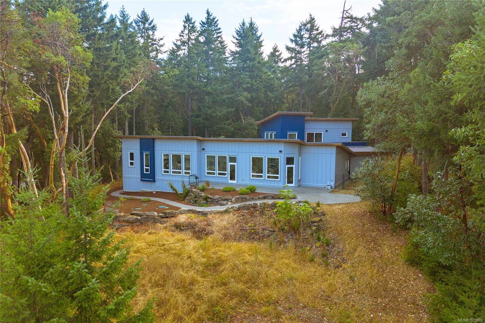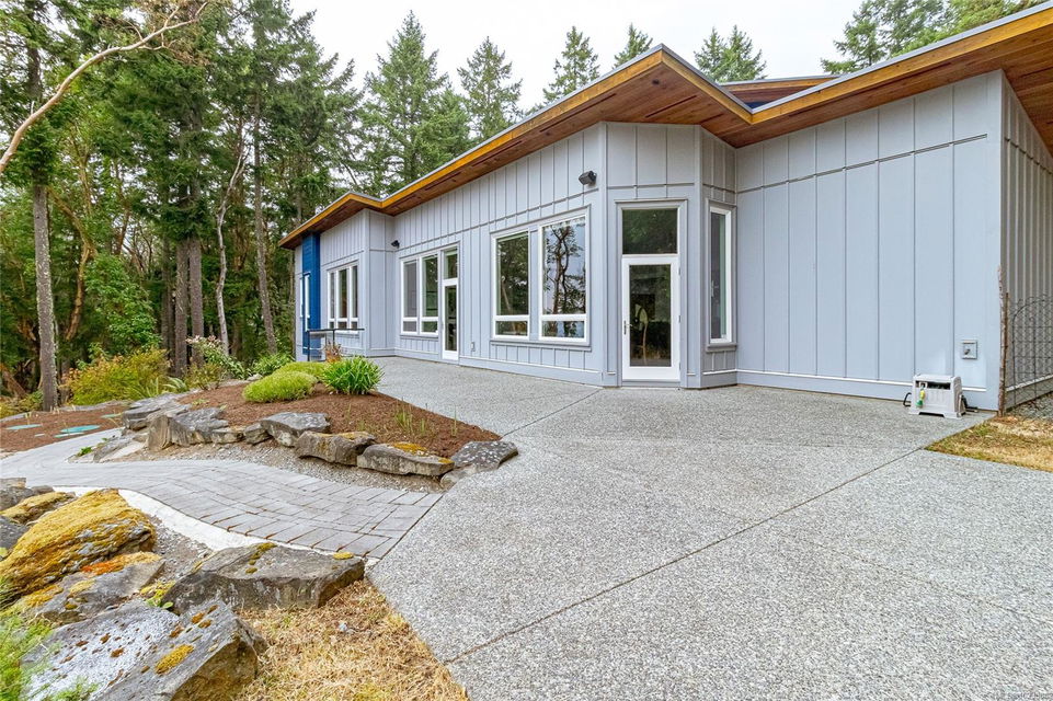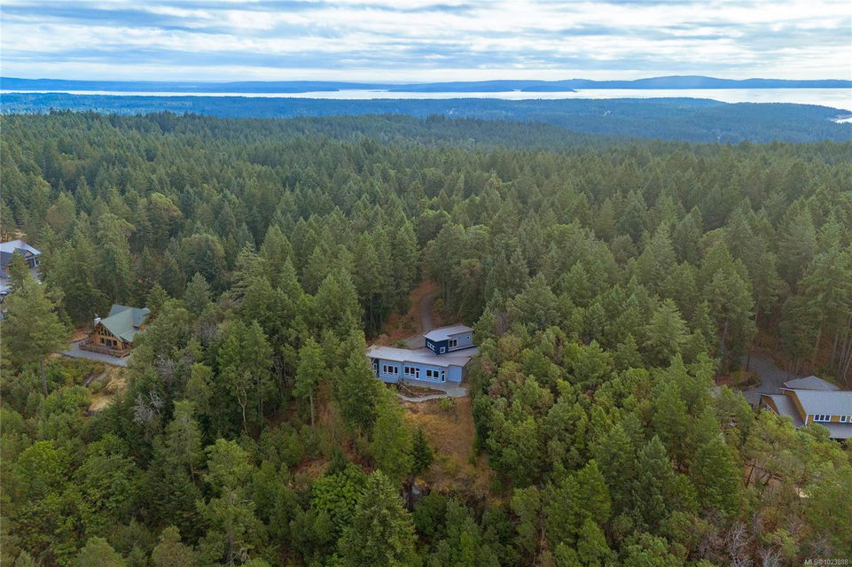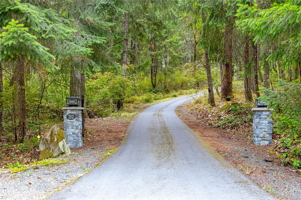 Welcome to this stunning & secluded home nestled in the heart of Aquilla Estates. Surrounded by mature trees & nature w/ breathtaking harbour & mountain views. This 5-acre property offers the perfect balance of peaceful country living & convenient access—just a short drive to both Ladysmith & Nanaimo. This modern custom home features a smart layout designed for easy main-level living. The spacious primary suite & a 2nd bedroom are on the main floor, while a third bedroom w/ ensuite & a private deck is located upstairs—ideal for guests or a family room. Enjoy cinematic experiences in the soundproof, high-end media room. Step outside of the main living area to a natural, low-maintenance yard & take in the tranquil setting—perfect for your morning coffee or evening unwinding. Additional features include a large laundry room w/ built-in dog wash, & a full-height walk-in crawl space offering extensive storage. A rare opportunity to embrace the best of West Coast living in comfort & privacy.