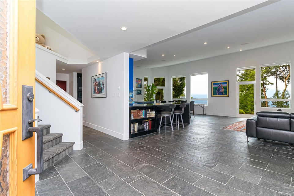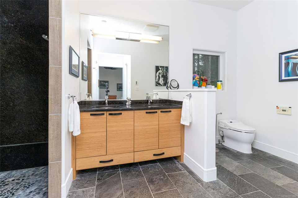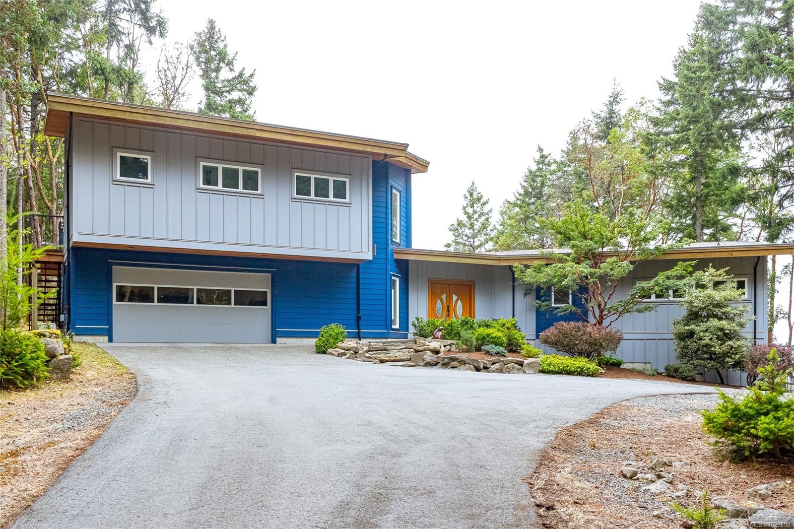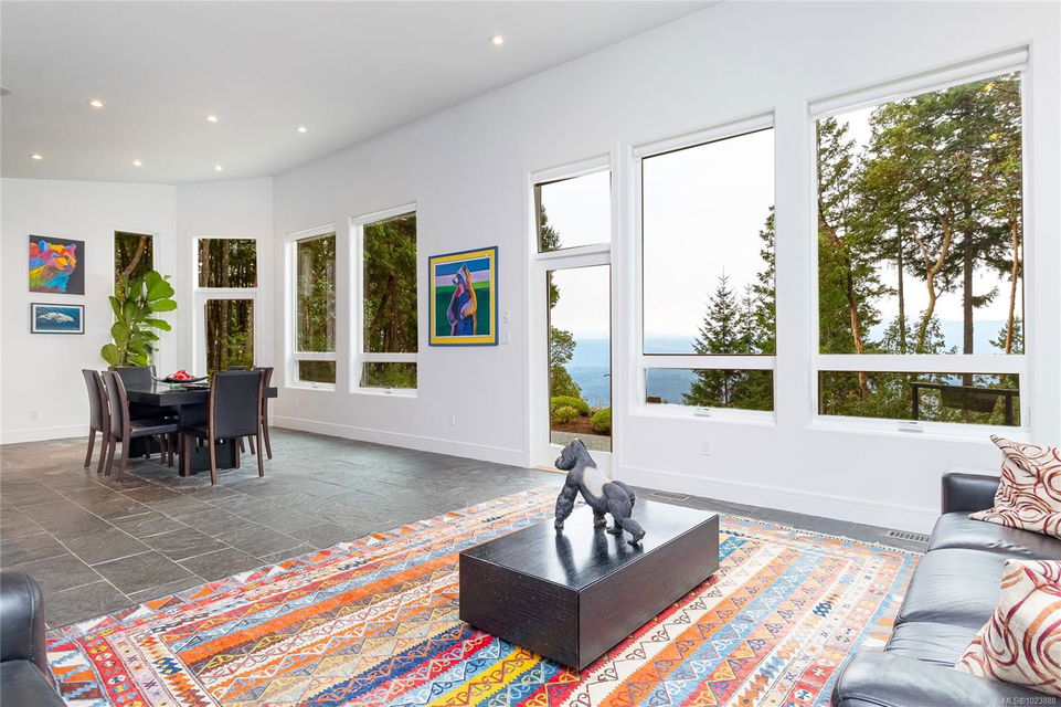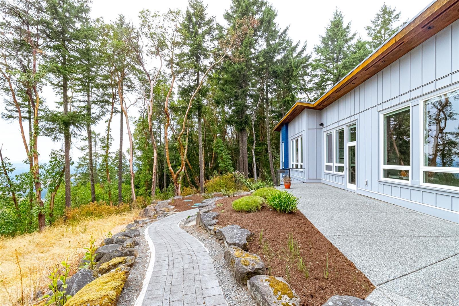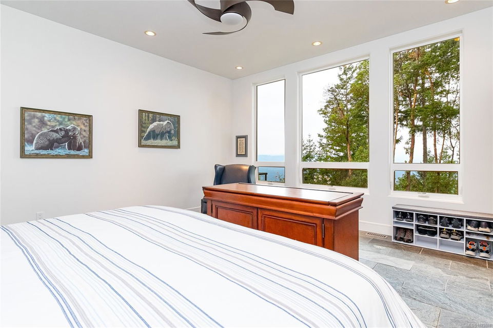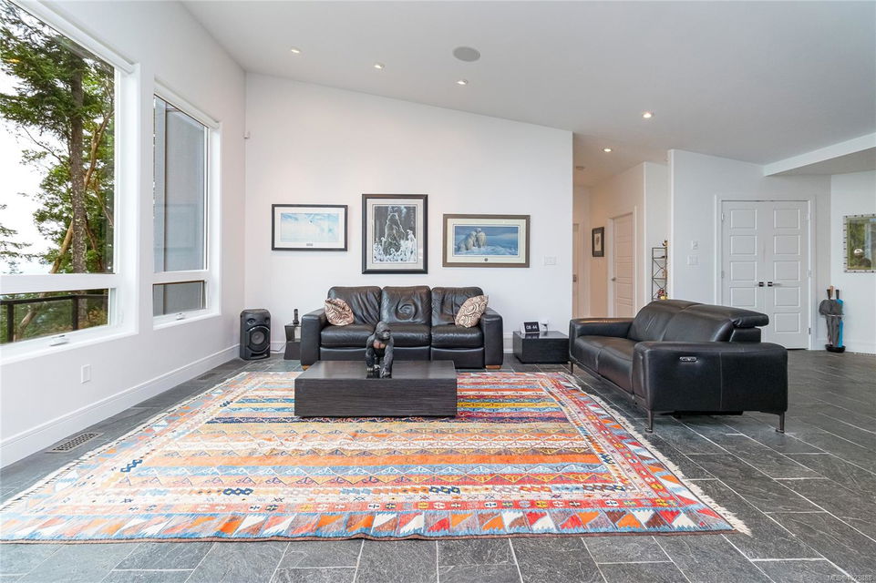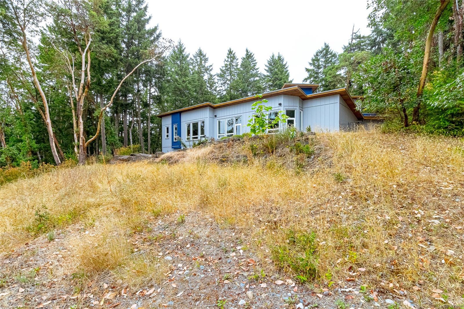 Welcome to this stunning & secluded home nestled in the heart of Aquilla Estates. Surrounded by mature trees & nature w/ breathtaking harbour & mountain views. This 5-acre property offers the perfect balance of peaceful country living & convenient access—just a short drive to both Ladysmith & Nanaimo. This modern custom home features a smart layout designed for easy main-level living. The spacious primary suite & a 2nd bedroom are on the main floor, while a third bedroom w/ ensuite & a private deck is located upstairs—ideal for guests or a family room. Enjoy cinematic experiences in the soundproof, high-end media room. Step outside of the main living area to a natural, low-maintenance yard & take in the tranquil setting—perfect for your morning coffee or evening unwinding. Additional features include a large laundry room w/ built-in dog wash, & a full-height walk-in crawl space offering extensive storage. A rare opportunity to embrace the best of West Coast living in comfort & privacy.