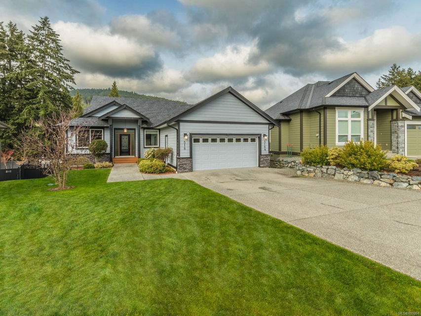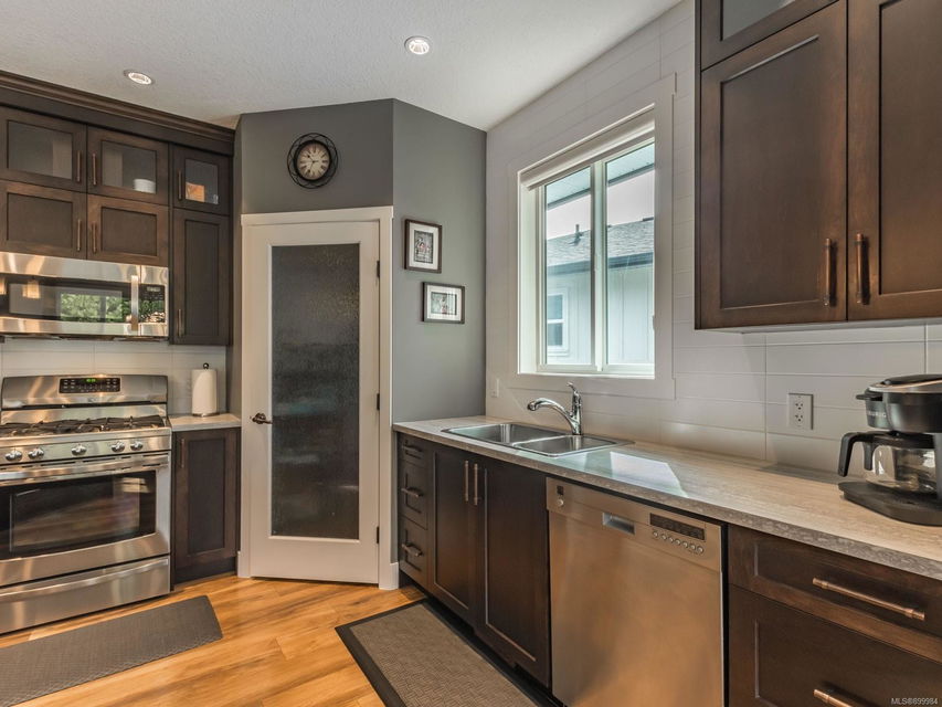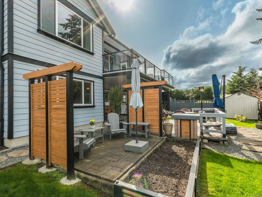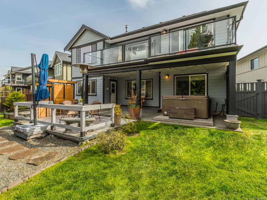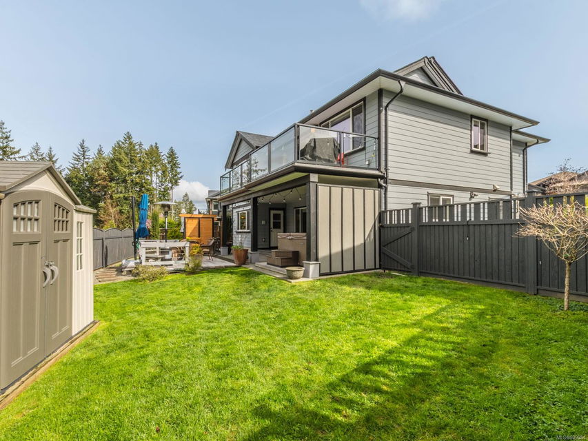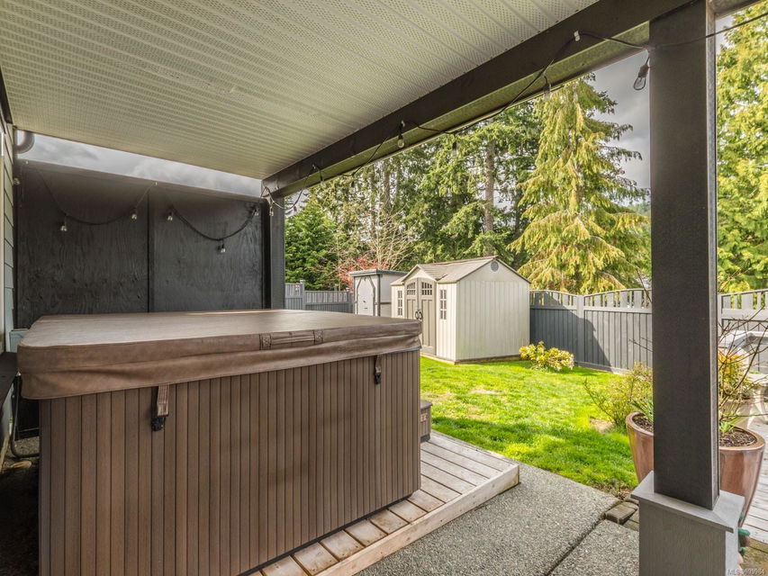 Simply outstanding and a rare opportunity: a spacious house on a quiet street with sunset views and executive style, top to bottom, including its private 2-bedroom legal suite with separate laundry. Main floor offers a bedroom wing with enviable ensuite bath in the primary bedroom; open concept living area (with elegant gas fireplace and 11′ ceiling), dining, and showstopping kitchen. Step onto the covered deck to take in the peaceful vista of forested hills. Owners’ private space continues on the lower floor with an extra bedroom, bathroom, family room and rec room … and the Beachcomber hot tub’s included! Bonuses included high-efficiency gas heat/hot water tanks, air conditioning, vinyl decking, major storage (including 2 sheds), and the suite’s murphy bed and TV are included. The property’s fully fenced, has a bbq table for entertaining, complete sprinkler system, garage, and loads of parking. This is “next level” living.