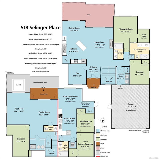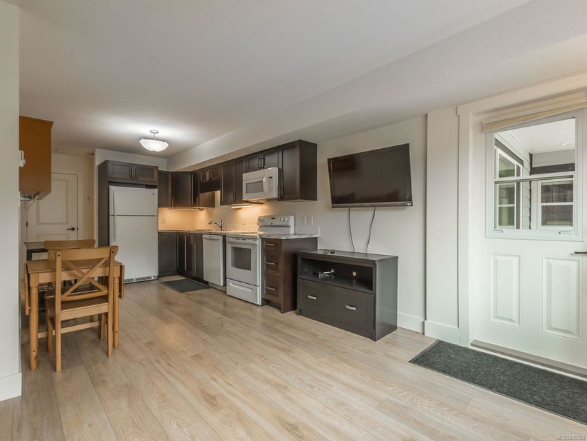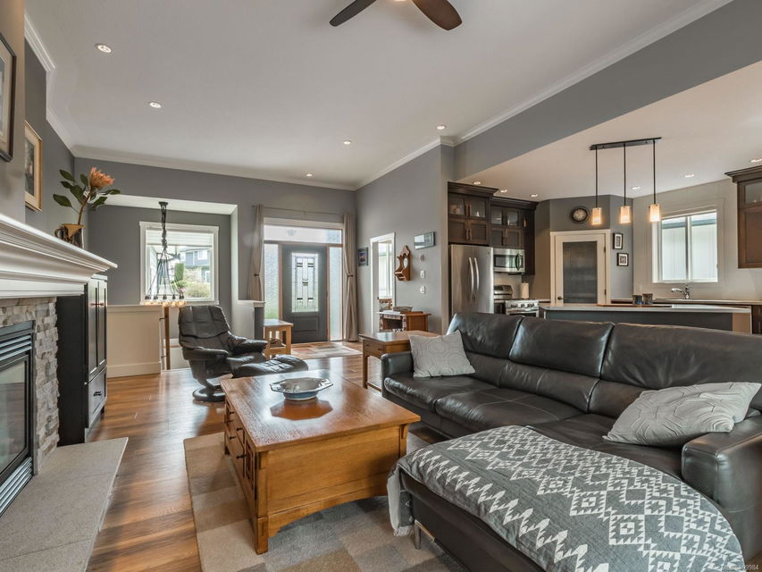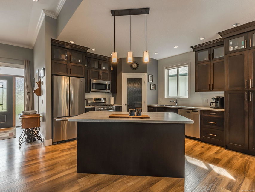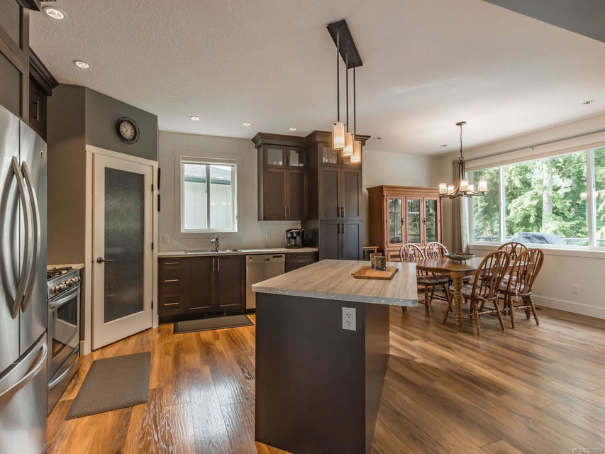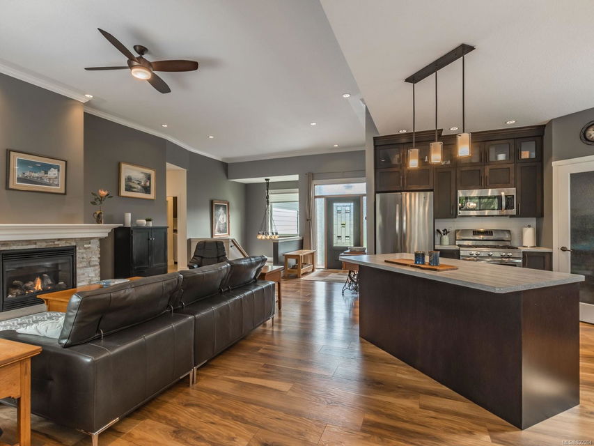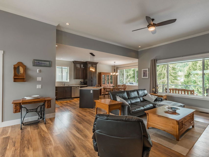 Simply outstanding and a rare opportunity: a spacious house on a quiet street with sunset views and executive style, top to bottom, including its private 2-bedroom legal suite with separate laundry. Main floor offers a bedroom wing with enviable ensuite bath in the primary bedroom; open concept living area (with elegant gas fireplace and 11′ ceiling), dining, and showstopping kitchen. Step onto the covered deck to take in the peaceful vista of forested hills. Owners’ private space continues on the lower floor with an extra bedroom, bathroom, family room and rec room … and the Beachcomber hot tub’s included! Bonuses included high-efficiency gas heat/hot water tanks, air conditioning, vinyl decking, major storage (including 2 sheds), and the suite’s murphy bed and TV are included. The property’s fully fenced, has a bbq table for entertaining, complete sprinkler system, garage, and loads of parking. This is “next level” living.