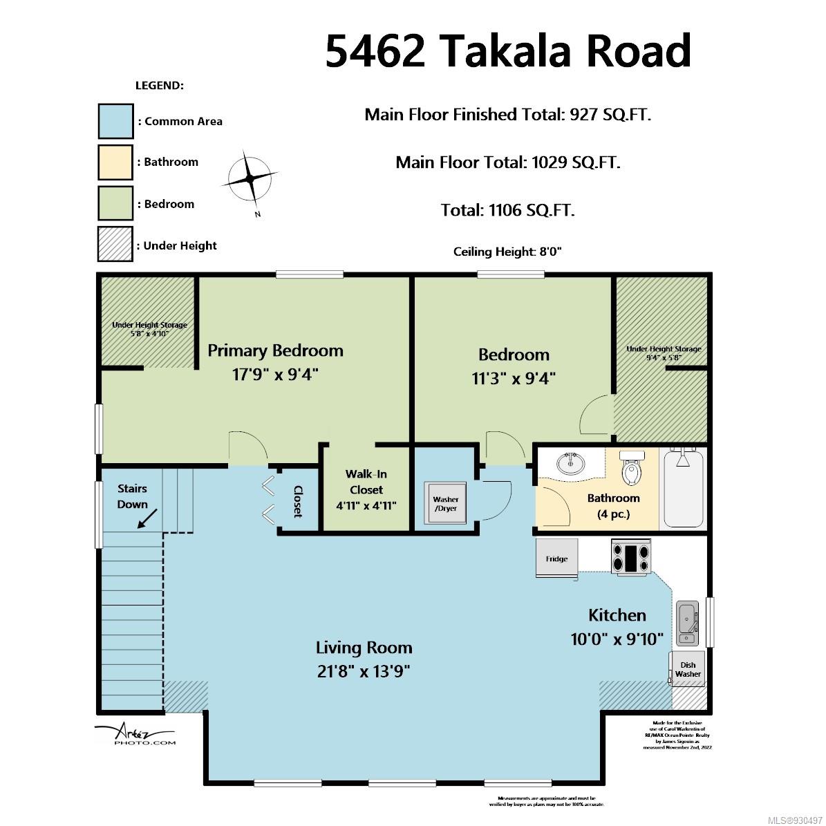 kitchen; 2 bedrooms, both with storage areas; laundry; main bath; hardwood flooring, heated bathroom floors.