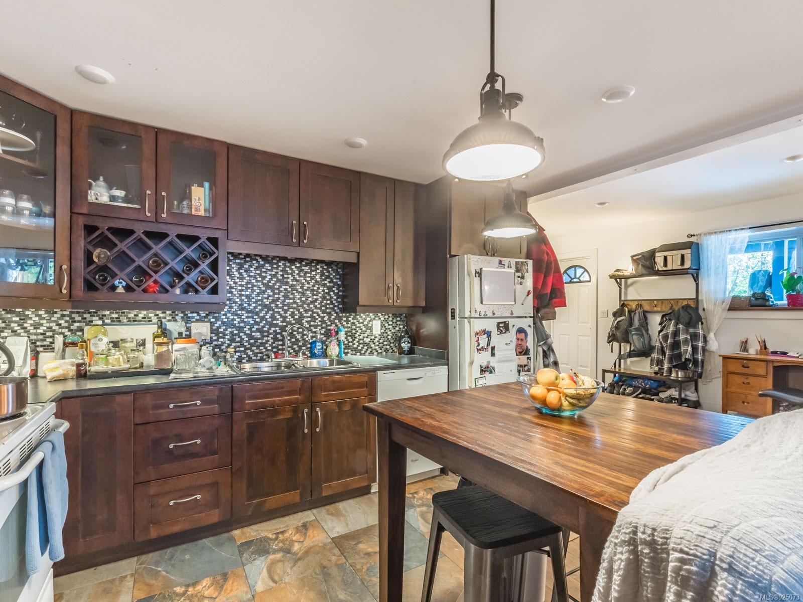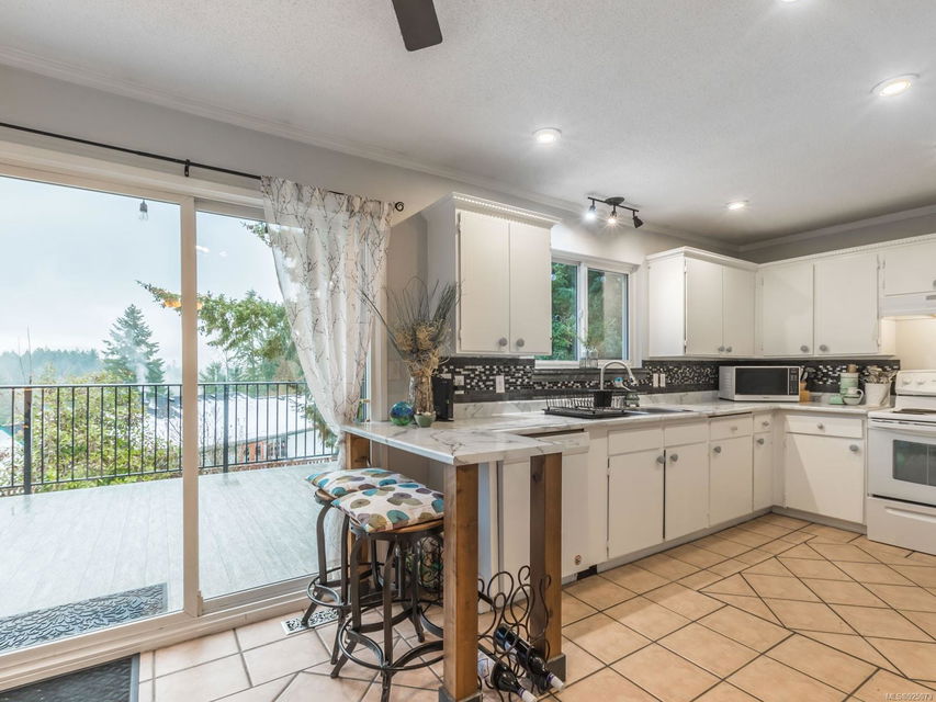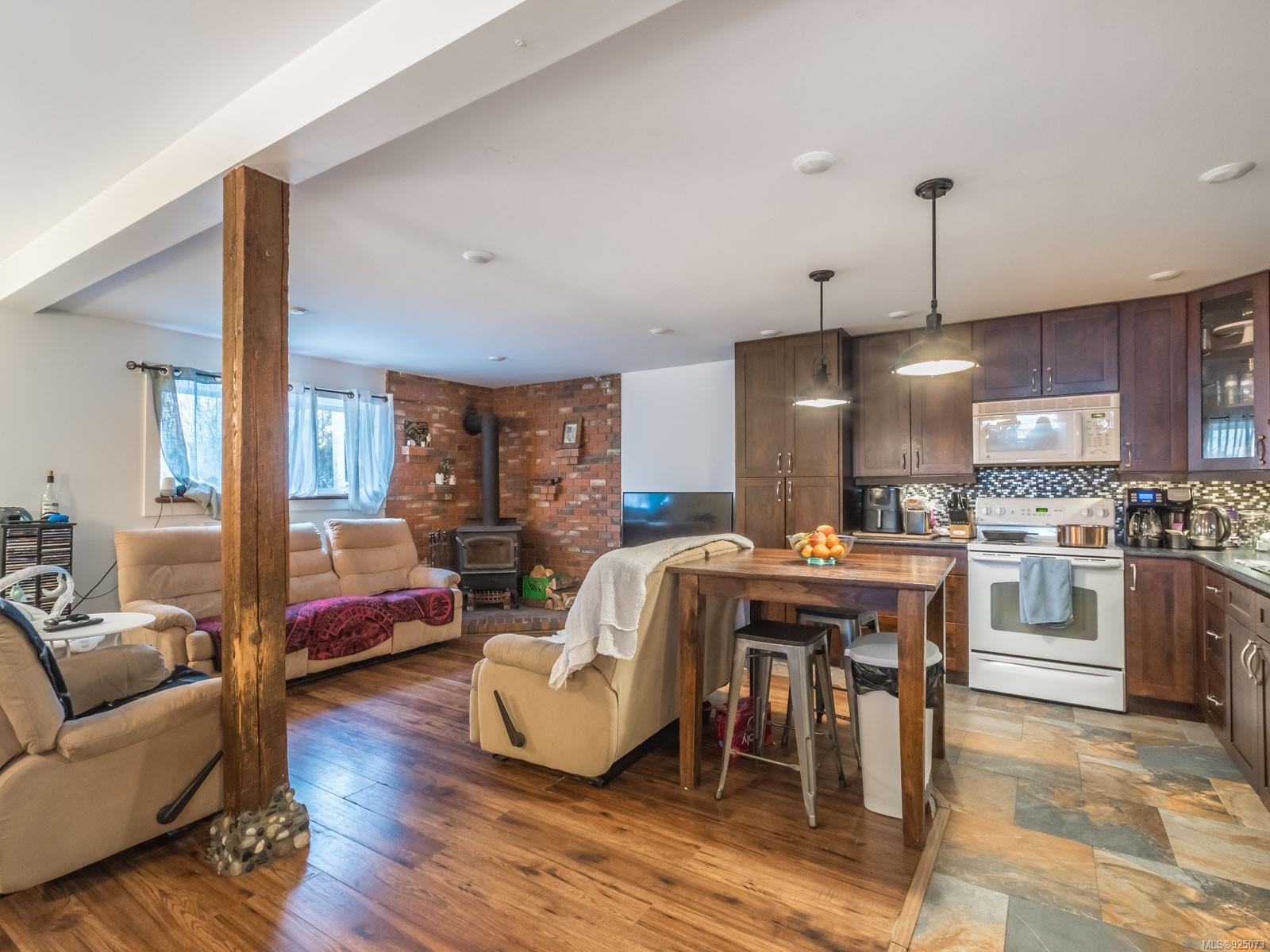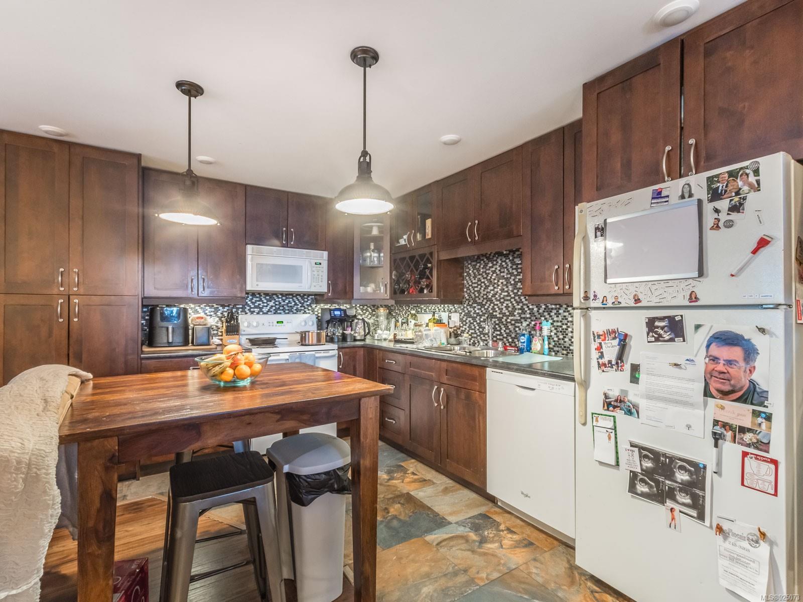 With 2580 sq. ft. a large yard, a desirable location, AND legal suite revenue potential, this 5-bedroom, 3.5 bath home near schools and the rec centre is a smart choice. Main floor’s bright and airy, with 3 bedrooms (primary has ensuite); large kitchen with access to the grand deck; dining room; wood-burning fireplace in the high-ceilinged living room. Lower level legal suite has 2 bedrooms and is superbly finished! Huge family room (incl. wood stove), 2 bathrooms, separate entrance and covered deck! The spacious yard’s a gardener’s dream, with raised beds and fruit trees. Super landscaping, with 3 patio areas for outdoor entertaining. Efficient vinyl windows, concrete carport, workshop, wood shed, garden shed and greenhouse. Wise purchase!