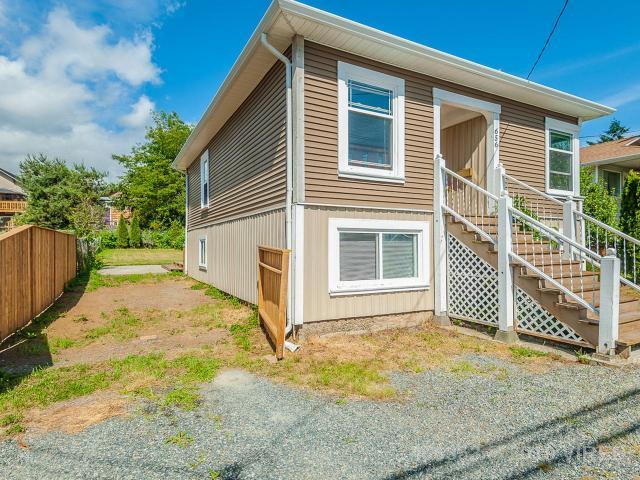 Home ownership made easy! This 1870 sq. ft. home on a large lot is situated on the southern edge of Nanaimo, with mountains to the west, shopping, and downtown/waterfront nearby, with easy access to the highway. Enjoy 3 bedrooms, a nicely tiled kitchen with attractive cabinetry, and plenty of storage in the main bathroom. Use the almost-finished underheight basement for a media room, office, hobby space, and/or kids’ play area. The generous grassed area is backed by mature trees and is ideal for families! Enjoy the deck, and store your seasonal items in the included shed. Within the fenced and gated yard there are fruit trees, and ample room for RV parking. Trails, schools, and VIU nearby. Some of the updates to this home include thermal windows, vinyl siding and soffits, electric furnace with n.e.s.t. wifi thermostat and 100 amp service. The main level has laminate flooring, and a laundry chute to your new washer/dryer downstairs. Great rental investment or owner-occupied home.