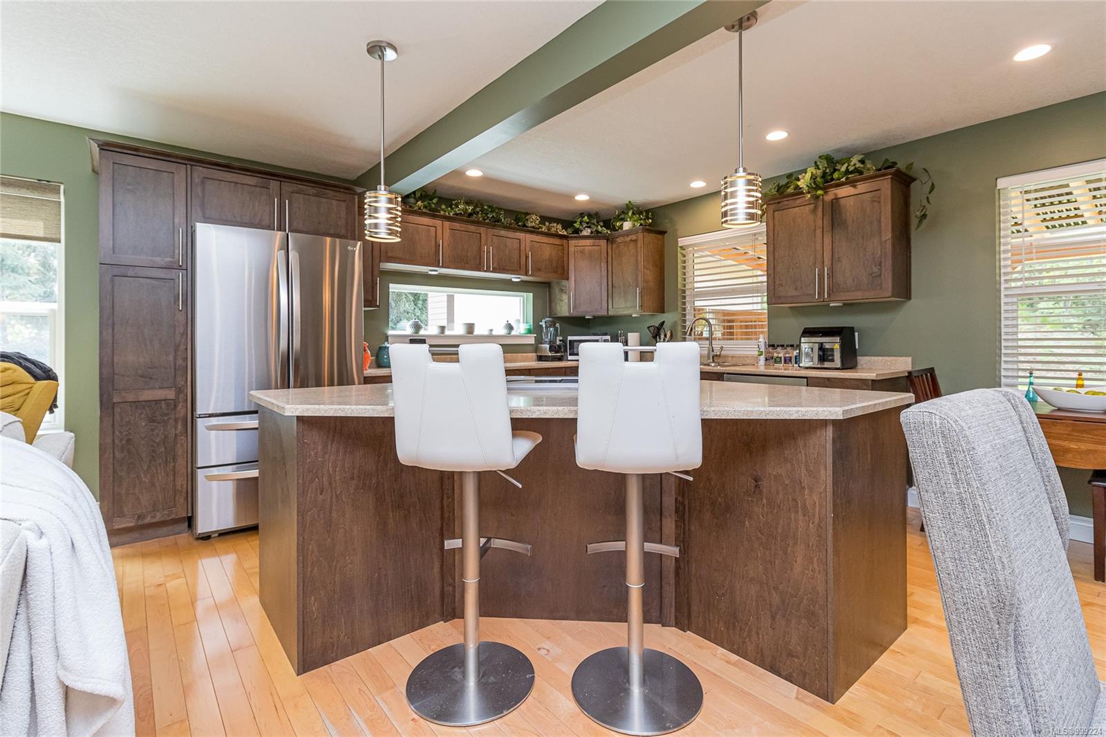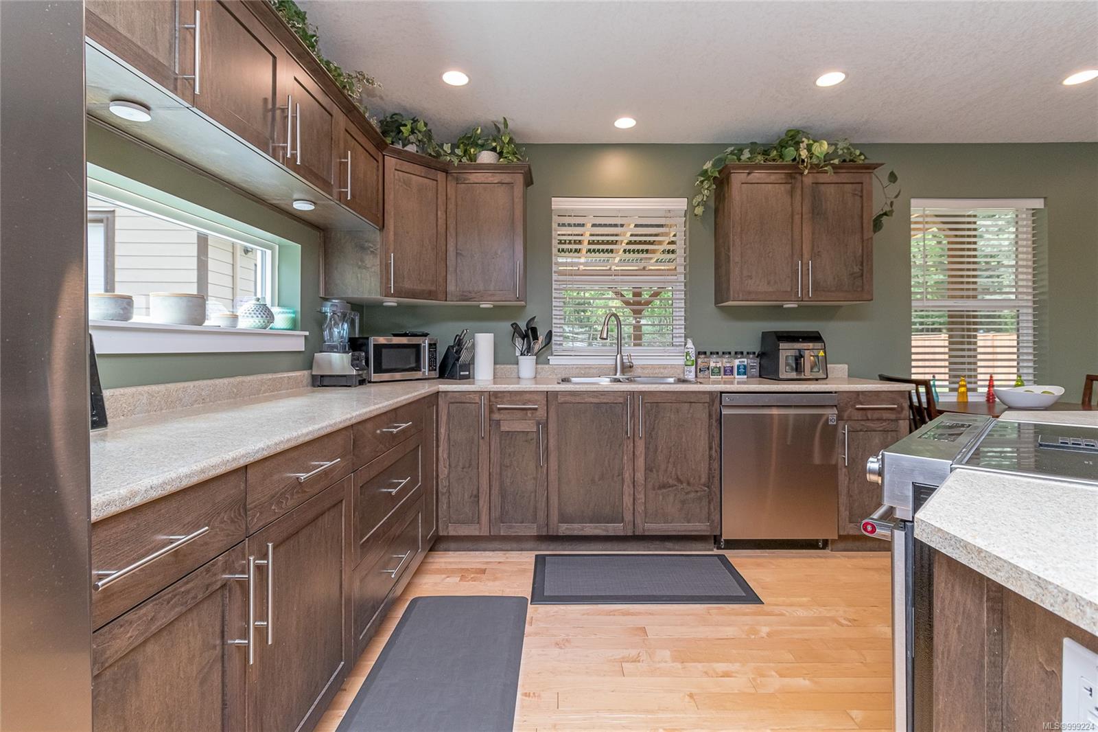 Tucked away on a quiet no-thru road in Honeymoon Bay, this inviting 3 bed, 3 bath home sits on a beautifully landscaped and fully fenced 0.45-acre lot just a short stroll to Cowichan Lake. Updated in the last year with a paved driveway and walkway, a new deck with pergola, a newer heat pump with A/C, and a new stove. The 1,912 sqft layout offers open-concept living, a main-level primary with walk-in closet and ensuite, plus two generous bedrooms and a flex space upstairs—perfect for guests or a home office. The detached double garage with EV charging station, 100-amp sub-panel is ideal for hobbies, storage or a workshop. With ample parking for your boat, RV and all the toys, and just minutes from the lake, golf, and parks—this is your west coast base in a friendly, laid-back community.