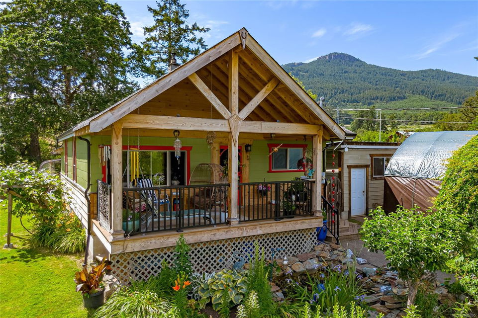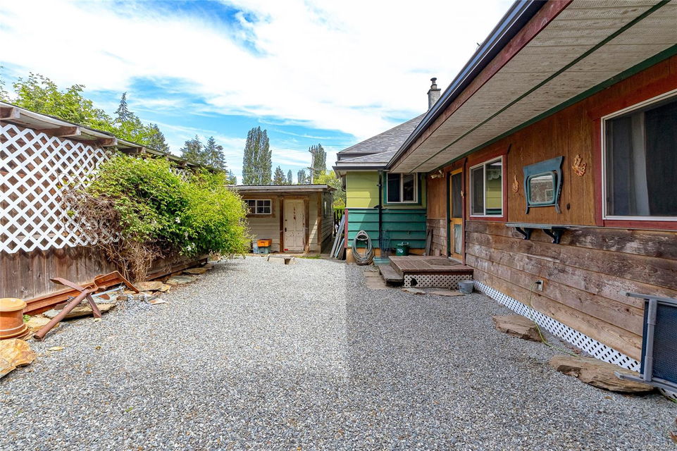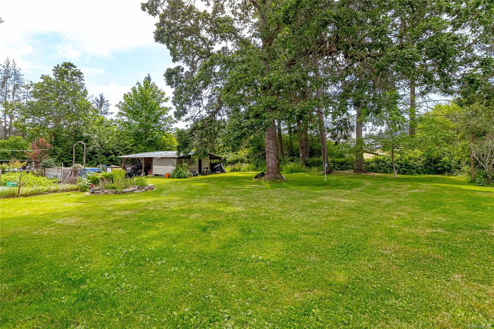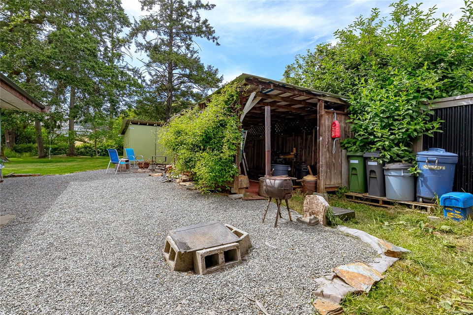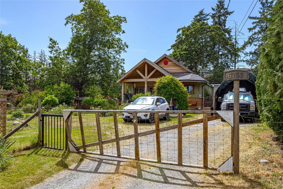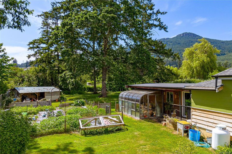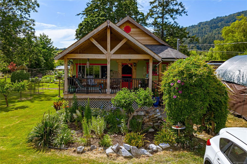 Welcome to your own slice of paradise. This charming 3-bed home is nestled in a lush, fully fenced yard bursting with fruit trees, flowers, Veggies, and more in the established gardens. Relax on the beautifully crafted front patio—perfect for morning coffee or winding down at dusk. A detached workshop, garden shed, firewood storage, and stunning Garry oak tree add both function and natural beauty. Inside, enjoy the tastefully updated kitchen with wood counters, and a spacious bath with a large soaker tub and stand up shower. The new roof and hot water tank in 2021 offer peace of mind. A gardener’s dream and a nature lover’s retreat—all that’s missing is you.
