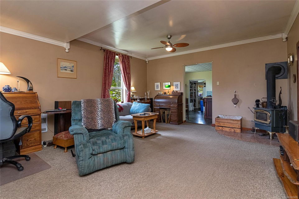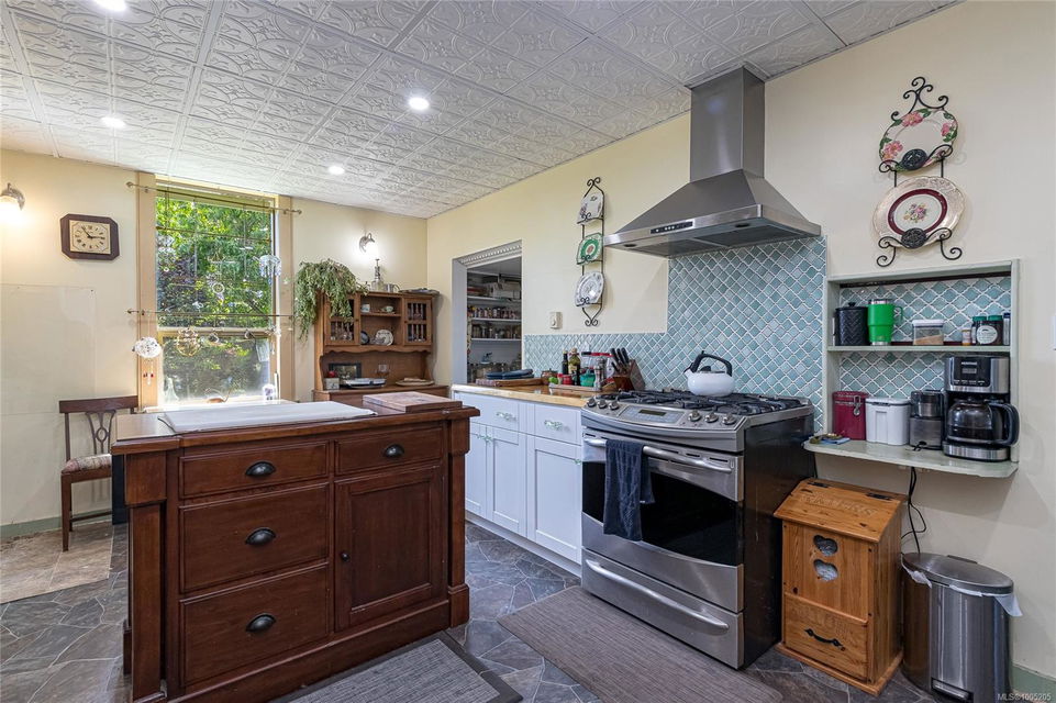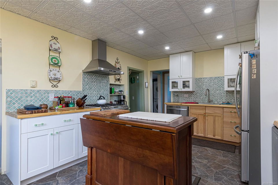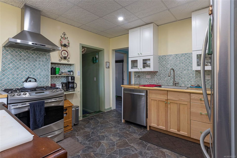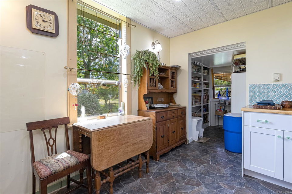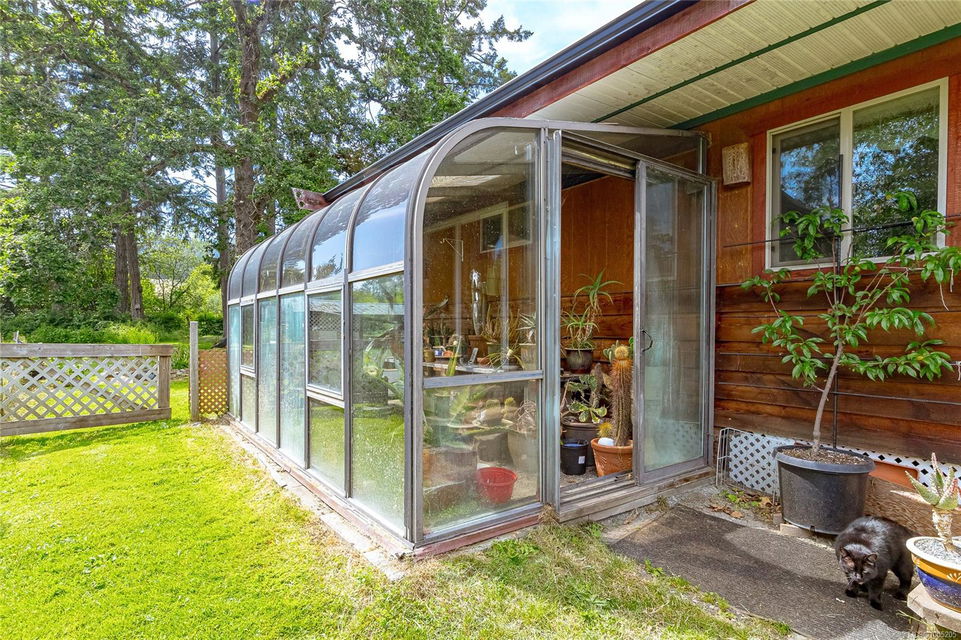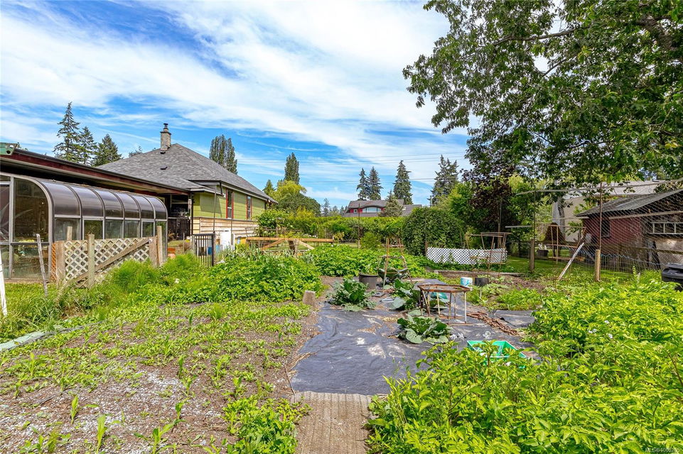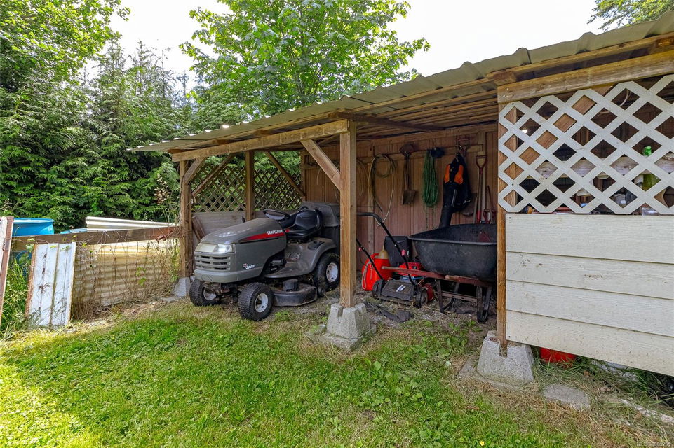 Welcome to your own slice of paradise. This charming 3-bed home is nestled in a lush, fully fenced yard bursting with fruit trees, flowers, Veggies, and more in the established gardens. Relax on the beautifully crafted front patio—perfect for morning coffee or winding down at dusk. A detached workshop, garden shed, firewood storage, and stunning Garry oak tree add both function and natural beauty. Inside, enjoy the tastefully updated kitchen with wood counters, and a spacious bath with a large soaker tub and stand up shower. The new roof and hot water tank in 2021 offer peace of mind. A gardener’s dream and a nature lover’s retreat—all that’s missing is you.