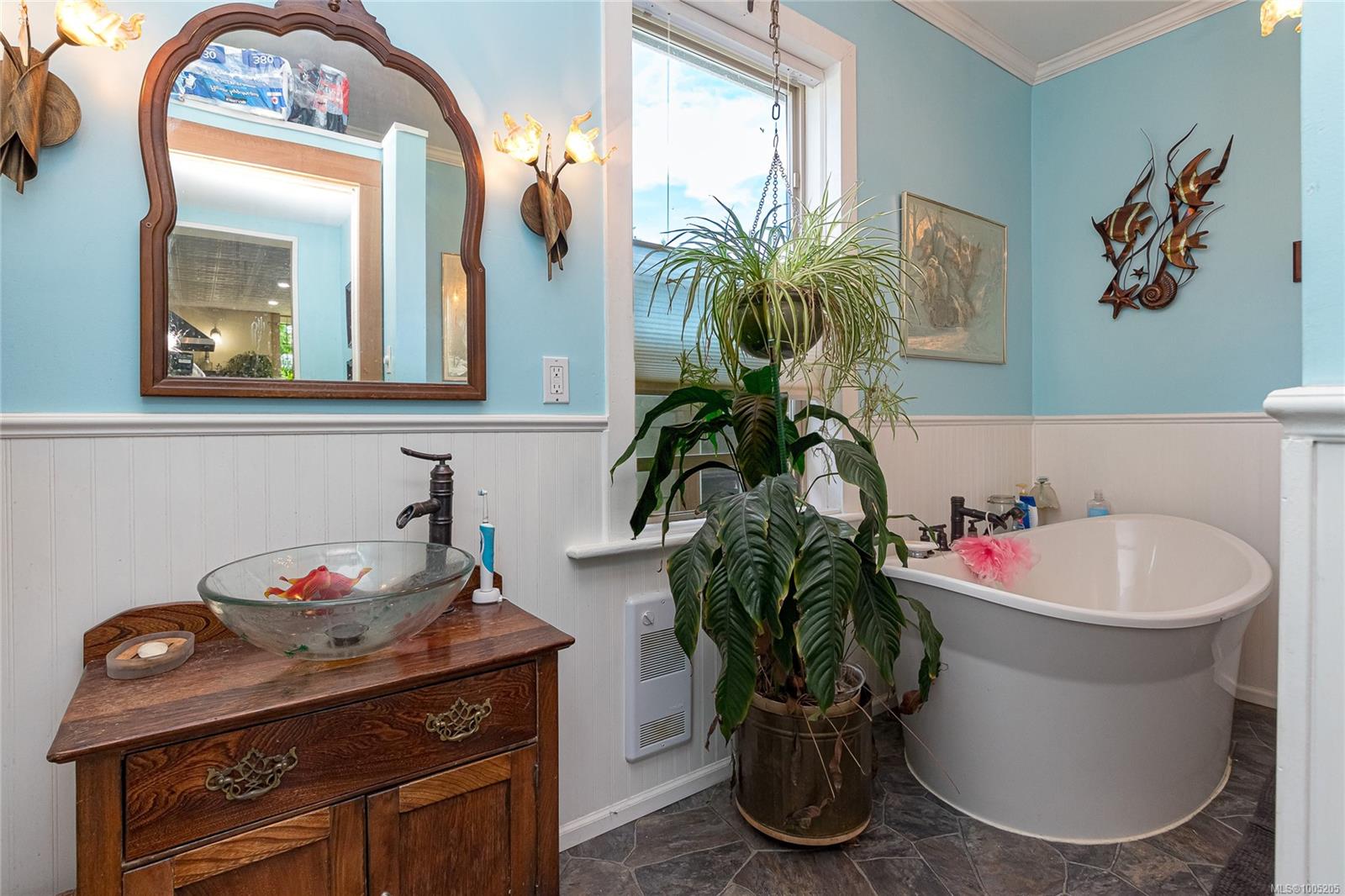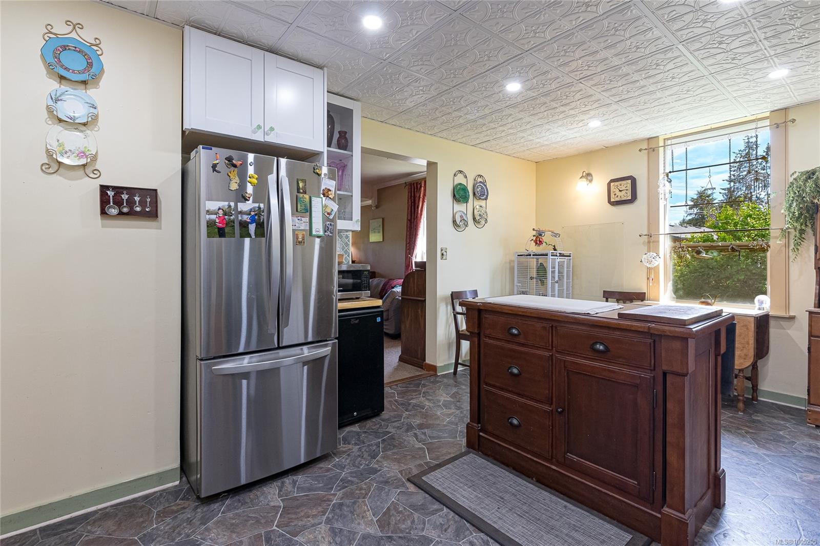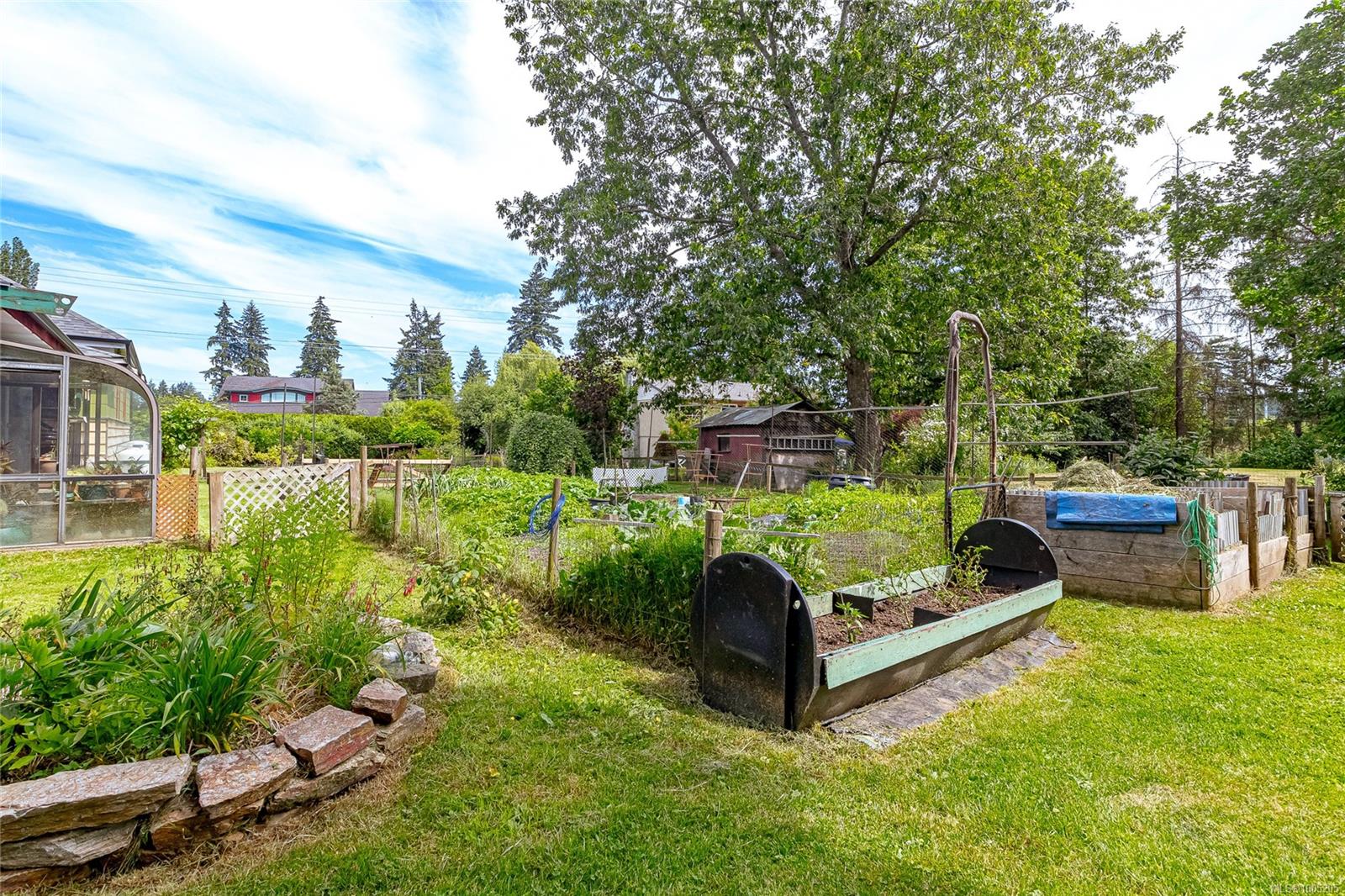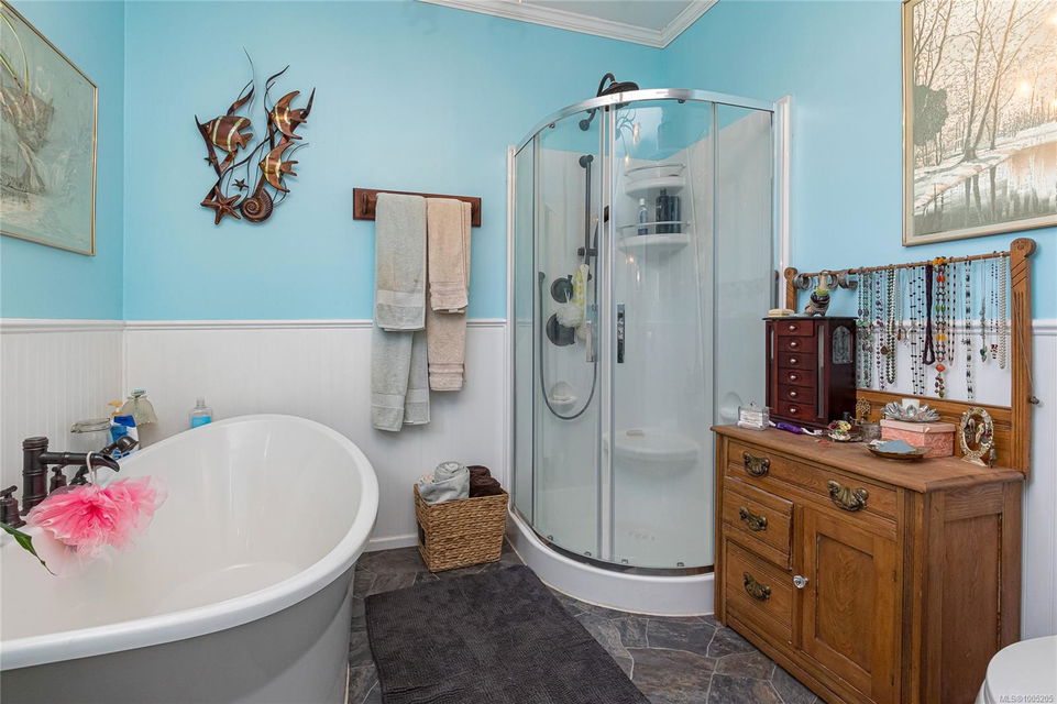 Welcome to your own slice of paradise. This charming 3-bed home is nestled in a lush, fully fenced yard bursting with fruit trees, flowers, Veggies, and more in the established gardens. Relax on the beautifully crafted front patio—perfect for morning coffee or winding down at dusk. A detached workshop, garden shed, firewood storage, and stunning Garry oak tree add both function and natural beauty. Inside, enjoy the tastefully updated kitchen with wood counters, and a spacious bath with a large soaker tub and stand up shower. The new roof and hot water tank in 2021 offer peace of mind. A gardener’s dream and a nature lover’s retreat—all that’s missing is you.