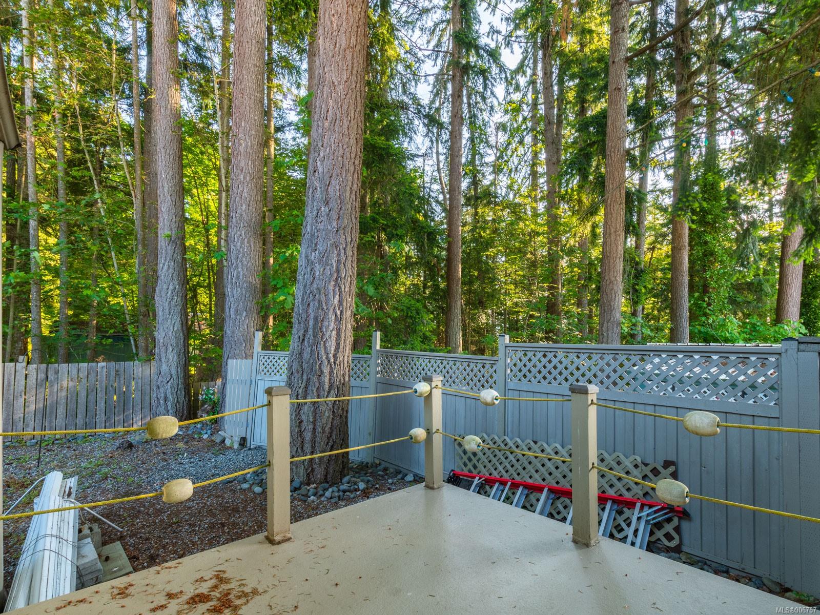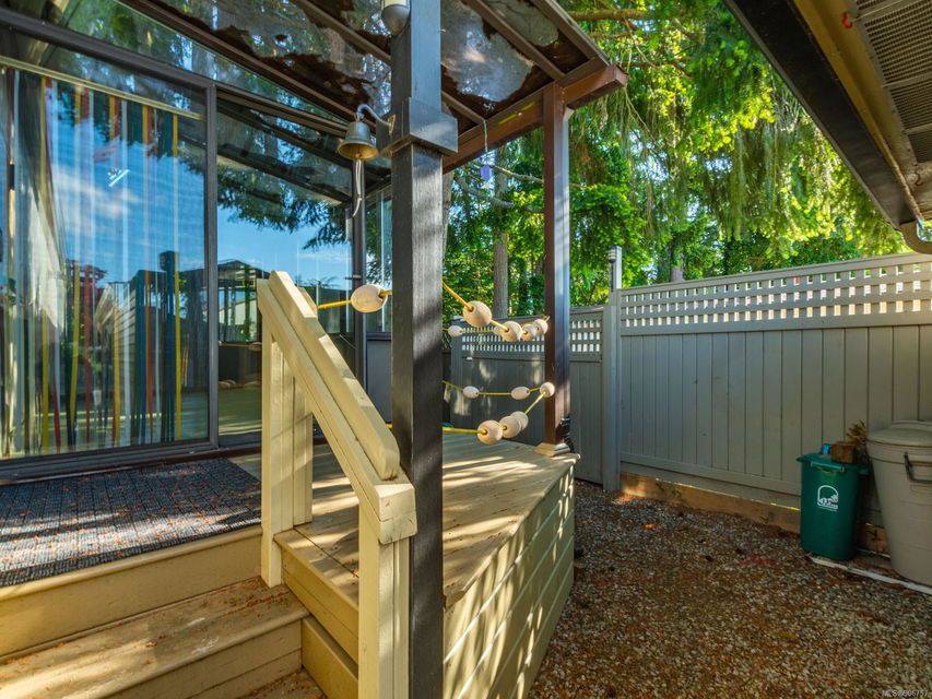 patios at either end. Pretty surroundings, too, including mature trees and a sea-themed front yard.