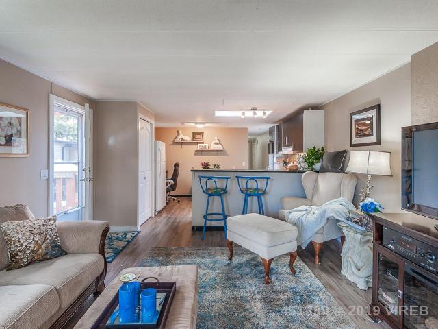 Motivated seller offers This attractive 2 bedroom 1 bath home featuring an open Living room with a spacious Kitchen. Beautifully updated…windows, flooring,BC Safety Authority electrical sticker , plumbing and roof. This home is move in ready in a desirable 55+ Parksville Mobile Home Park. Close to shops and public beach access . Situated on a large lot with a low maintenance yard featuring a newly built 8×12 modern design workshop/storage including professional grade steel shelving. Perfect for entertaining with great neighbours and friends or just enjoying the peaceful nature that surrounds including many species of birds to feed and enjoy. This Park is small pet friendly and allows for 1 small dog and 1 indoor cat.