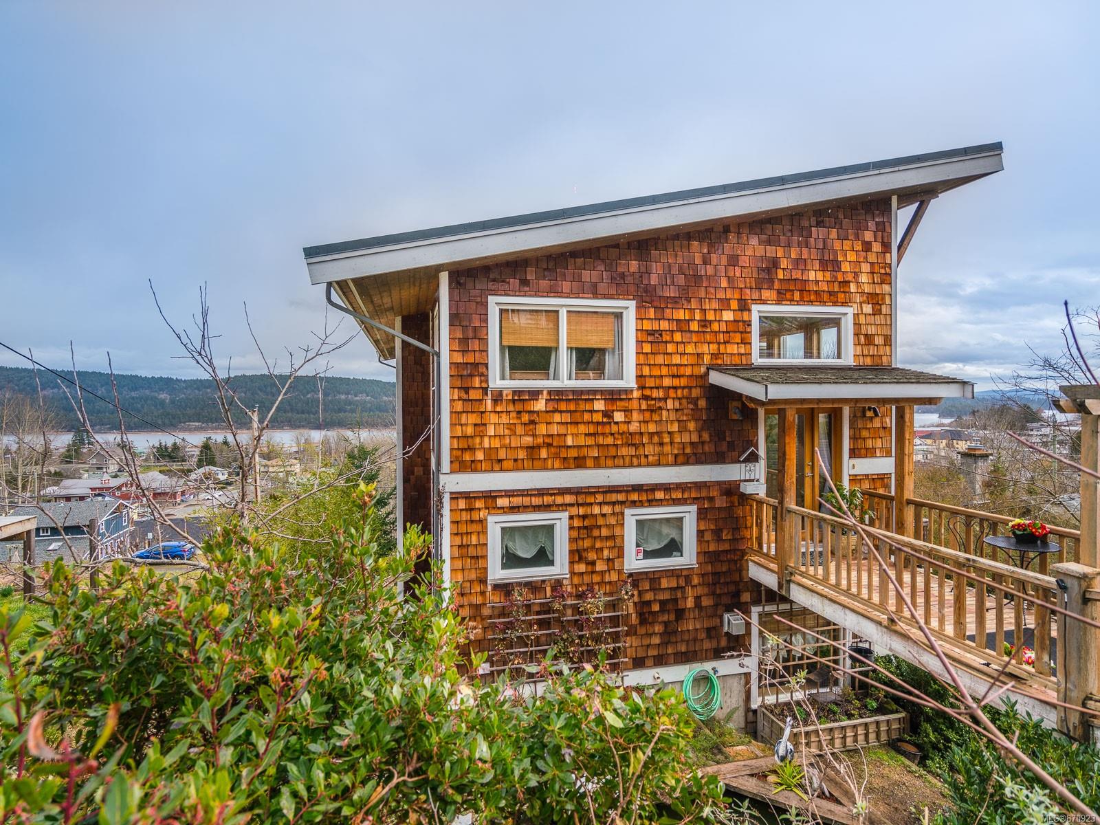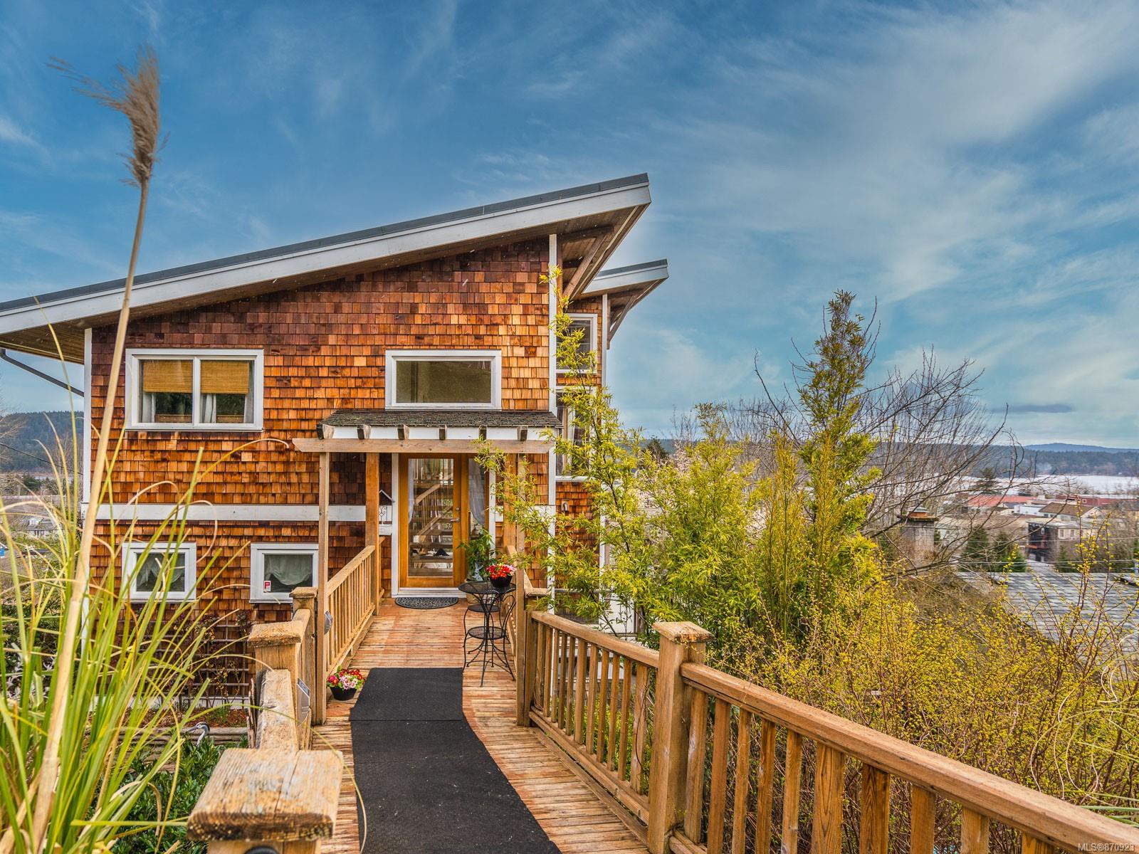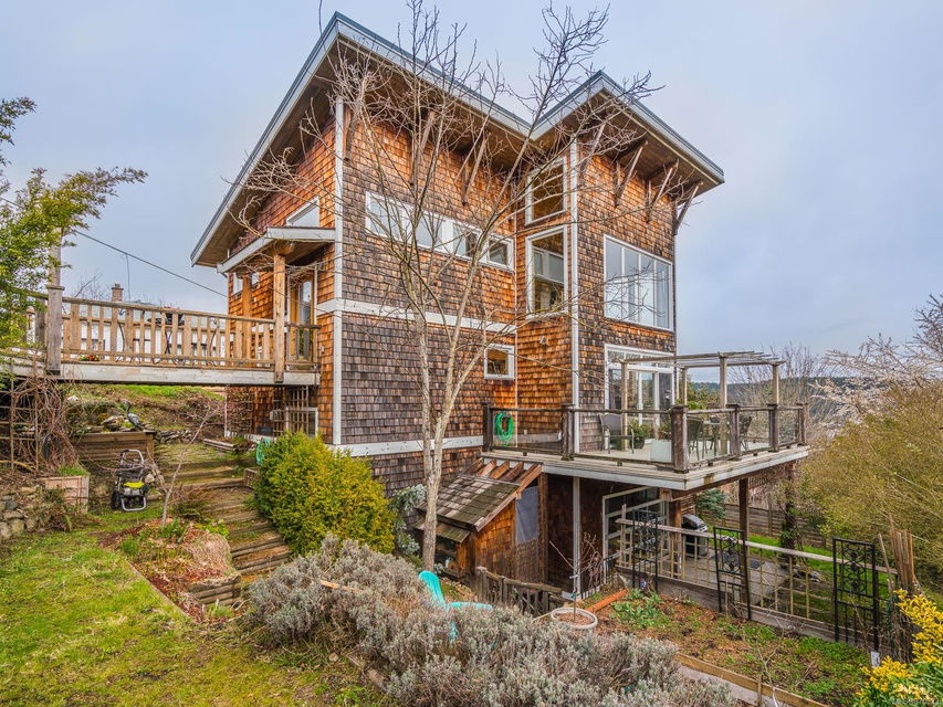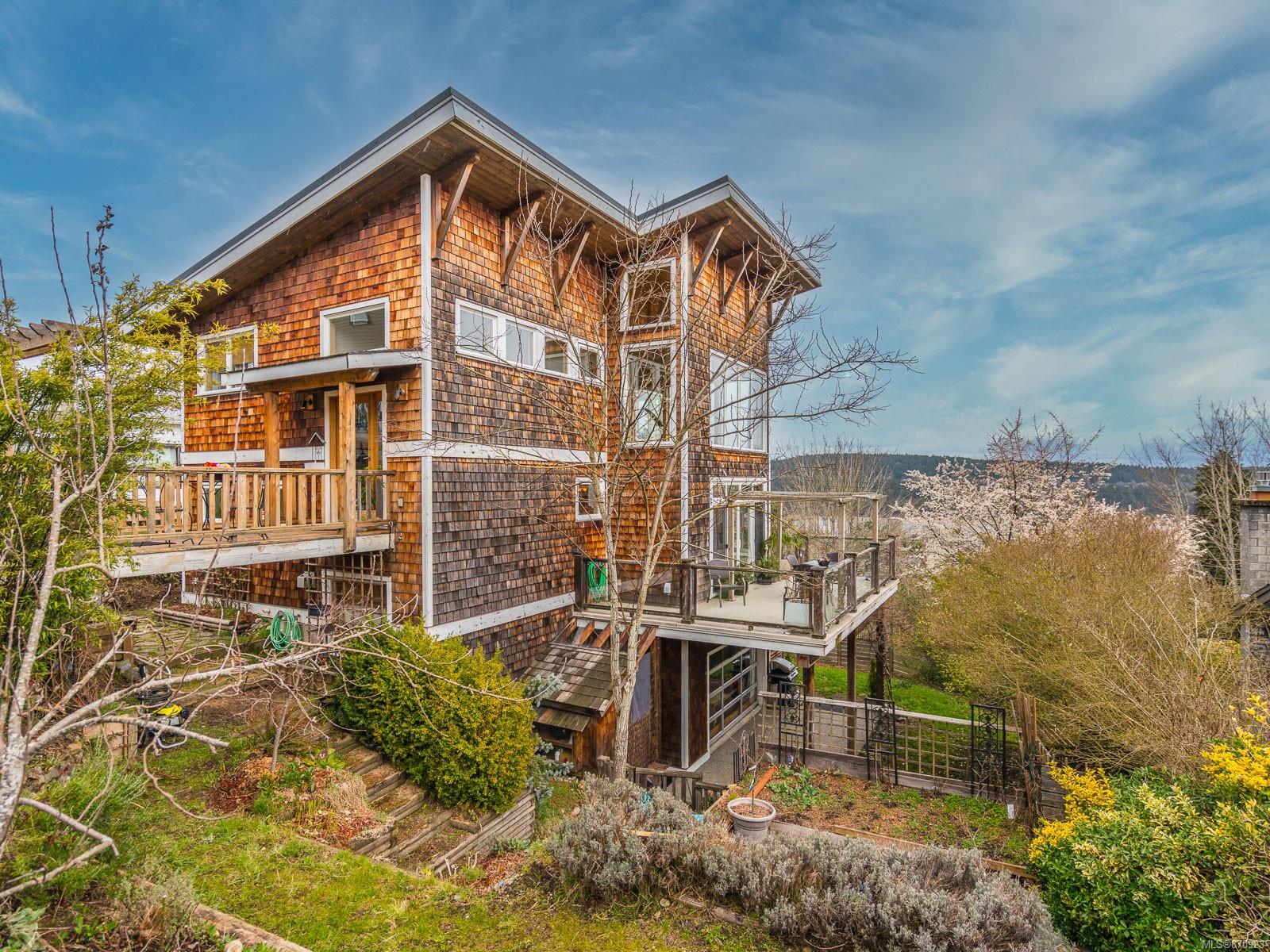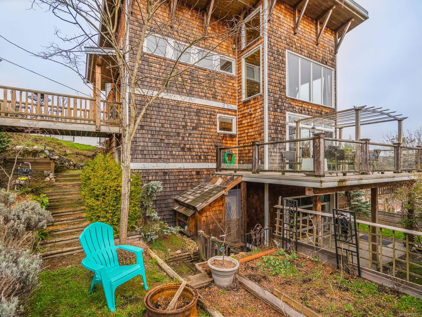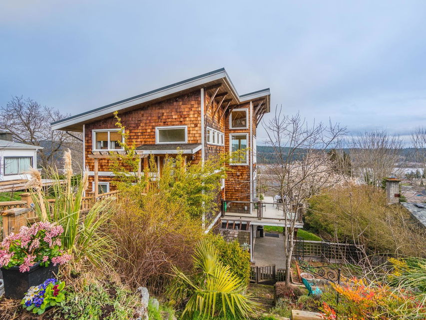 Live your best life in a castle in the sky! This uber bright, Brian Childs & Company-built 2 -bedroom, 3 -bath home with a glorious ocean view is fit for a magazine spread and perfect for an artist or home -based business professional. Open concept main floor; gorgeous windows and finishings; vaulted ceilings; a substantial wrap – around deck off the living room, plus a deck off the primary bedroom; luxurious master bath; gas fireplace; stylish wood accents; exceptional storage; covered patio … it’s all here, including a generous studio — and that stunning view — to inspire you! You can walk anywhere from this centrally – located property, but it will be hard to leave home!