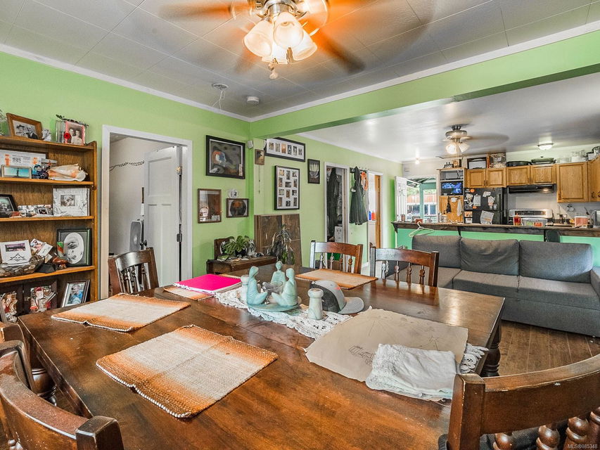 Use your imagination and start planning – this 2-bedroom, 1-bath home is zoned Live/Work Residential, which opens many possible doors for its next owner! The purpose of the Live/Work Residential Zone is to encourage the retention, revitalization and adaptive reuse of Downtown single unit character homes, either as an alternative to, or in combination with, smaller scale commercial and service uses. This self-contained, open-plan home faces the TransCanada, so high-visibility’s built-in. It’s located moments from Ladysmith’s thriving downtown, Transfer Beach, and the marina. The home offers a large kitchen with several cupboards; new windows, natural gas heat; combined bathroom (double vanity) and laundry; covered porch; substantial parking (including RV) from alley entrance; an under-height bathroom in the lower level, and scads of storage.